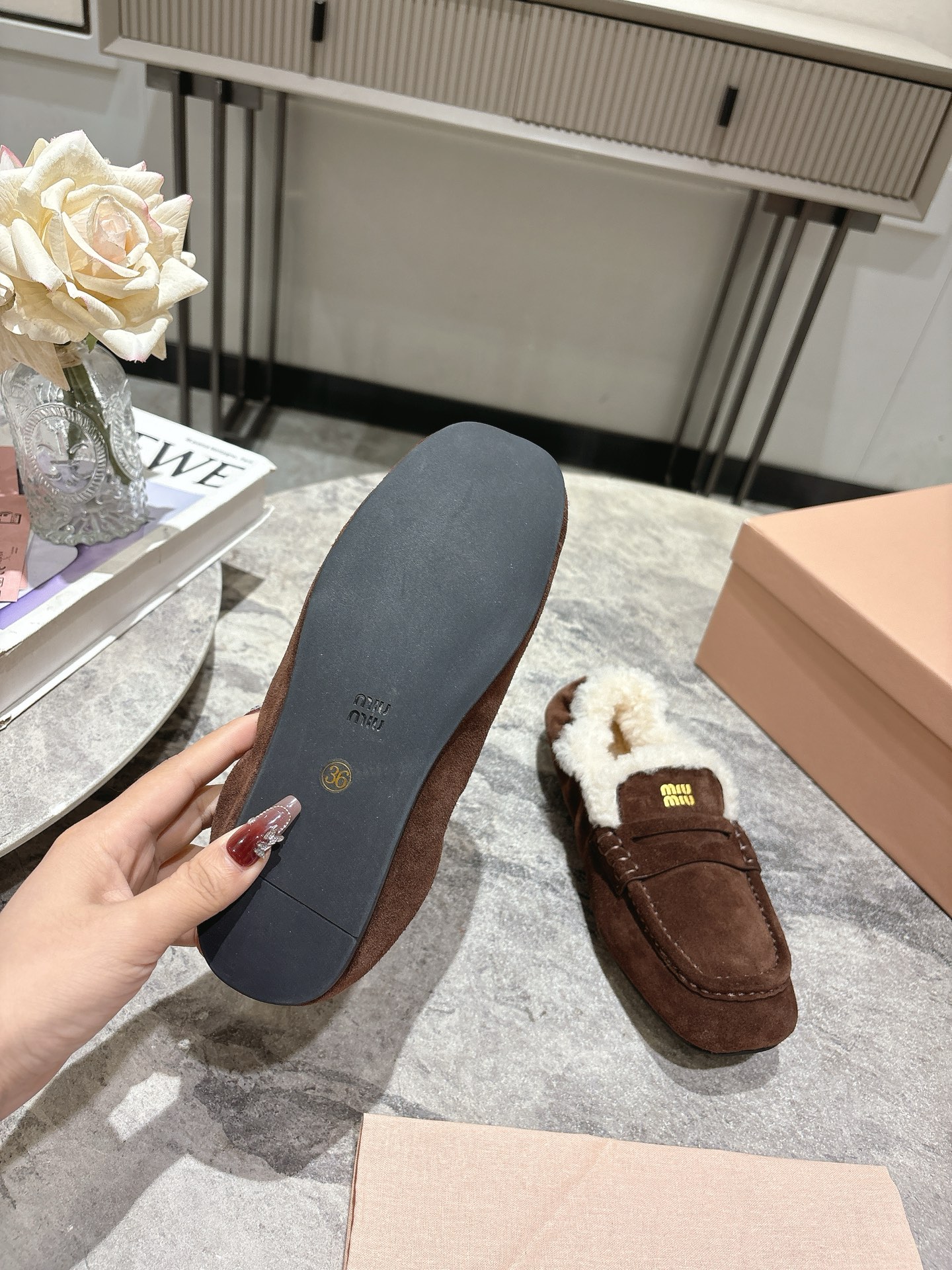 这款鞋子是AAAAA 1:1 质量 (非常棒). 使用了和原版一模一样的材料. 商标部分也保持了和缪缪/Miu Miu一样. 图片拍摄是实物鞋子拍摄, 您所收到的实物保证和我们图片一模一样.