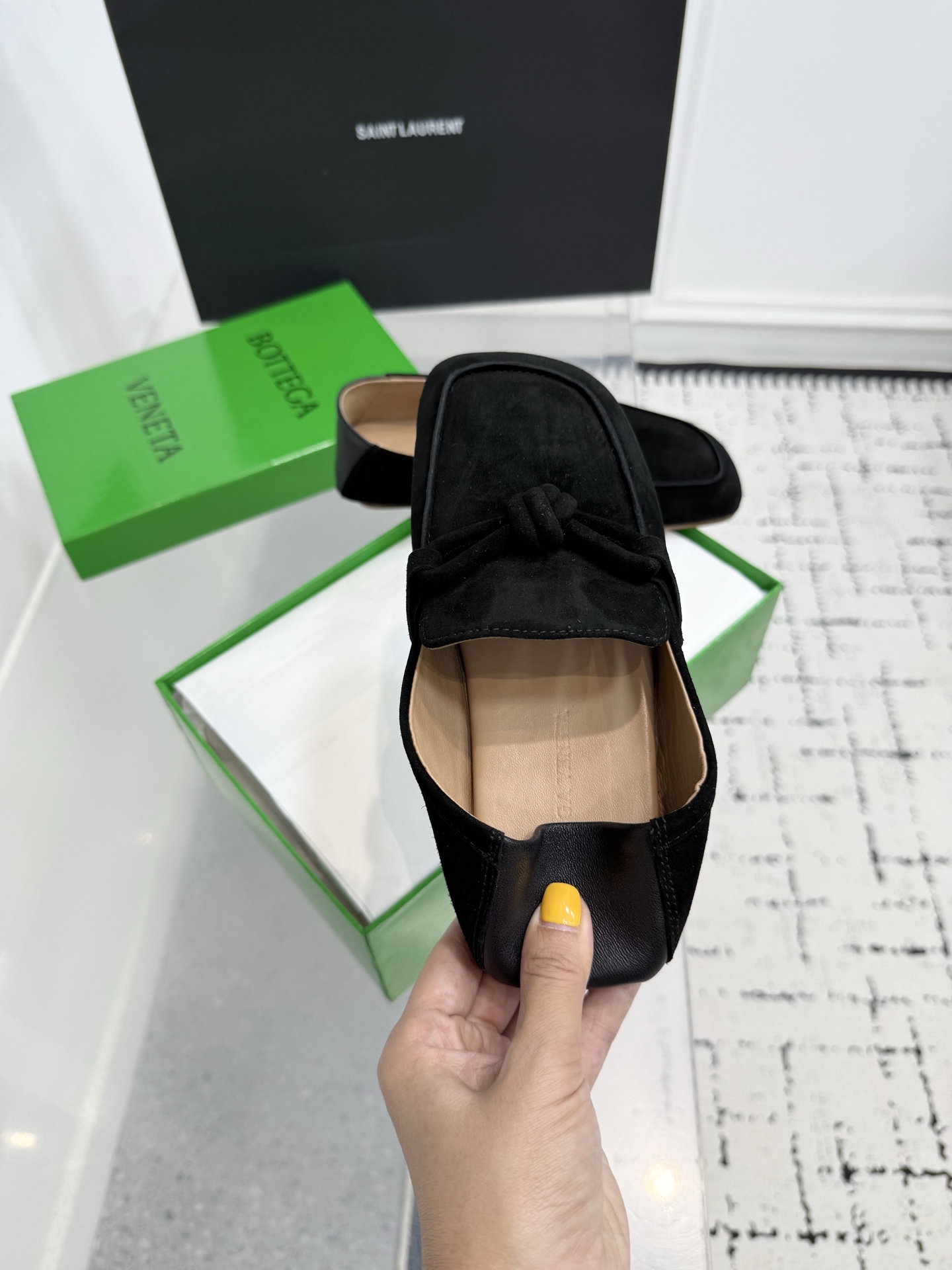 这款鞋子是AAAAA 1:1 质量 (非常棒). 使用了和原版一模一样的材料. 商标部分也保持了和葆蝶家/Bottega Veneta一样. 图片拍摄是实物鞋子拍摄, 您所收到的实物保证和我们图片一模一样.