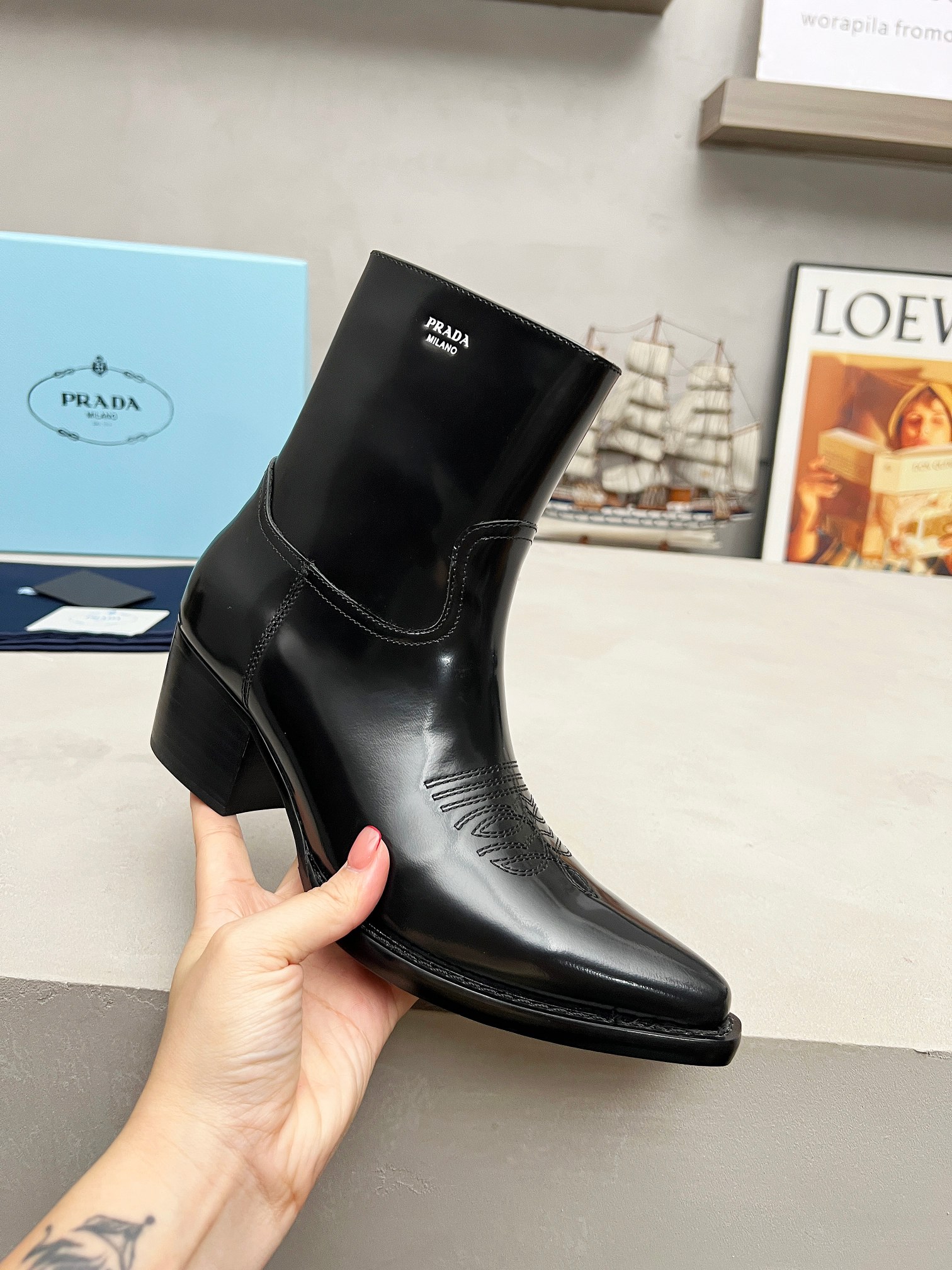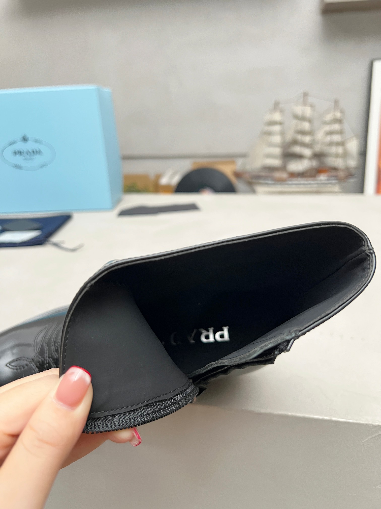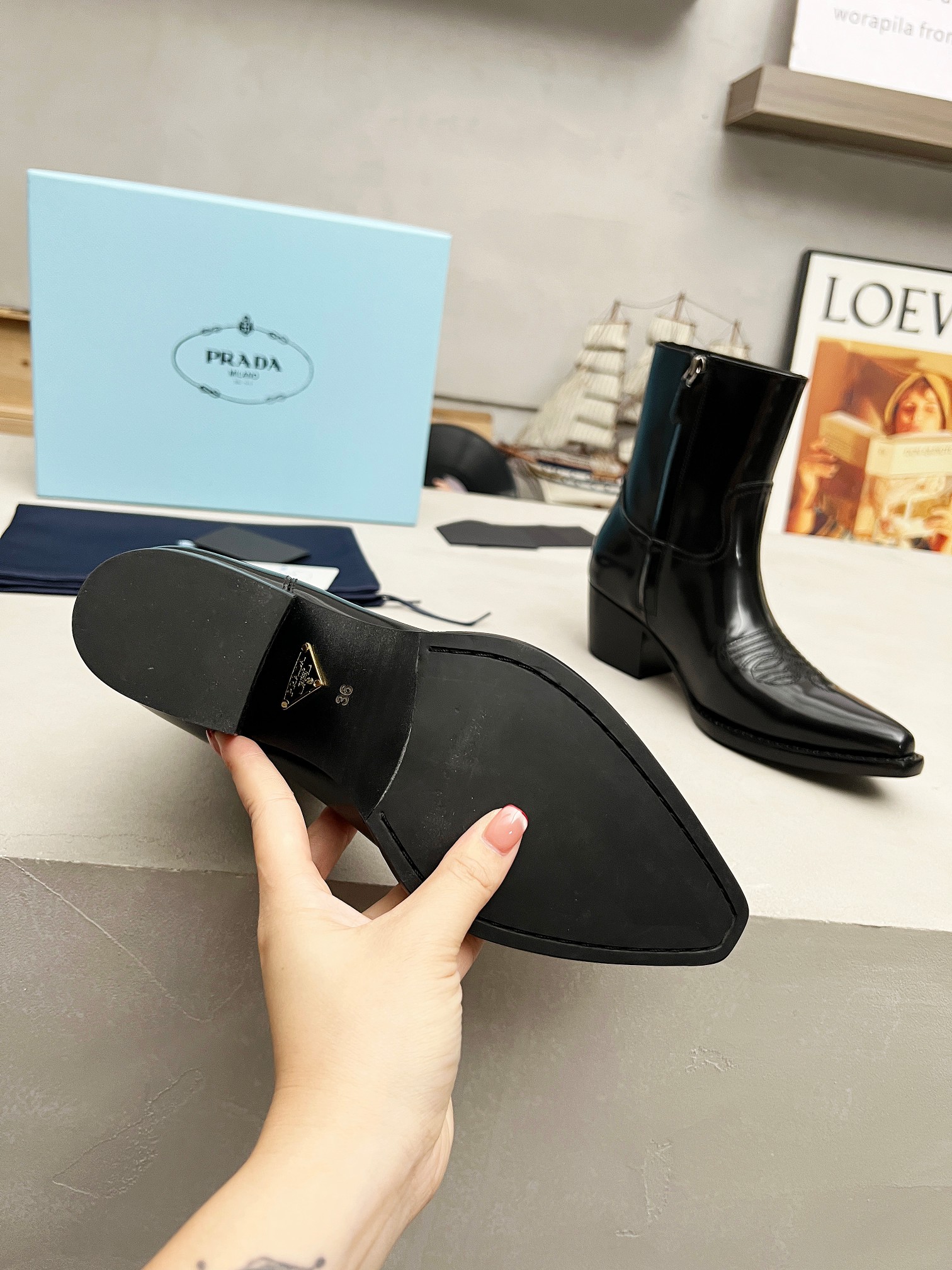 这款鞋子是AAAAA 1:1 质量 (非常棒). 使用了和原版一模一样的材料. 商标部分也保持了和普拉达/Prada一样. 图片拍摄是实物鞋子拍摄, 您所收到的实物保证和我们图片一模一样.