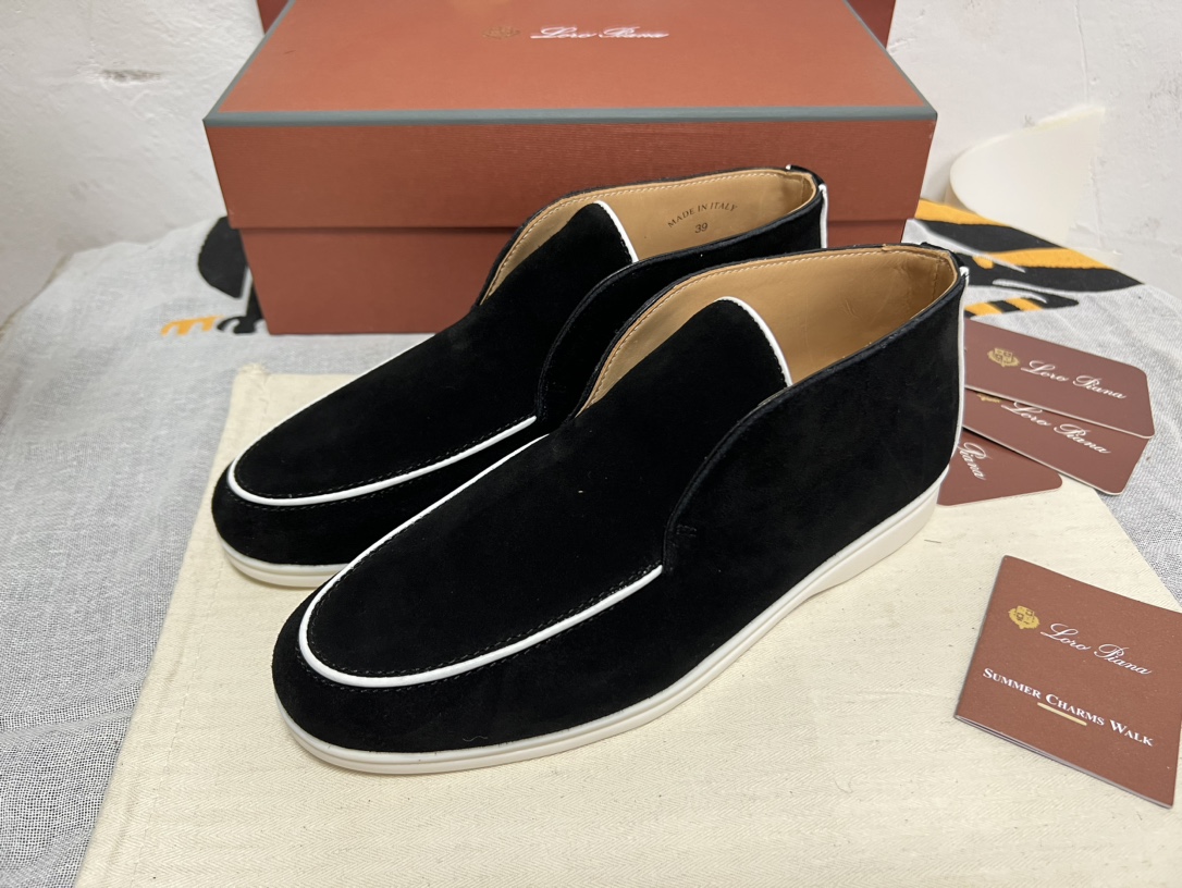 这款鞋子是AAAAA 1:1 质量 (非常棒). 使用了和原版一模一样的材料. 商标部分也保持了和洛罗皮亚纳/Loro Piana一样. 图片拍摄是实物鞋子拍摄, 您所收到的实物保证和我们图片一模一样.