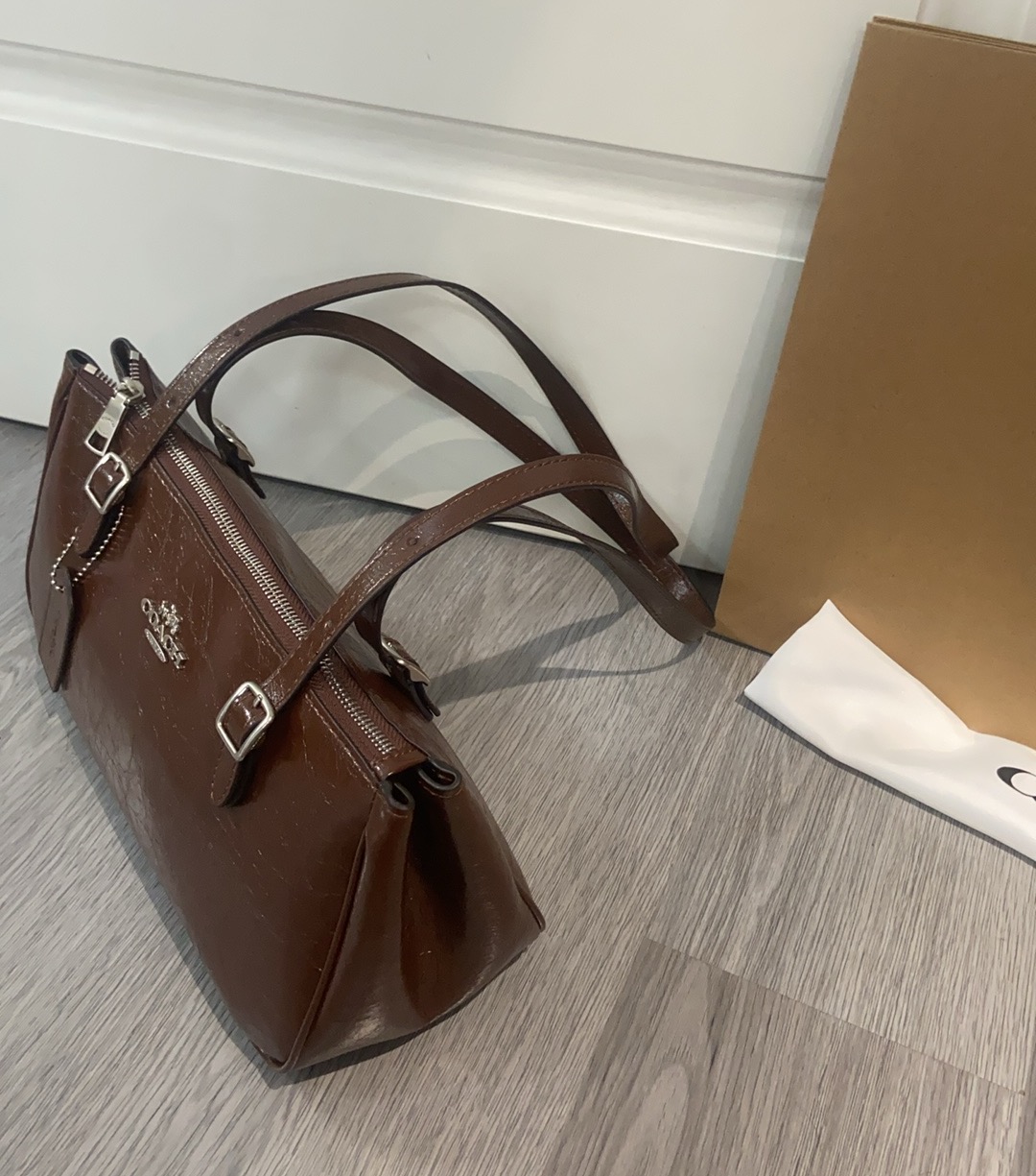 这款包包是AAAAA 1:1 质量 (非常棒). 使用了和原版一模一样的材料. 商标部分也保持了和蔻驰/Coach一样. 图片拍摄是实物包包拍摄, 您所收到的实物保证和我们图片一模一样.