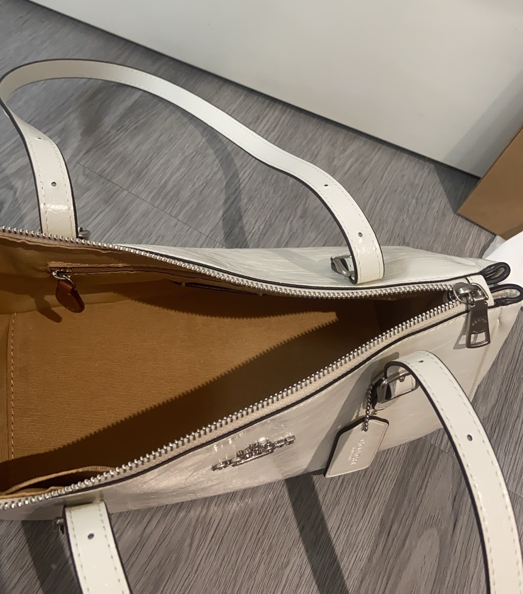 这款包包是AAAAA 1:1 质量 (非常棒). 使用了和原版一模一样的材料. 商标部分也保持了和蔻驰/Coach一样. 图片拍摄是实物包包拍摄, 您所收到的实物保证和我们图片一模一样.