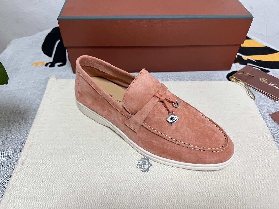 这款鞋子是AAAAA 1:1 质量 (非常棒). 使用了和原版一模一样的材料. 商标部分也保持了和洛罗皮亚纳/Loro Piana一样. 图片拍摄是实物鞋子拍摄, 您所收到的实物保证和我们图片一模一样.