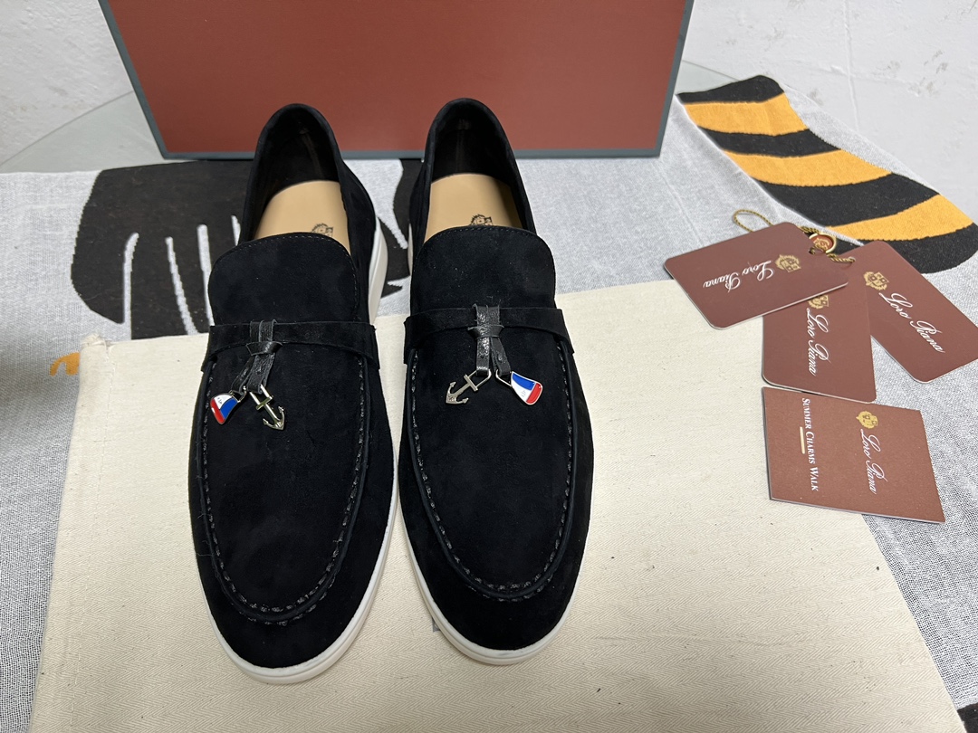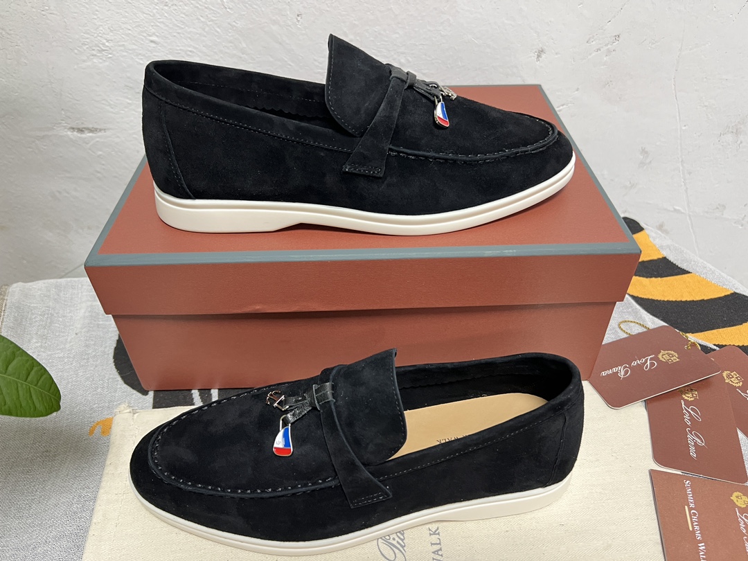 这款鞋子是AAAAA 1:1 质量 (非常棒). 使用了和原版一模一样的材料. 商标部分也保持了和洛罗皮亚纳/Loro Piana一样. 图片拍摄是实物鞋子拍摄, 您所收到的实物保证和我们图片一模一样.