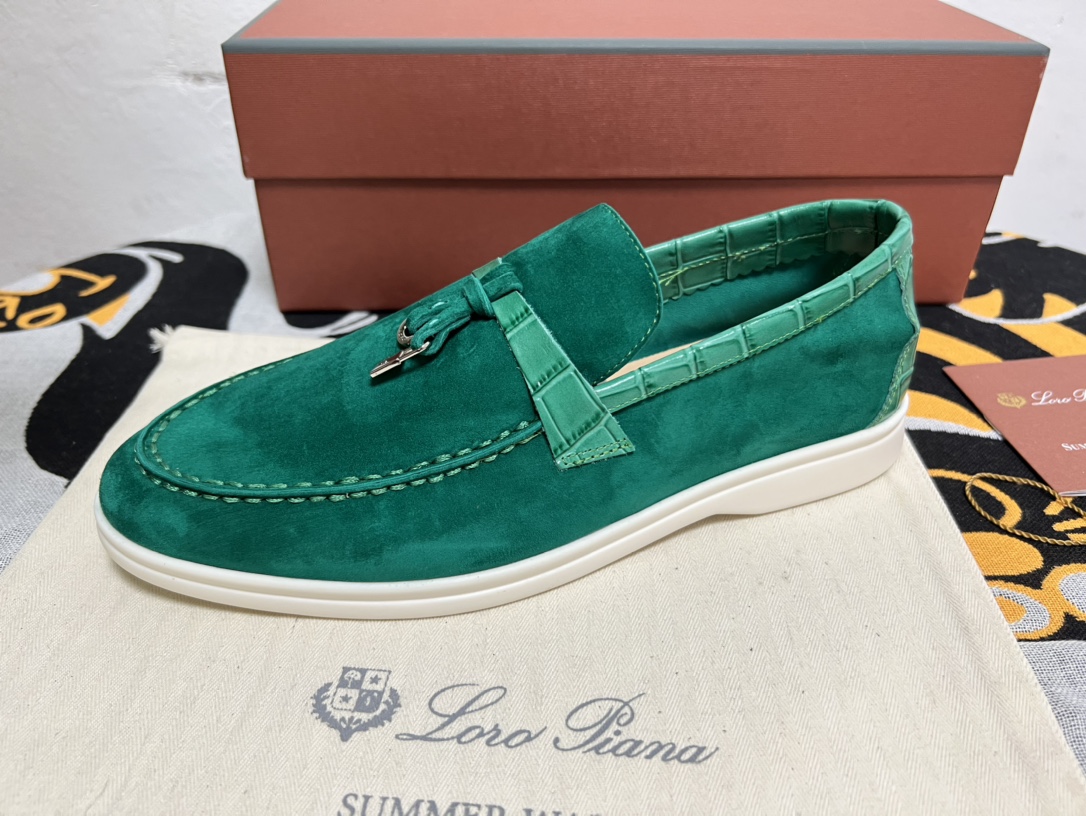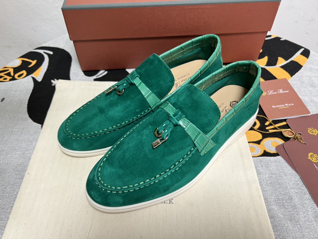 这款鞋子是AAAAA 1:1 质量 (非常棒). 使用了和原版一模一样的材料. 商标部分也保持了和洛罗皮亚纳/Loro Piana一样. 图片拍摄是实物鞋子拍摄, 您所收到的实物保证和我们图片一模一样.
