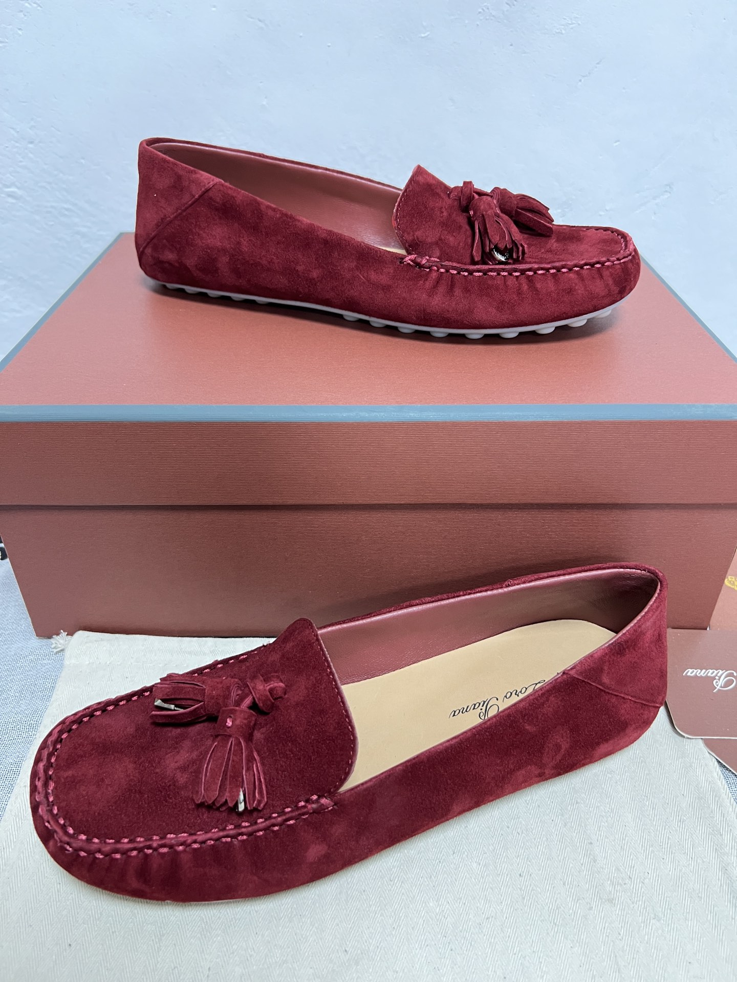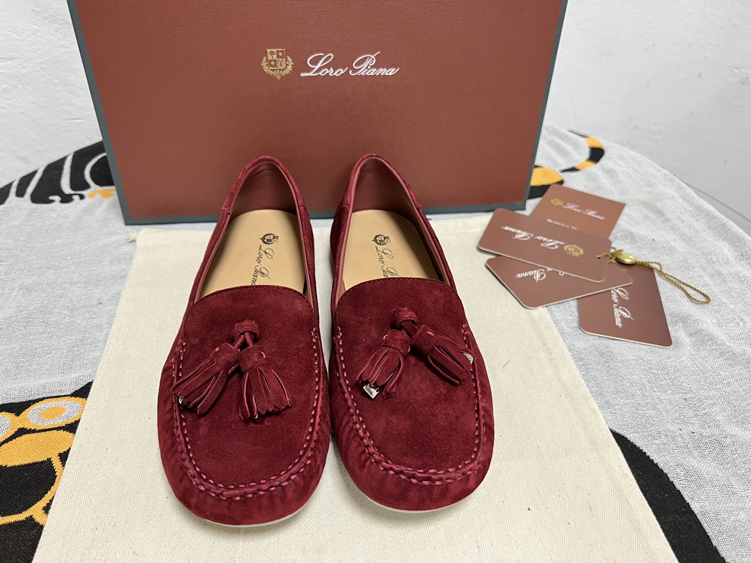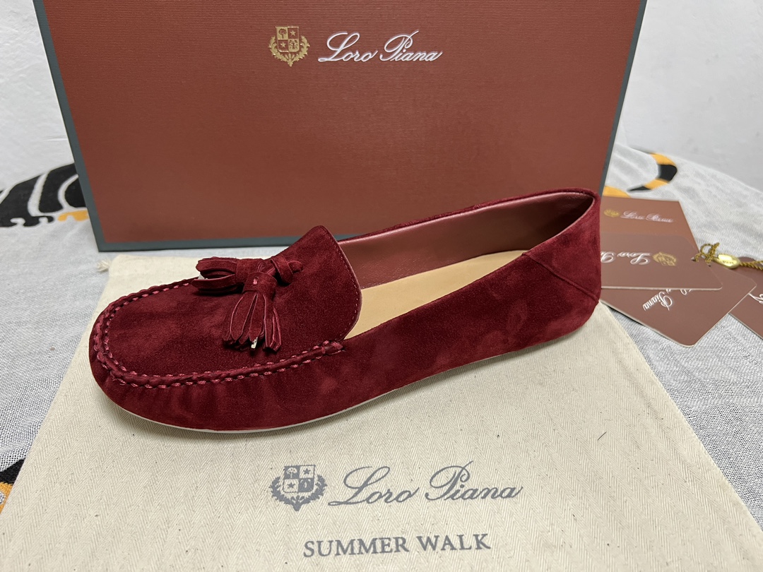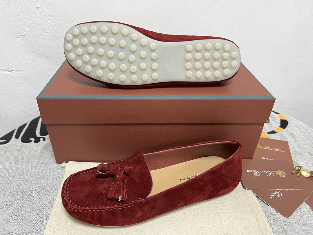 这款鞋子是AAAAA 1:1 质量 (非常棒). 使用了和原版一模一样的材料. 商标部分也保持了和洛罗皮亚纳/Loro Piana一样. 图片拍摄是实物鞋子拍摄, 您所收到的实物保证和我们图片一模一样.