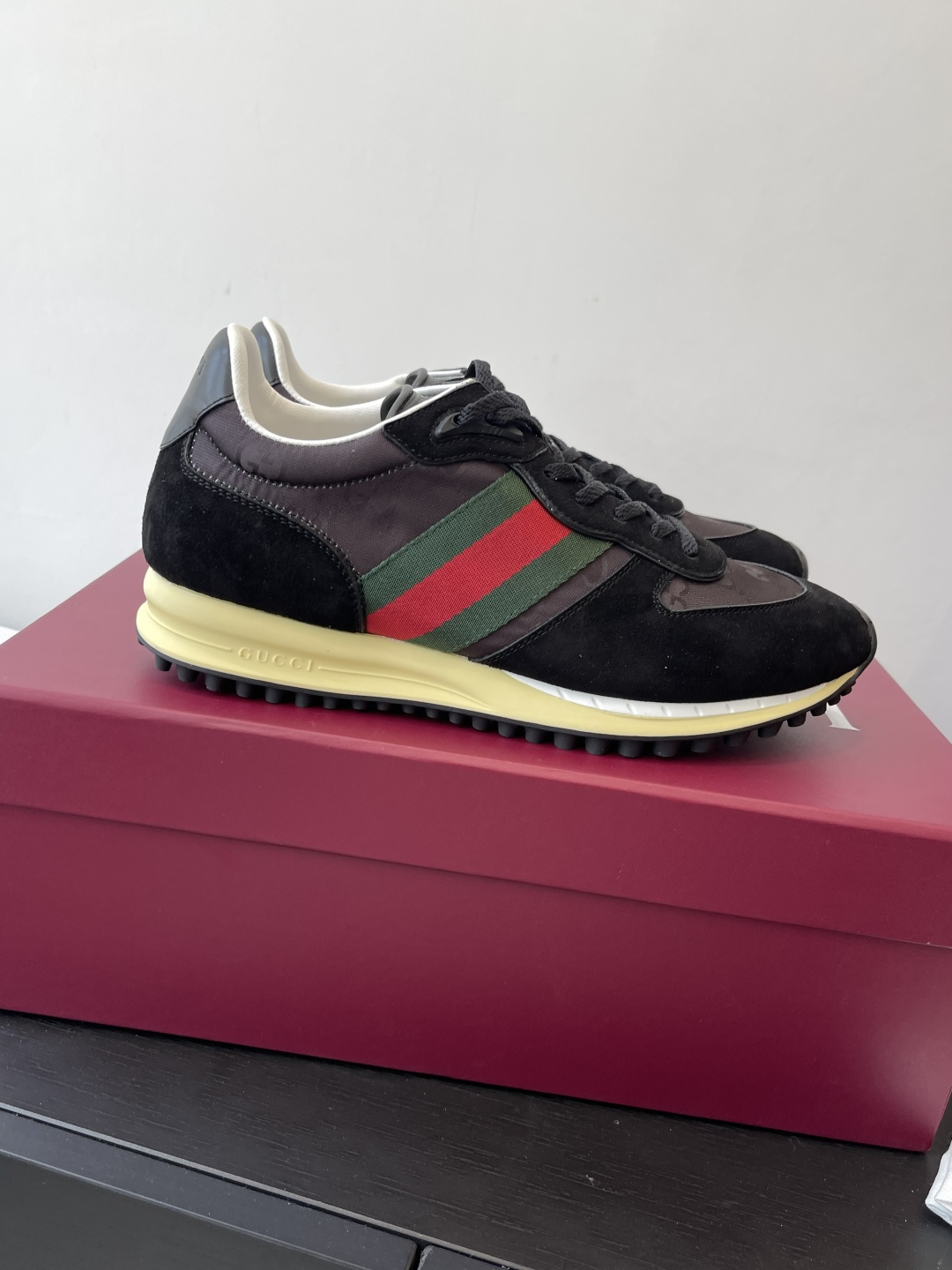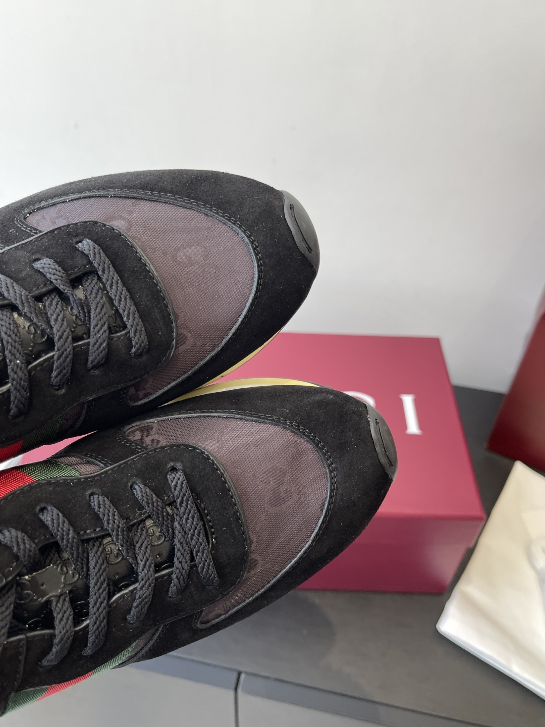 这款鞋子是AAAAA 1:1 质量 (非常棒). 使用了和原版一模一样的材料. 商标部分也保持了和古奇/Gucci一样. 图片拍摄是实物鞋子拍摄, 您所收到的实物保证和我们图片一模一样.