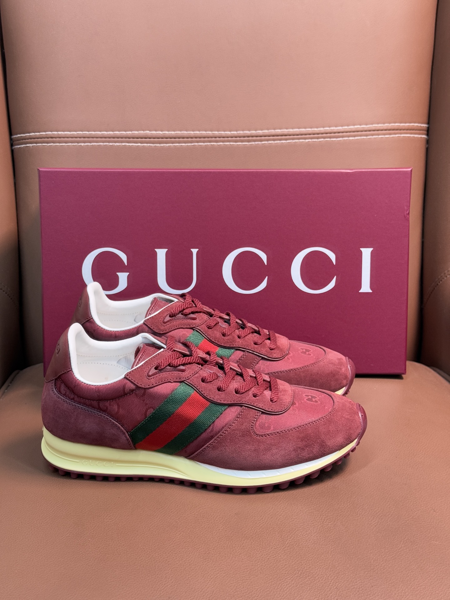 这款鞋子是AAAAA 1:1 质量 (非常棒). 使用了和原版一模一样的材料. 商标部分也保持了和古奇/Gucci一样. 图片拍摄是实物鞋子拍摄, 您所收到的实物保证和我们图片一模一样.