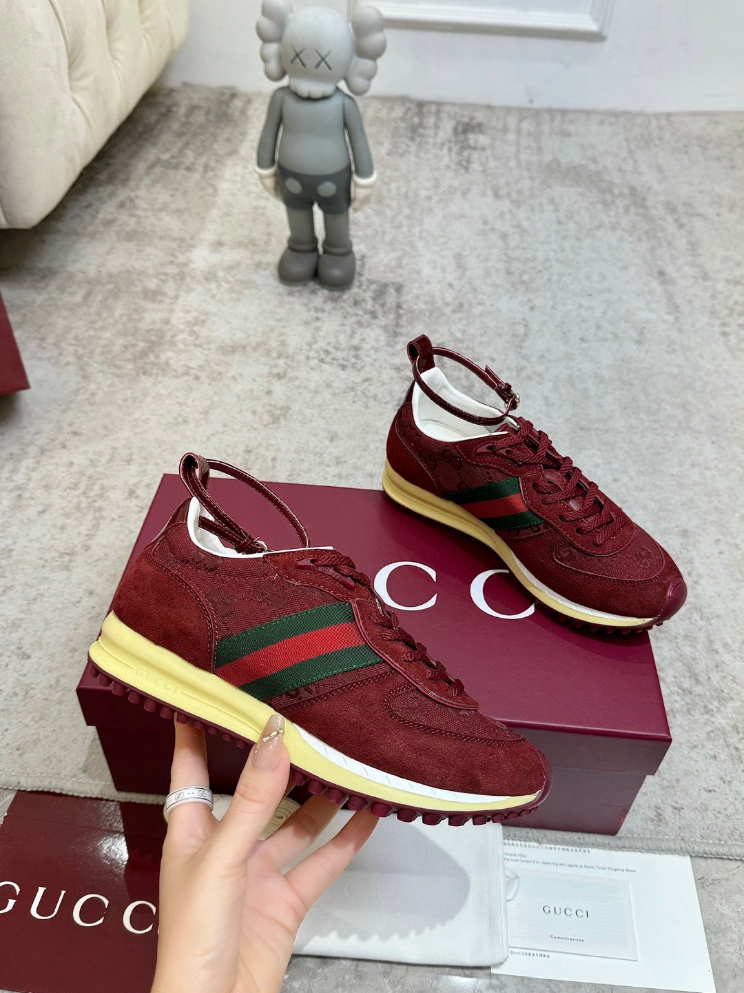 这款鞋子是AAAAA 1:1 质量 (非常棒). 使用了和原版一模一样的材料. 商标部分也保持了和古奇/Gucci一样. 图片拍摄是实物鞋子拍摄, 您所收到的实物保证和我们图片一模一样.