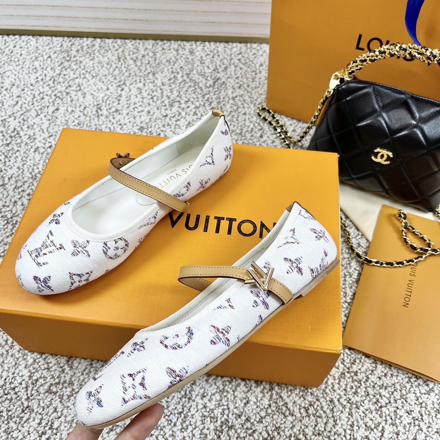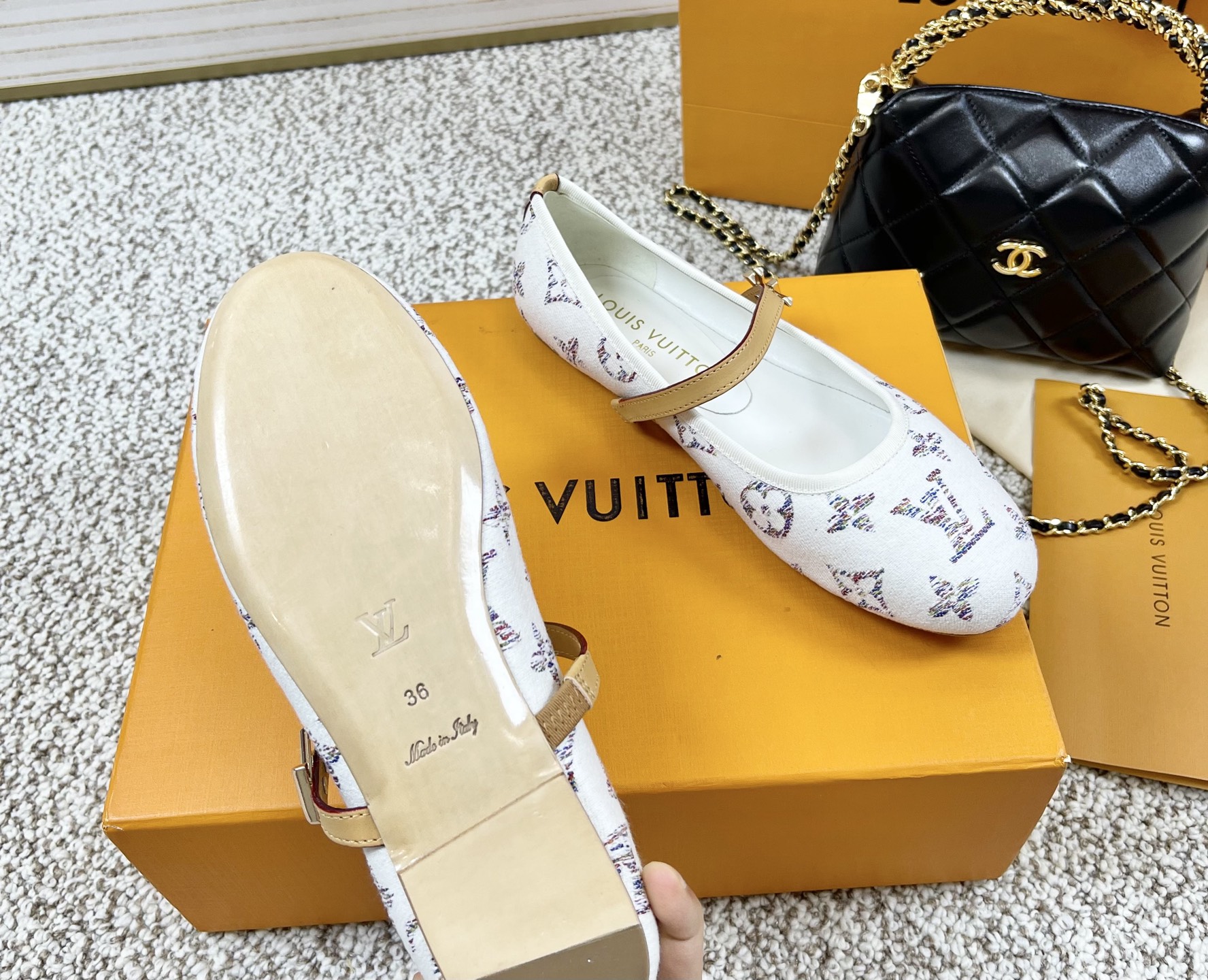 这款鞋子是AAAAA 1:1 质量 (非常棒). 使用了和原版一模一样的材料. 商标部分也保持了和路易威登/Louis Vuitton一样. 图片拍摄是实物鞋子拍摄, 您所收到的实物保证和我们图片一模一样.