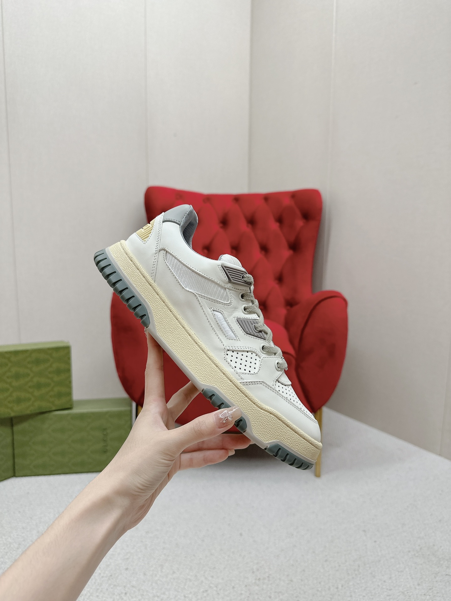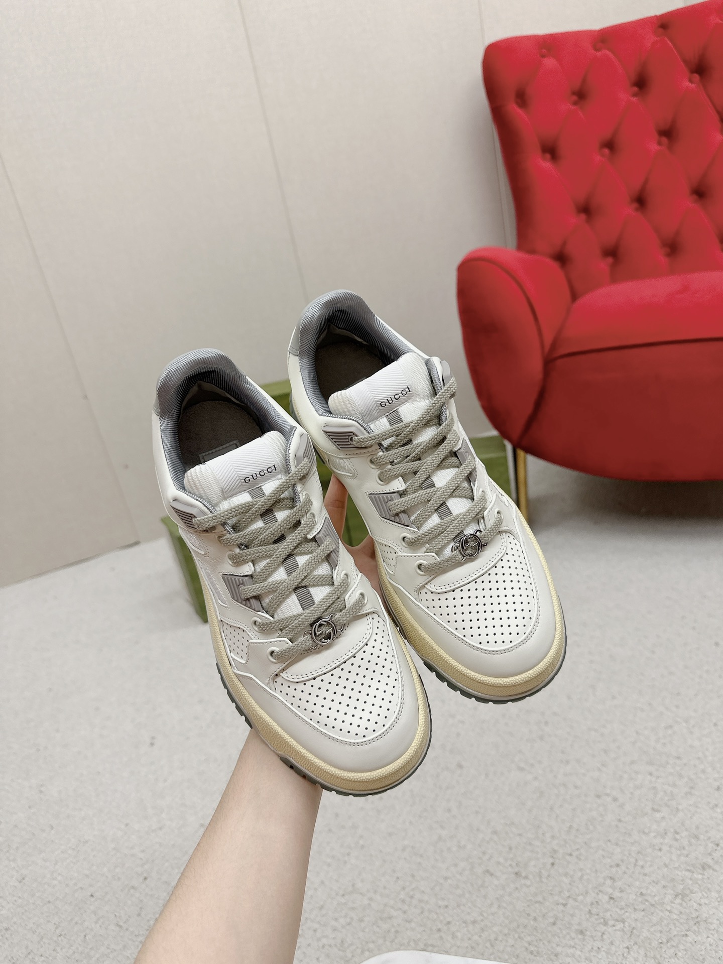 这款鞋子是AAAAA 1:1 质量 (非常棒). 使用了和原版一模一样的材料. 商标部分也保持了和古奇/Gucci一样. 图片拍摄是实物鞋子拍摄, 您所收到的实物保证和我们图片一模一样.