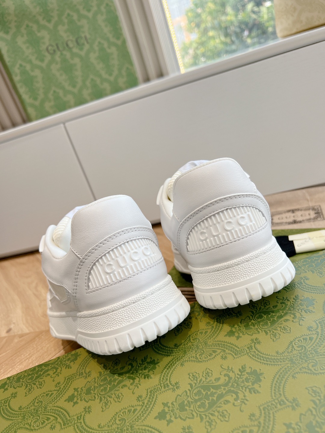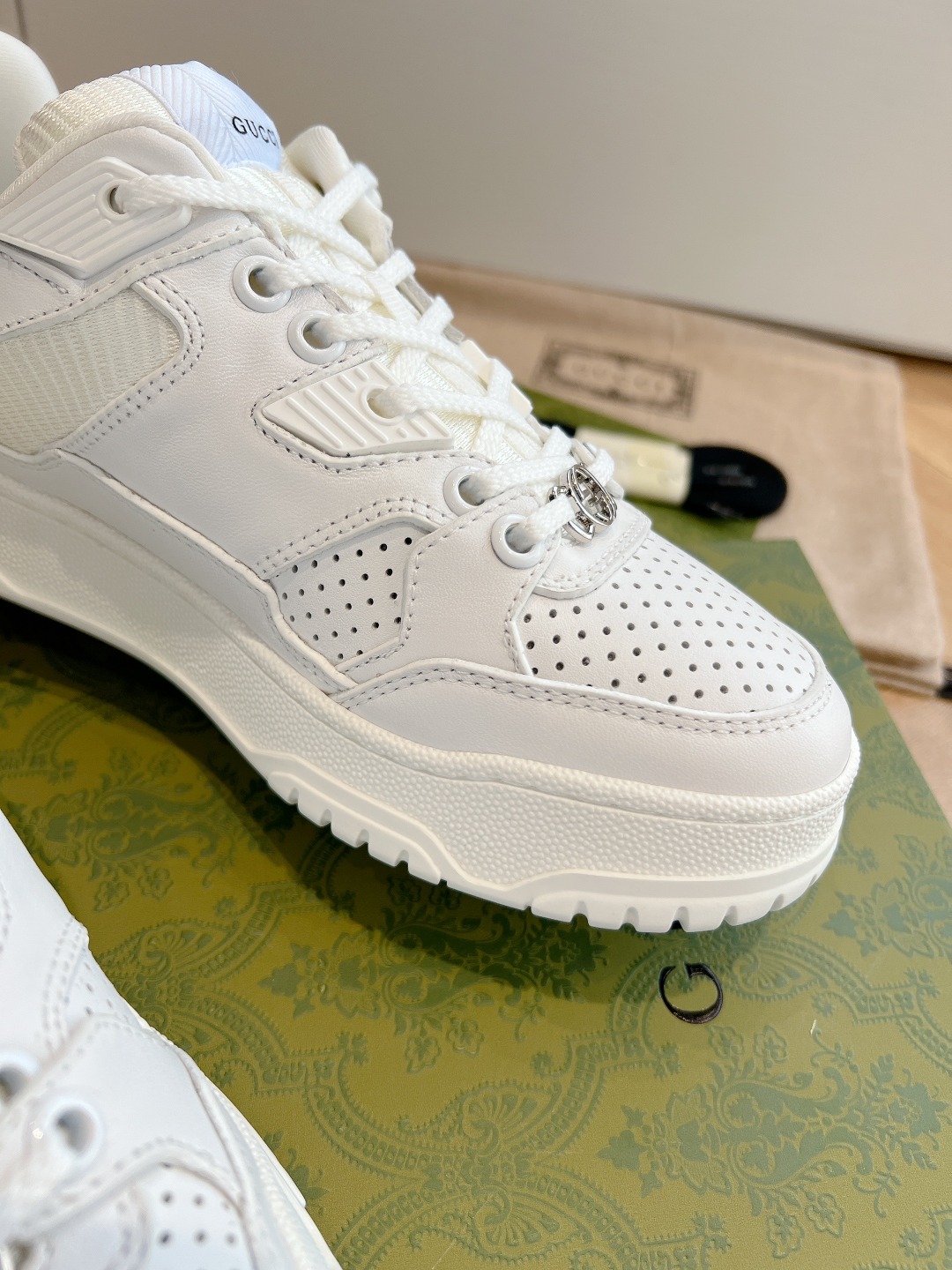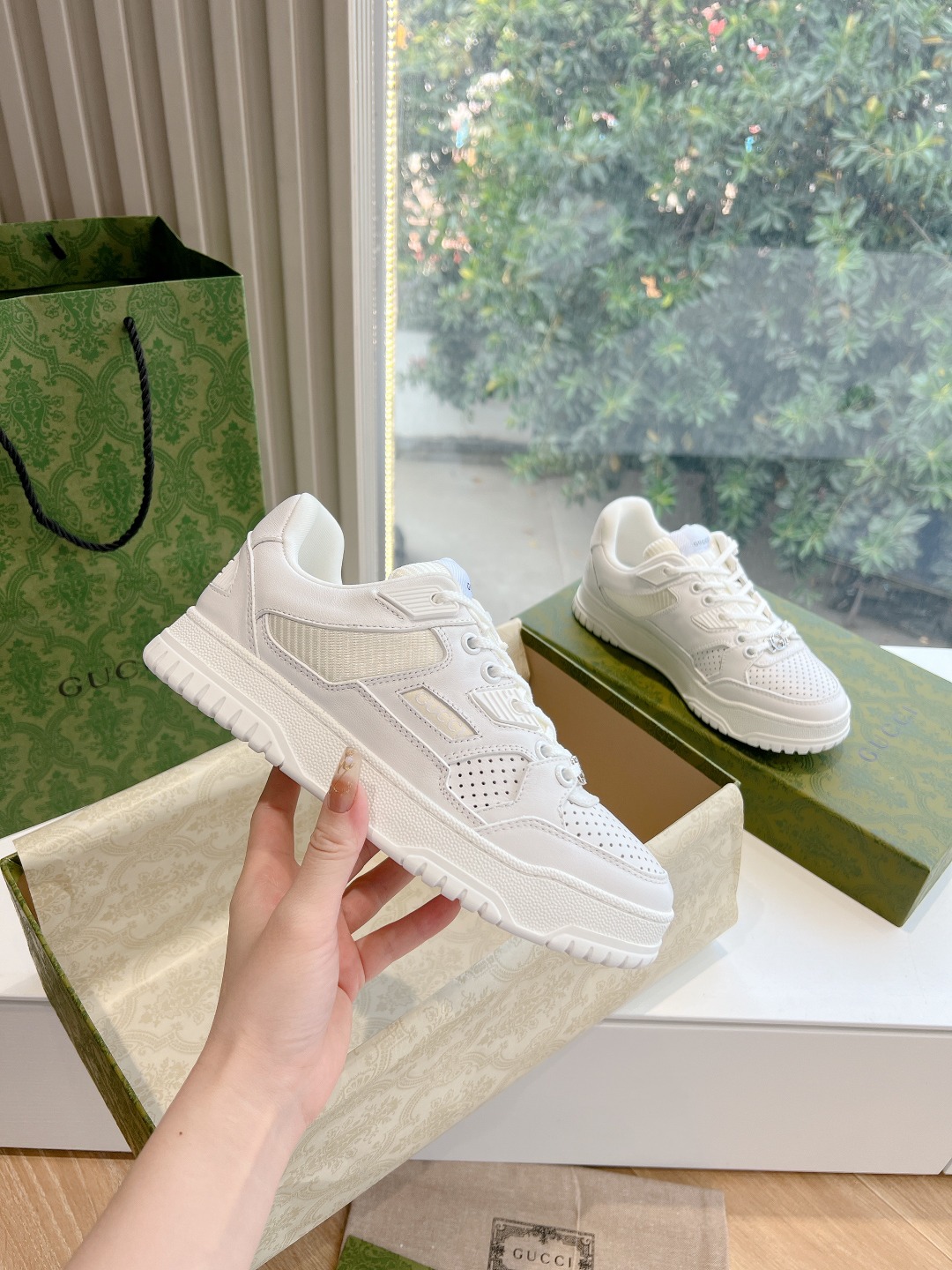 这款鞋子是AAAAA 1:1 质量 (非常棒). 使用了和原版一模一样的材料. 商标部分也保持了和古奇/Gucci一样. 图片拍摄是实物鞋子拍摄, 您所收到的实物保证和我们图片一模一样.