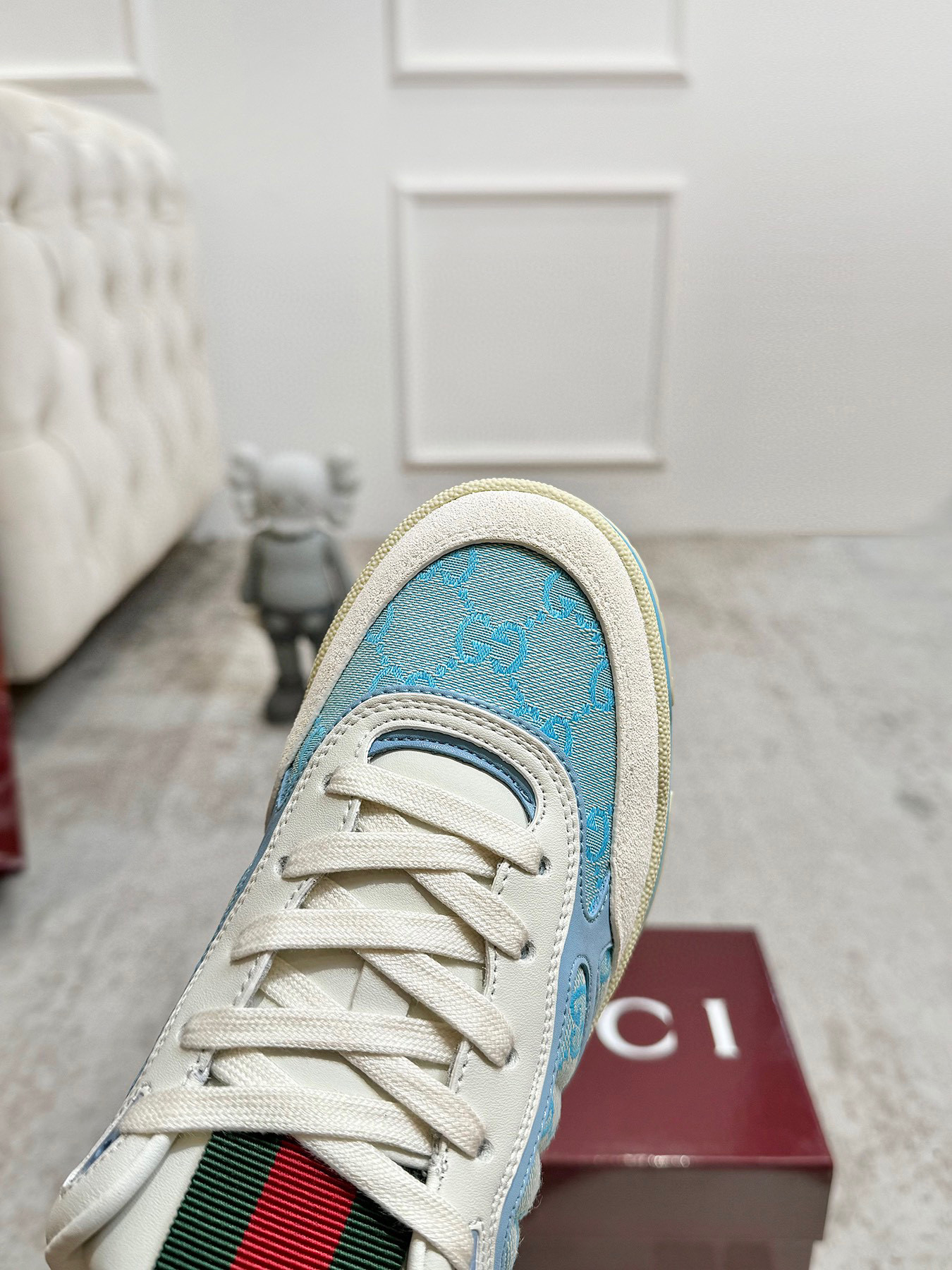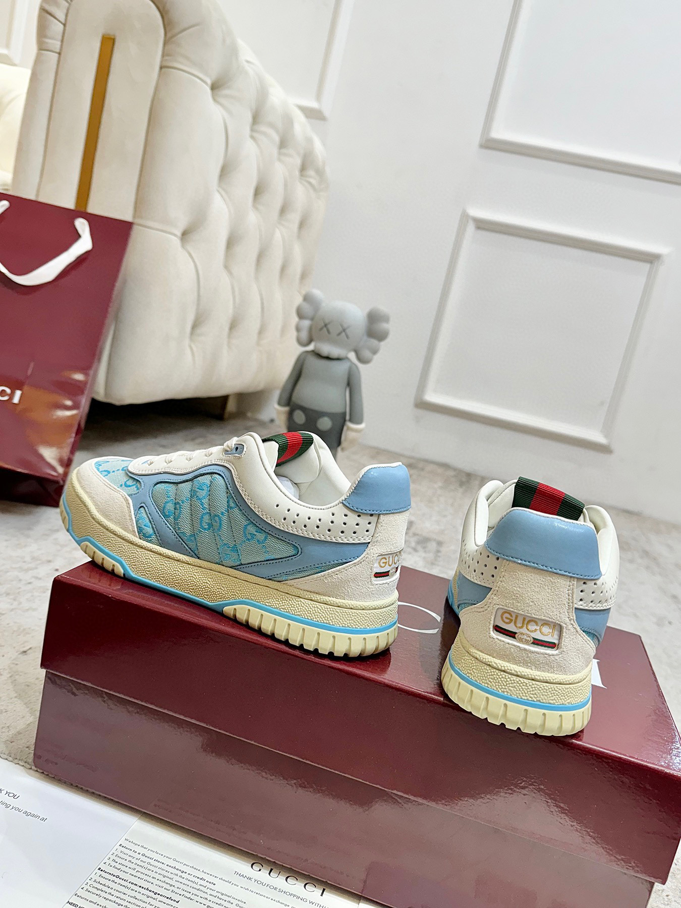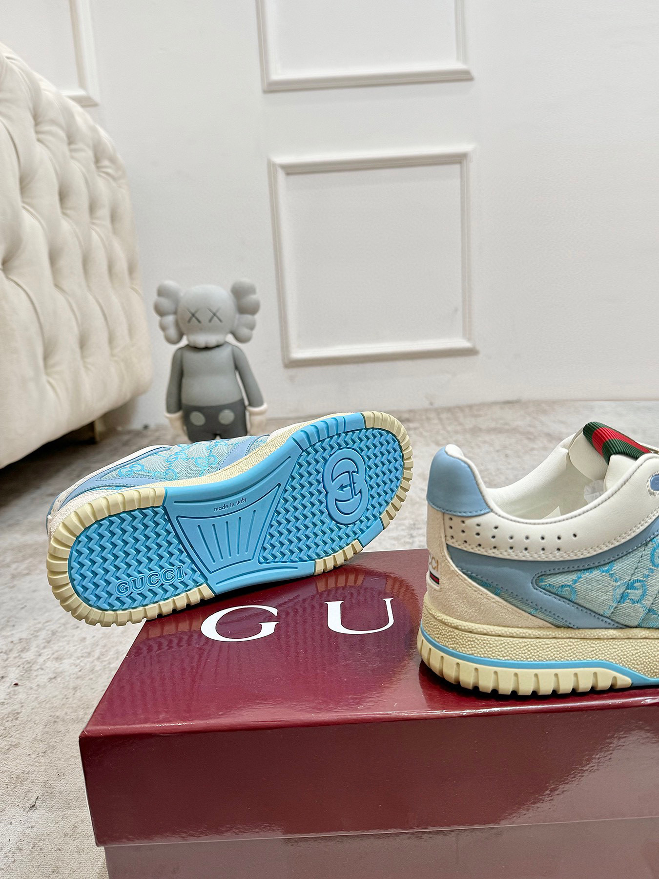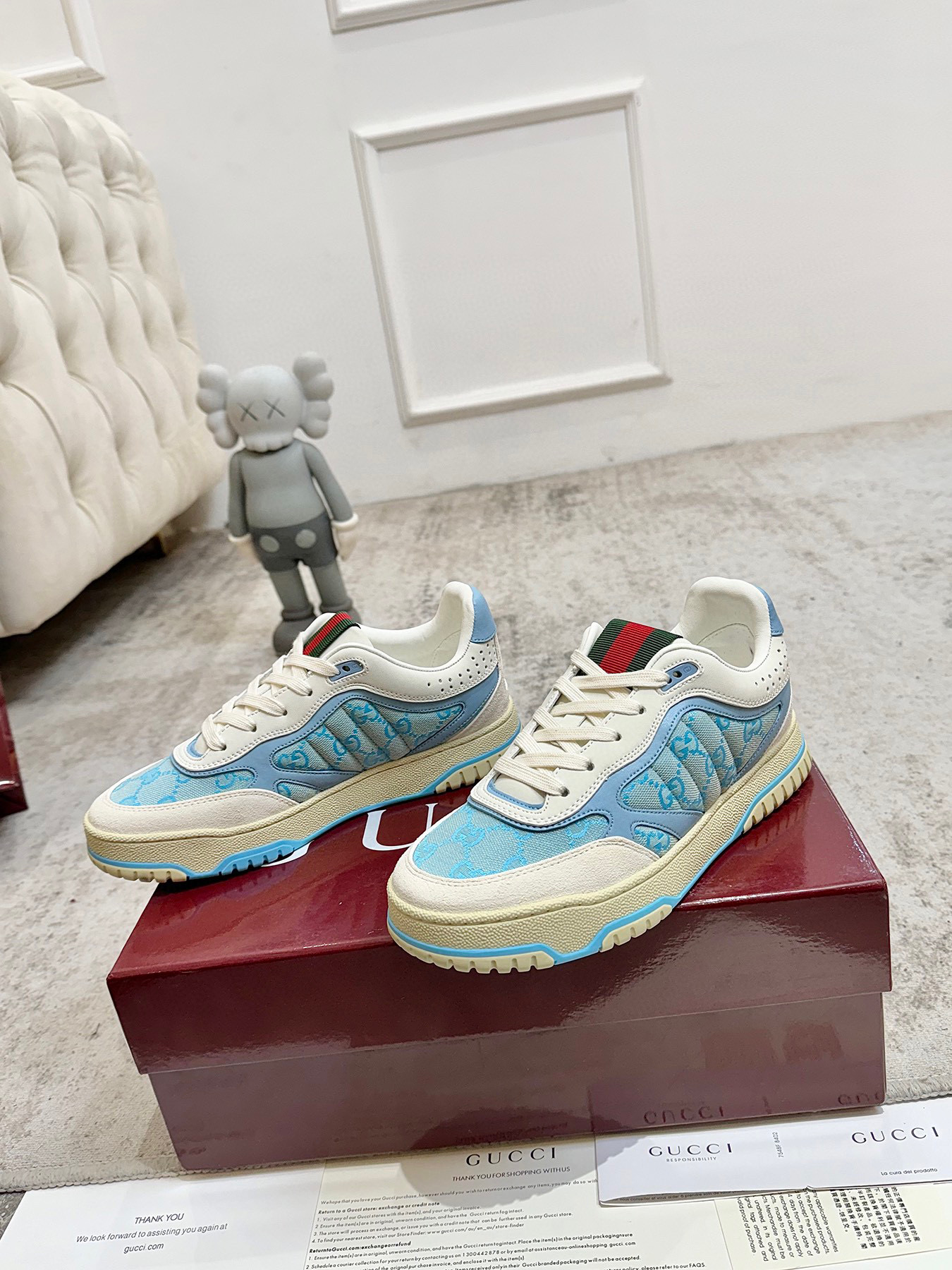 这款鞋子是AAAAA 1:1 质量 (非常棒). 使用了和原版一模一样的材料. 商标部分也保持了和古奇/Gucci一样. 图片拍摄是实物鞋子拍摄, 您所收到的实物保证和我们图片一模一样.