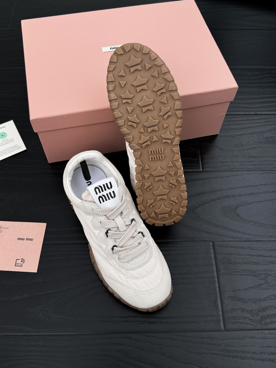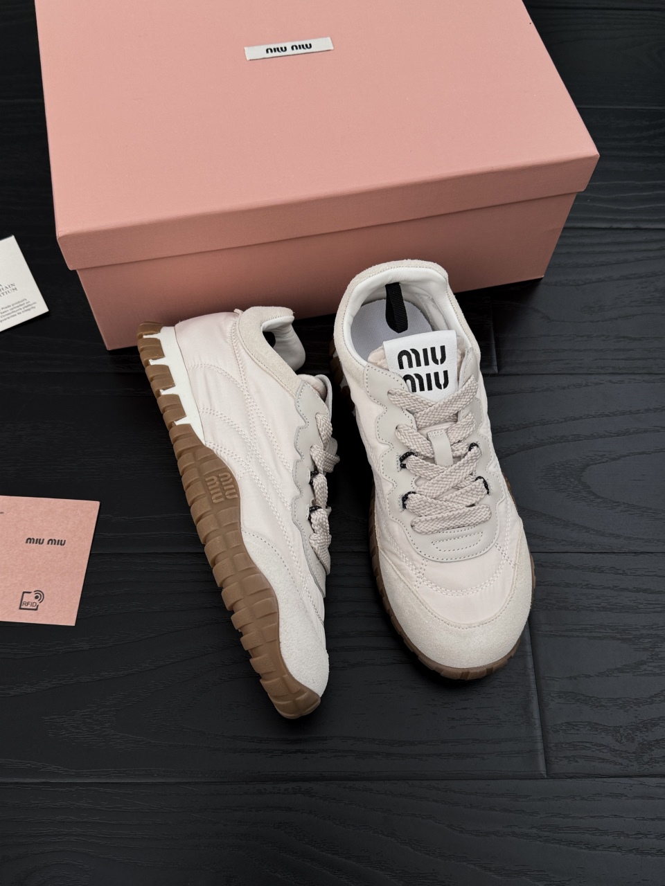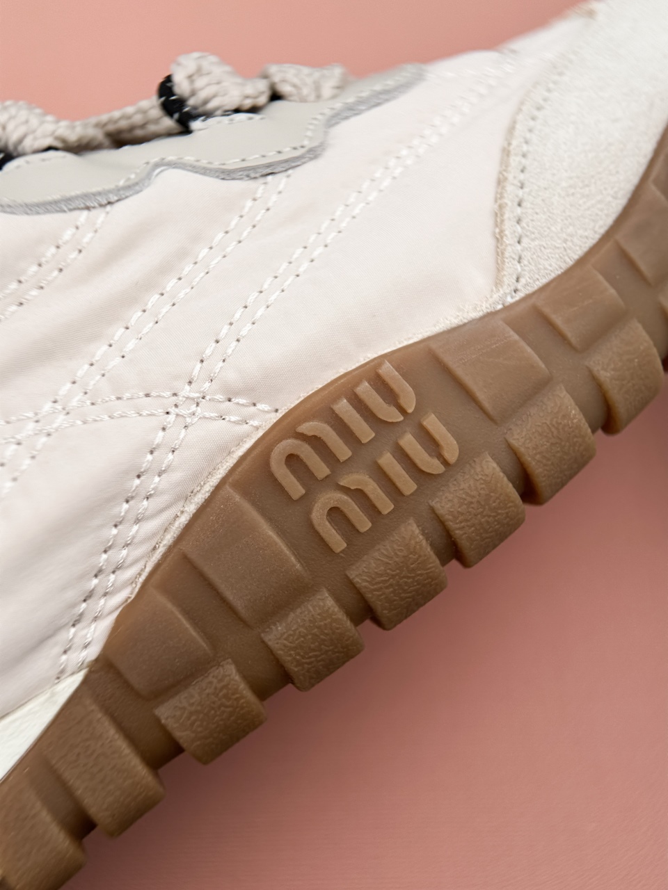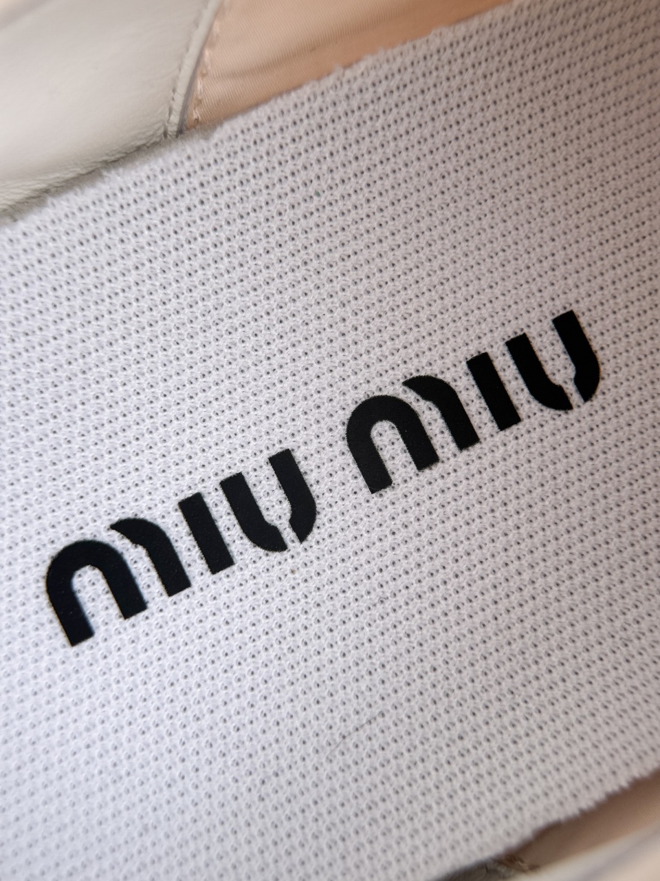 这款鞋子是AAAAA 1:1 质量 (非常棒). 使用了和原版一模一样的材料. 商标部分也保持了和缪缪/Miu Miu一样. 图片拍摄是实物鞋子拍摄, 您所收到的实物保证和我们图片一模一样.