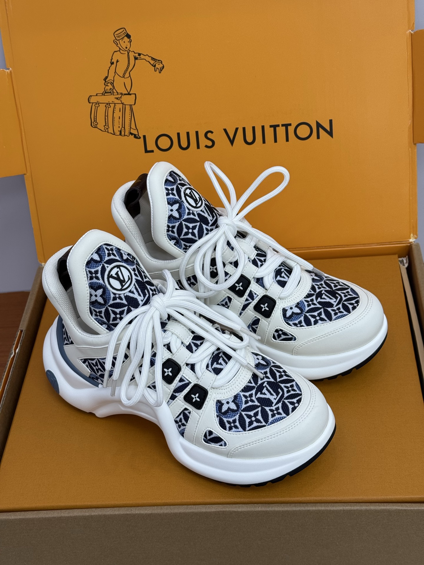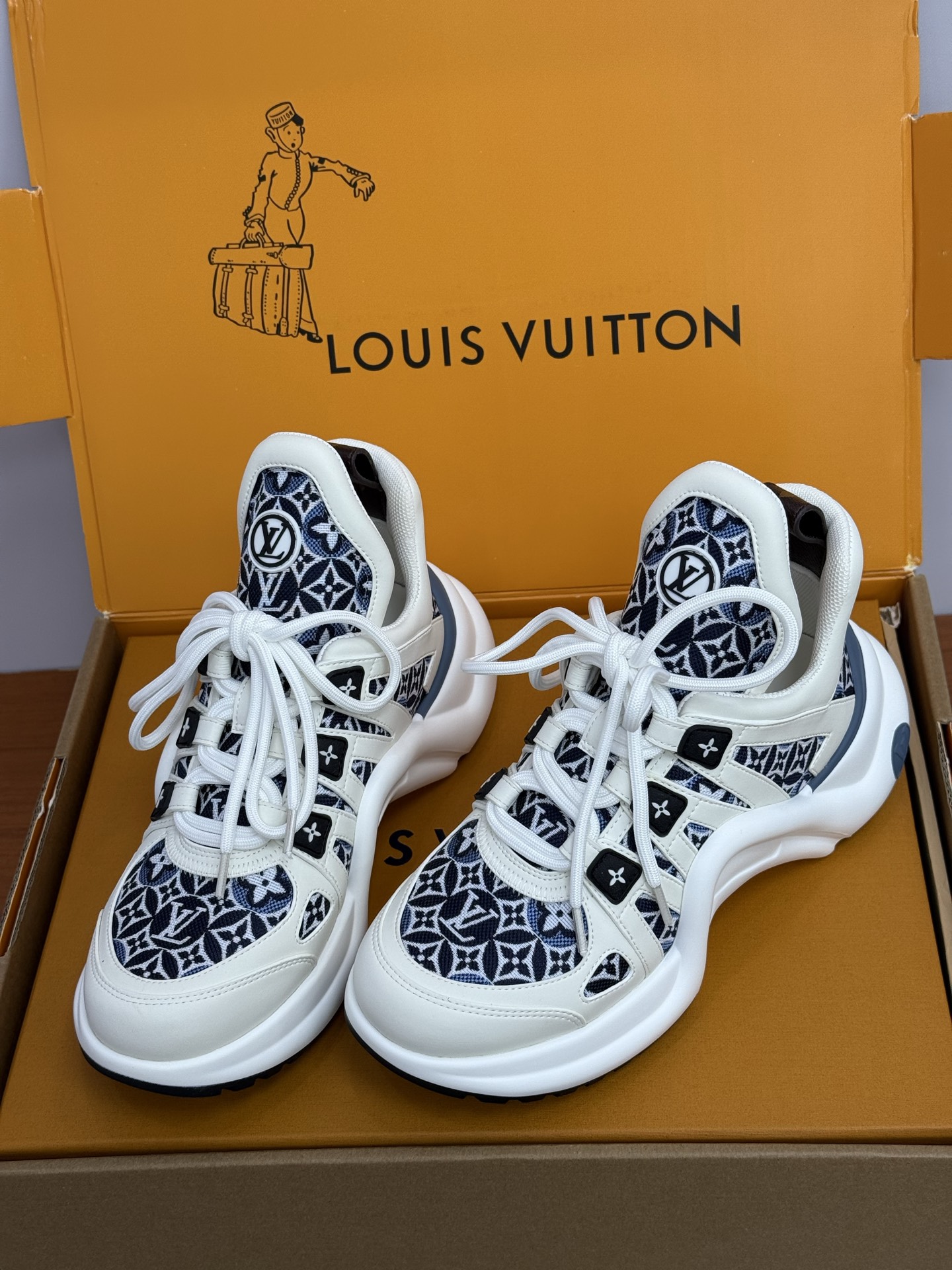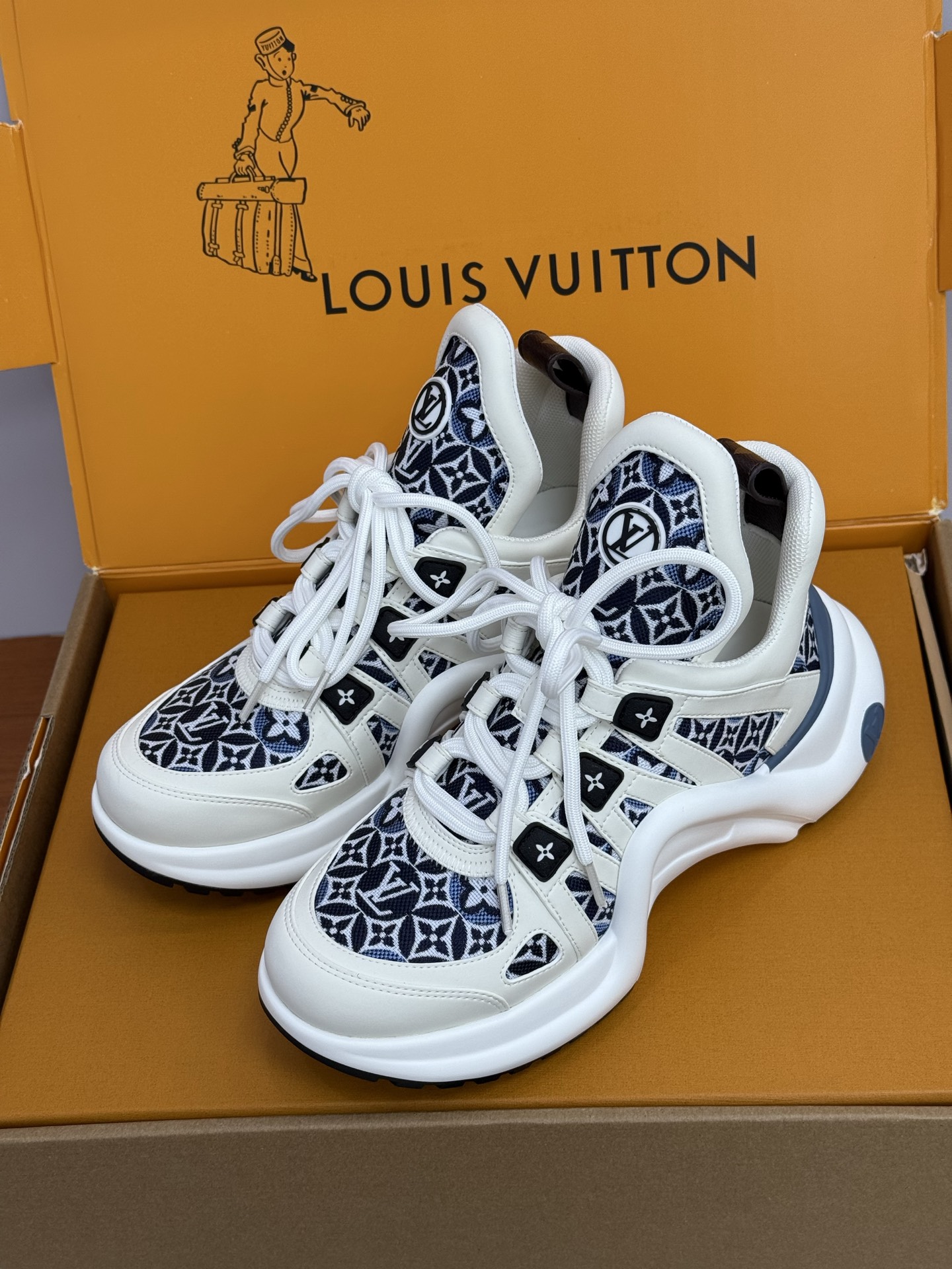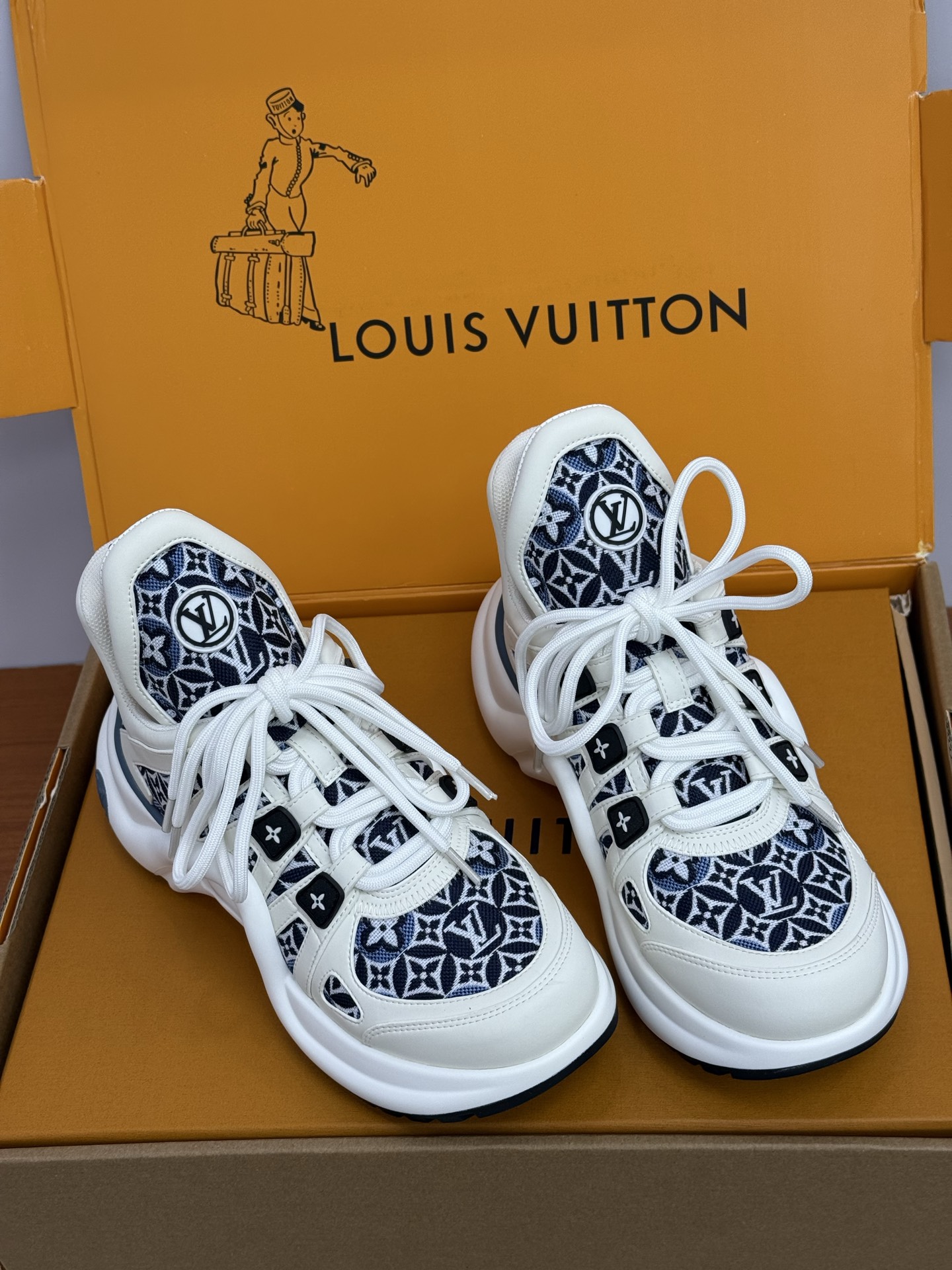 这款鞋子是AAAAA 1:1 质量 (非常棒). 使用了和原版一模一样的材料. 商标部分也保持了和路易威登/Louis Vuitton一样. 图片拍摄是实物鞋子拍摄, 您所收到的实物保证和我们图片一模一样.
