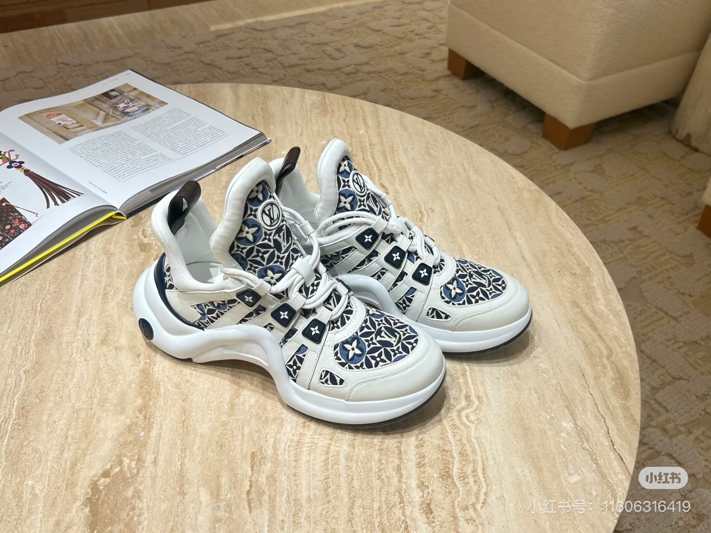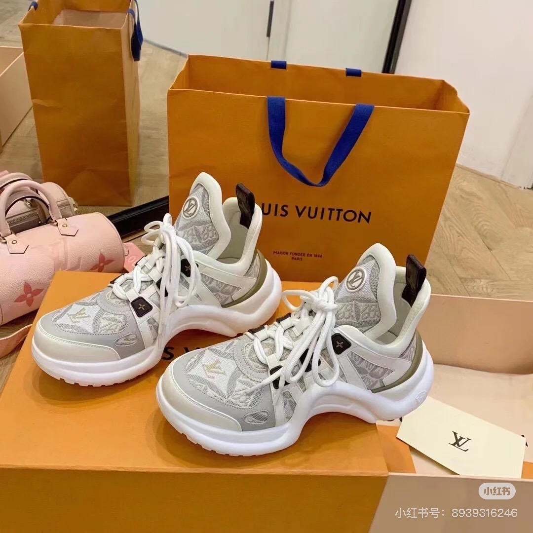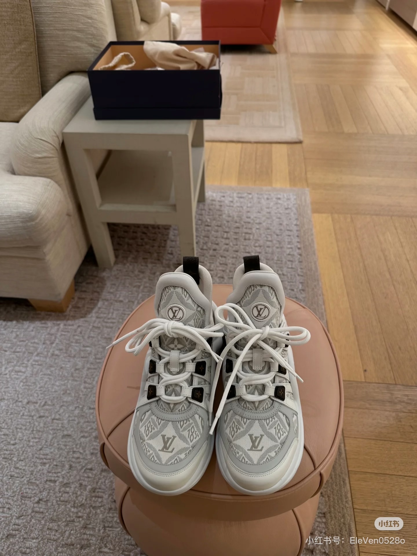 这款鞋子是AAAAA 1:1 质量 (非常棒). 使用了和原版一模一样的材料. 商标部分也保持了和路易威登/Louis Vuitton一样. 图片拍摄是实物鞋子拍摄, 您所收到的实物保证和我们图片一模一样.