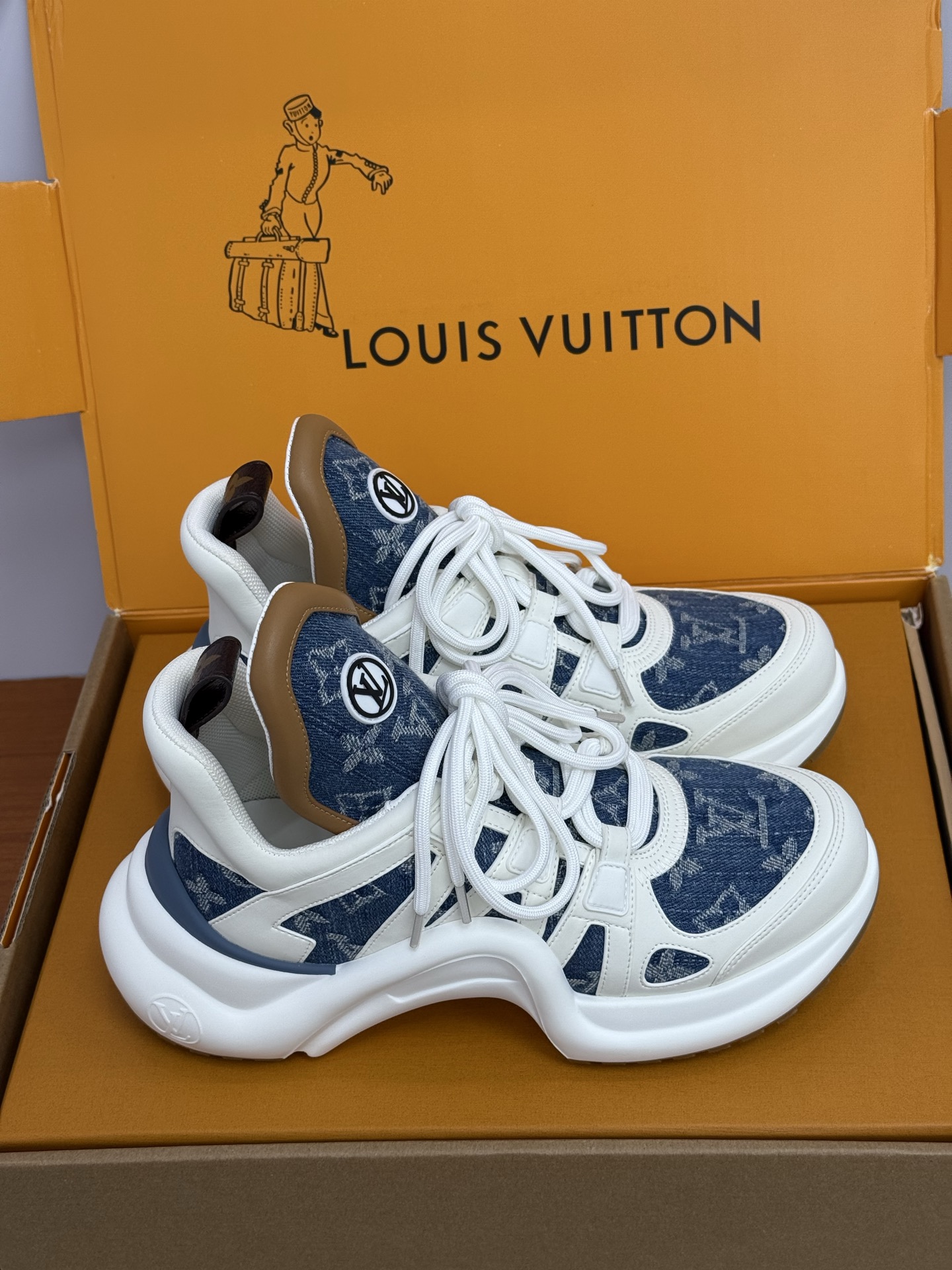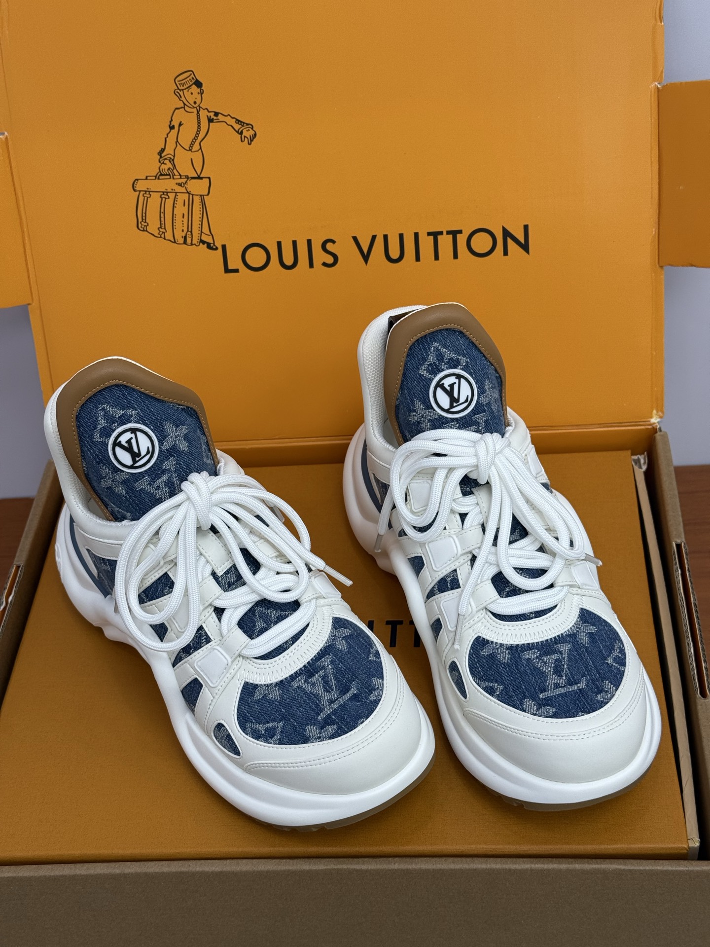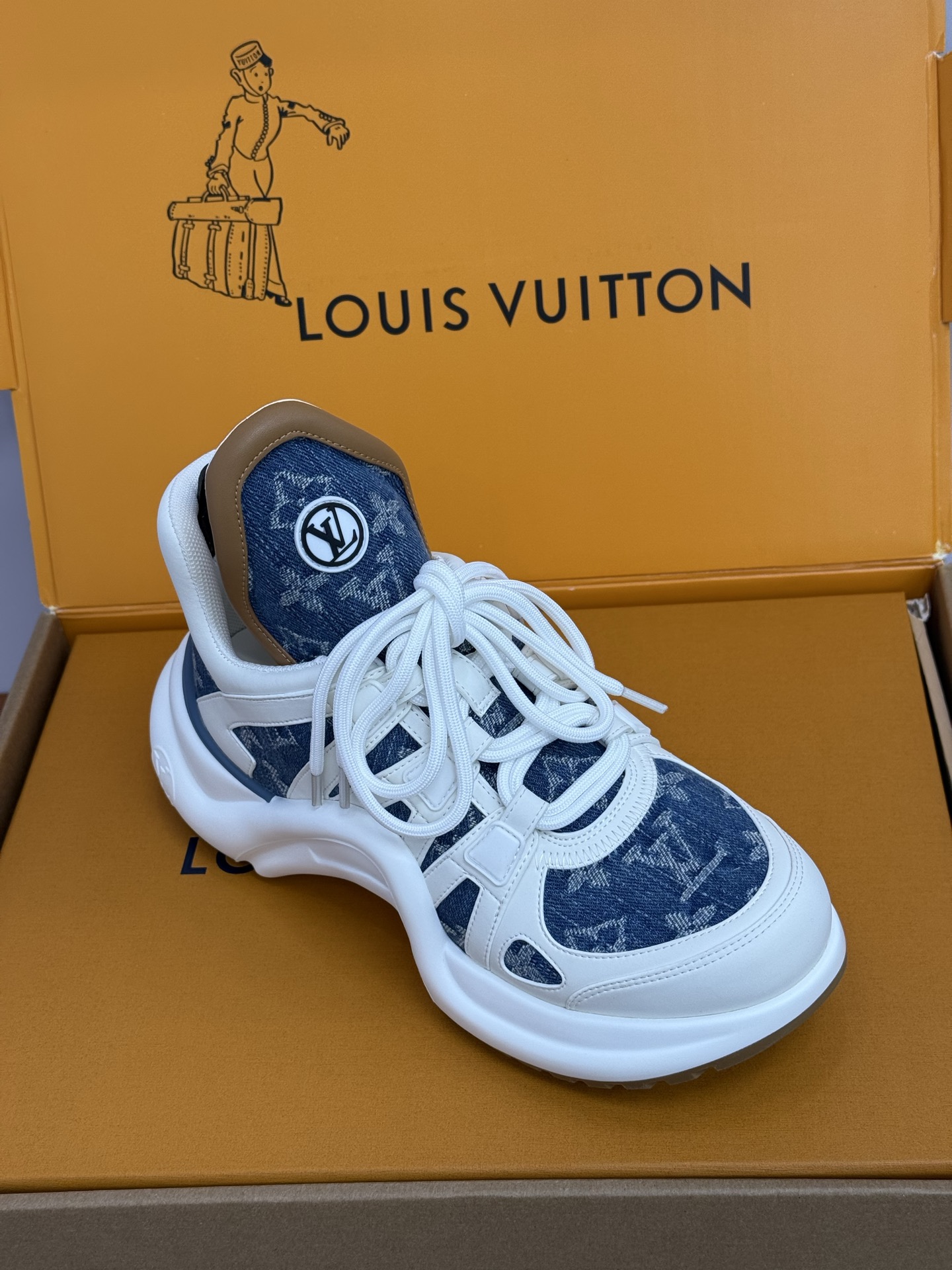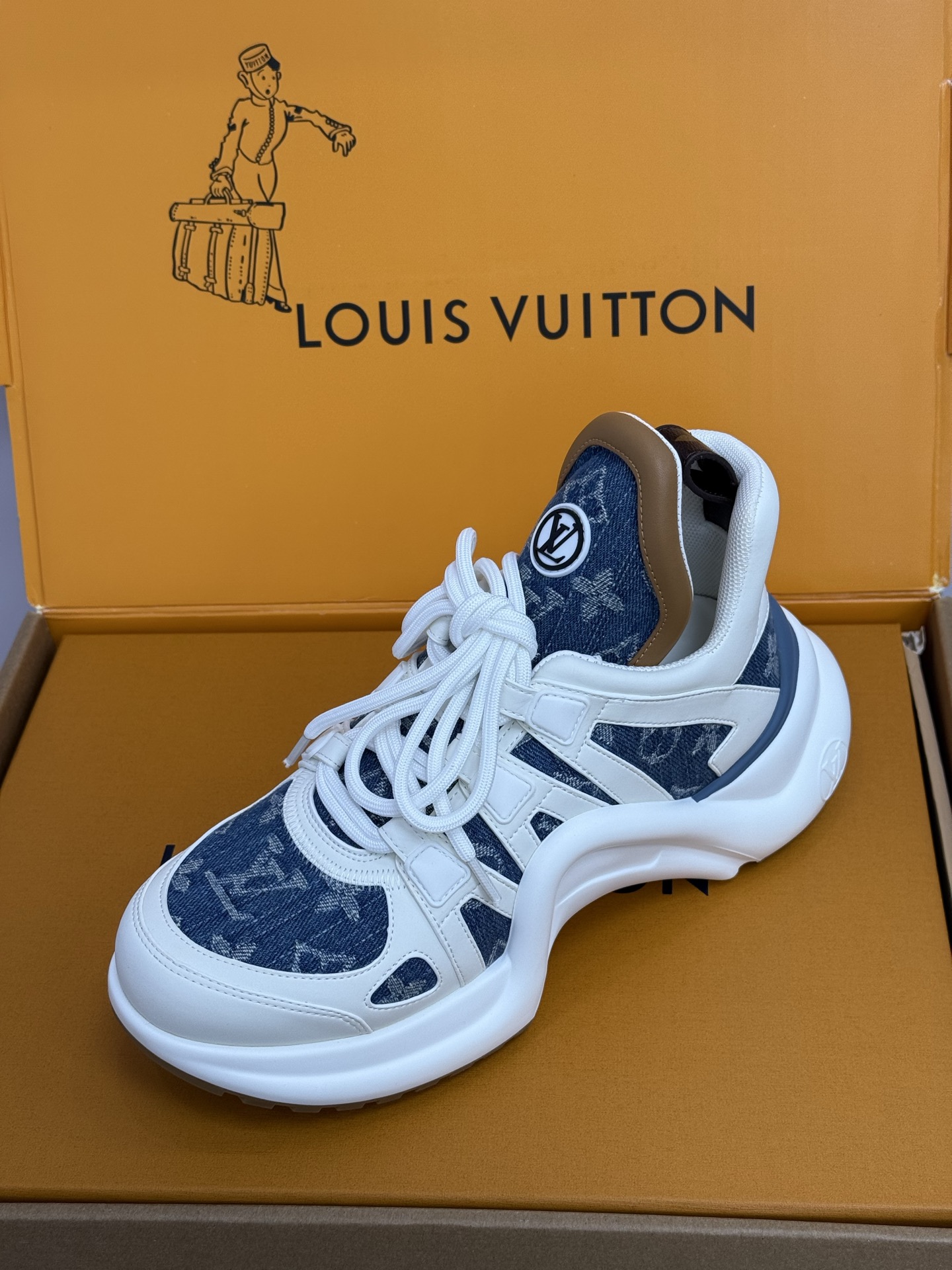 这款鞋子是AAAAA 1:1 质量 (非常棒). 使用了和原版一模一样的材料. 商标部分也保持了和路易威登/Louis Vuitton一样. 图片拍摄是实物鞋子拍摄, 您所收到的实物保证和我们图片一模一样.