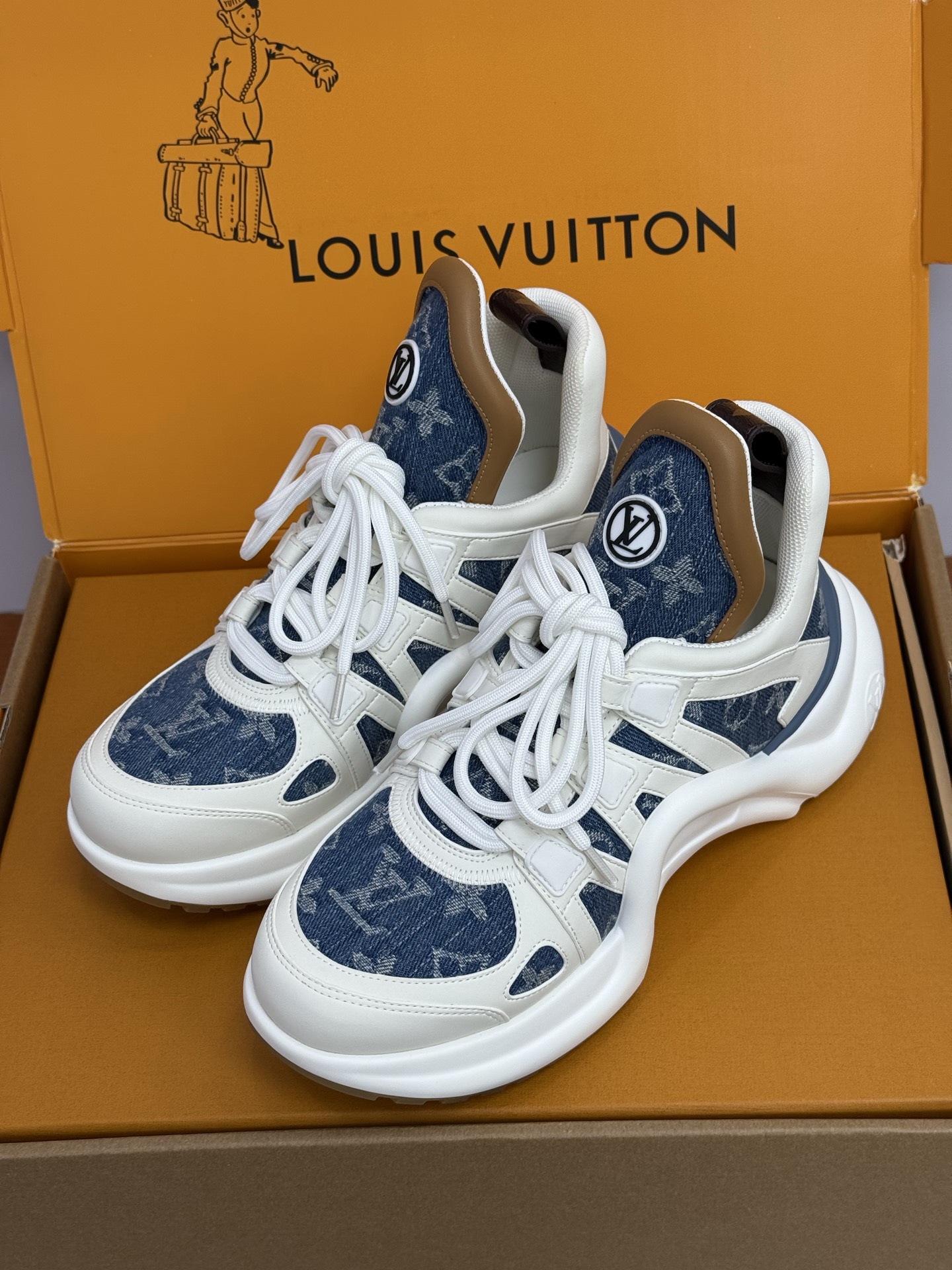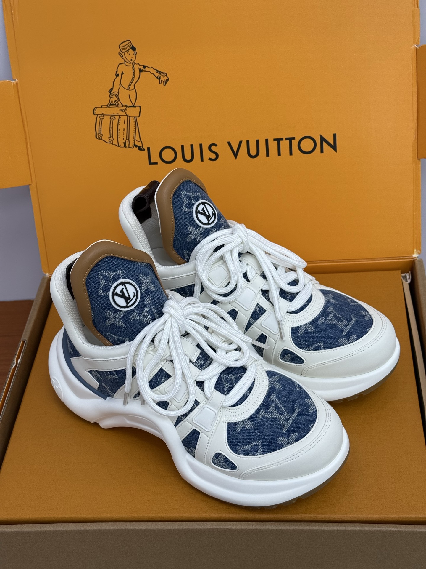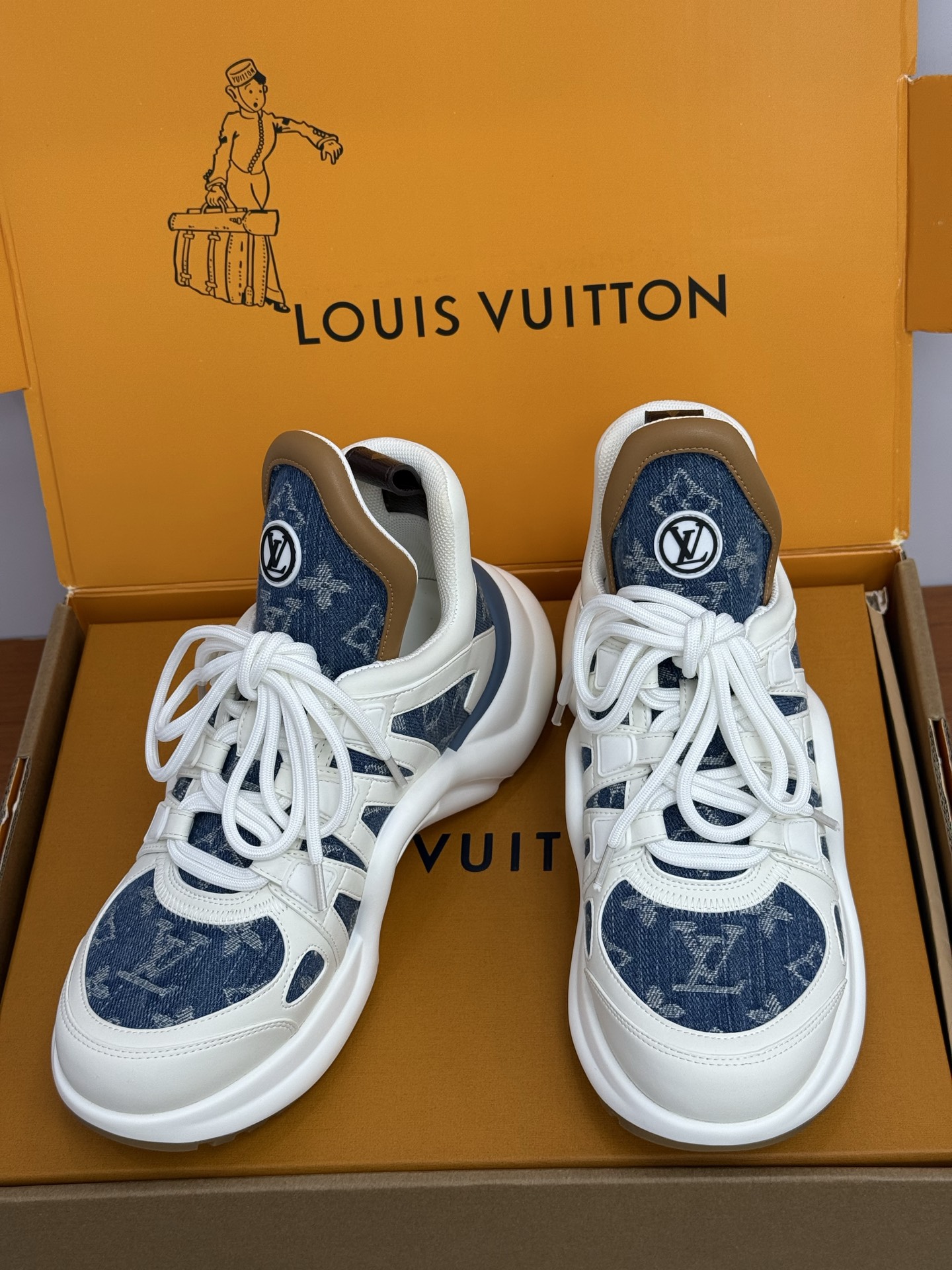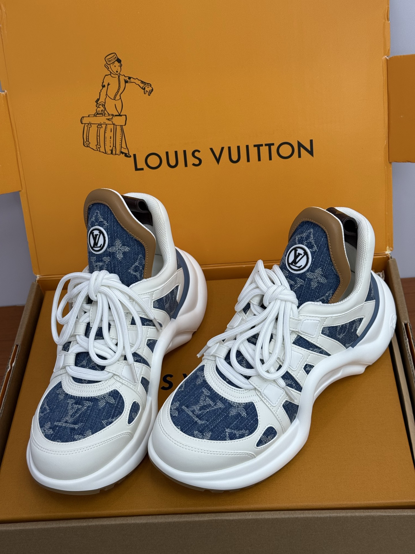 这款鞋子是AAAAA 1:1 质量 (非常棒). 使用了和原版一模一样的材料. 商标部分也保持了和路易威登/Louis Vuitton一样. 图片拍摄是实物鞋子拍摄, 您所收到的实物保证和我们图片一模一样.