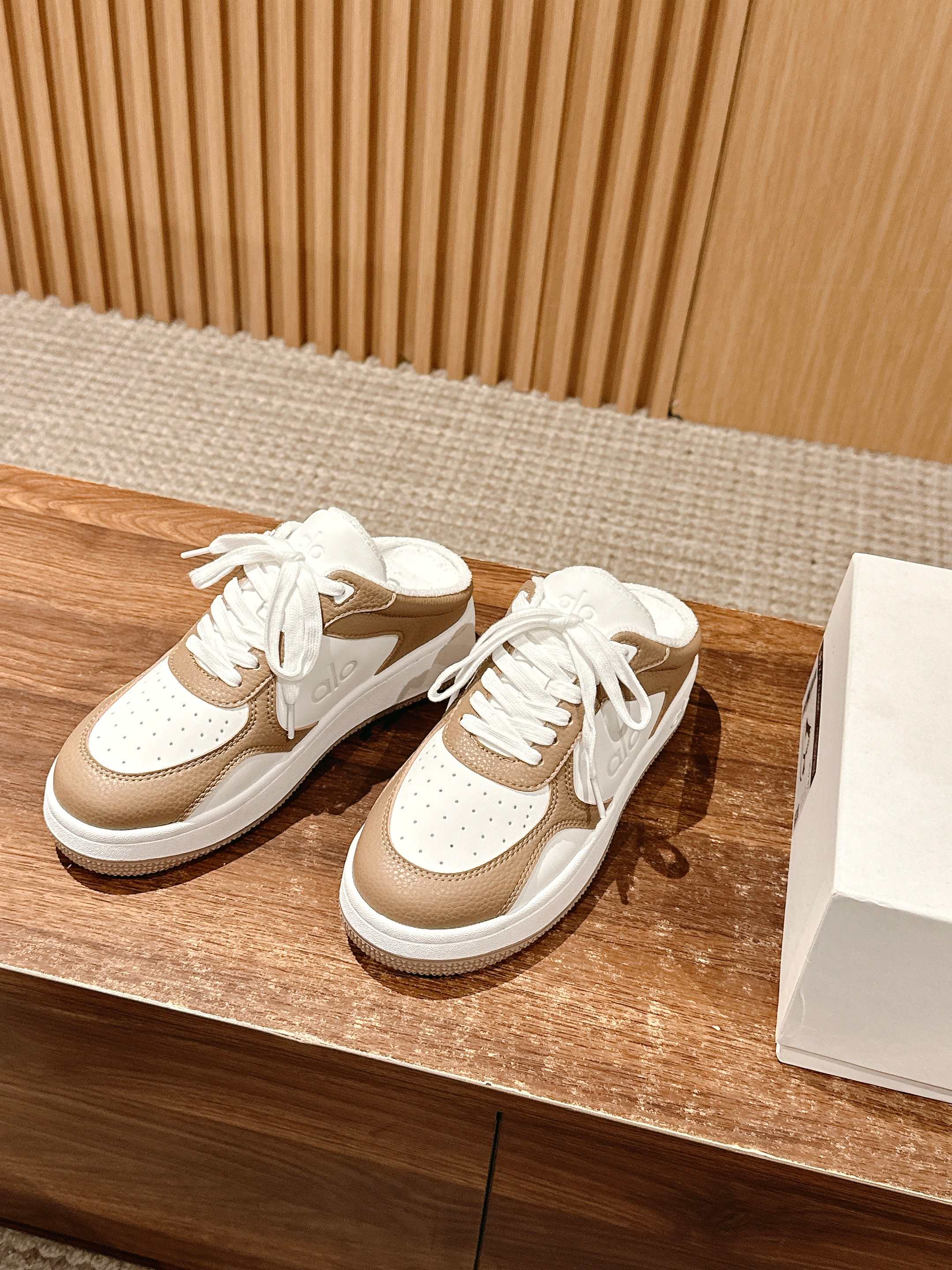 这款鞋子是AAAAA 1:1 质量 (非常棒). 使用了和原版一模一样的材料. 商标部分也保持了和Alo Yoga一样. 图片拍摄是实物鞋子拍摄, 您所收到的实物保证和我们图片一模一样.