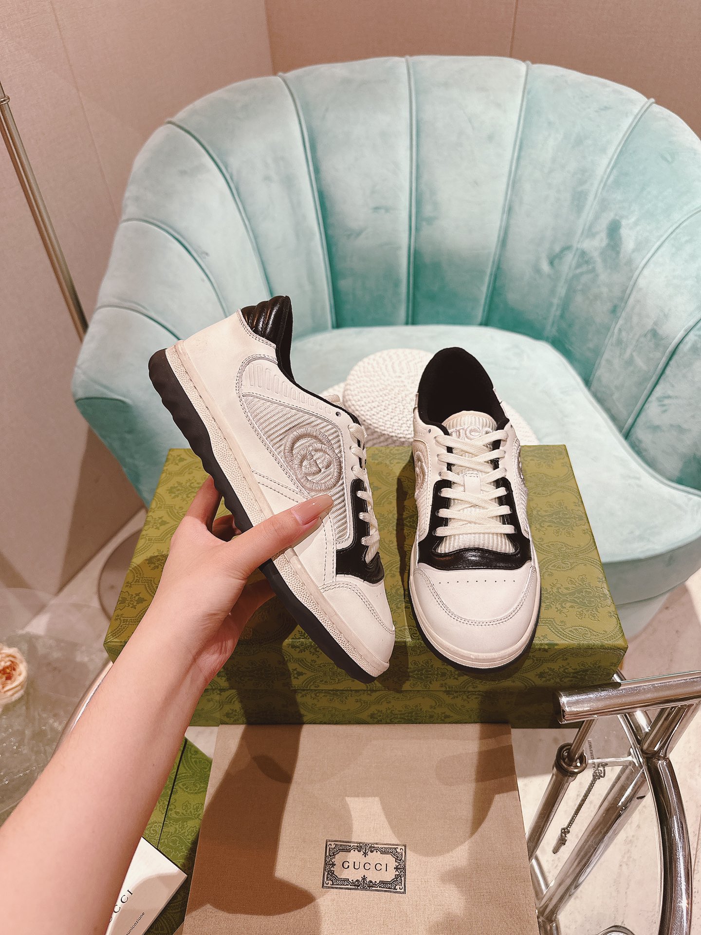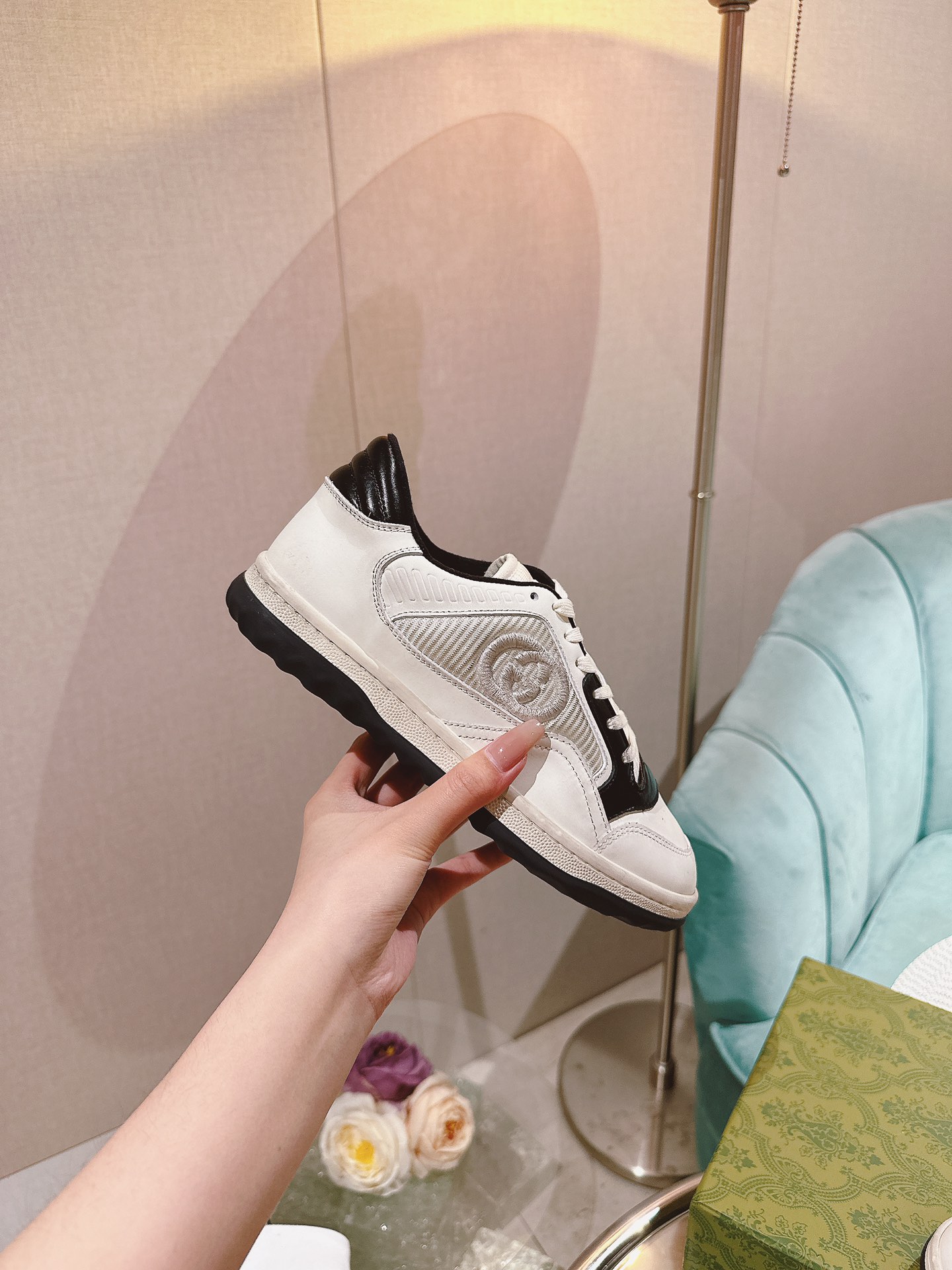 这款鞋子是AAAAA 1:1 质量 (非常棒). 使用了和原版一模一样的材料. 商标部分也保持了和古奇/Gucci一样. 图片拍摄是实物鞋子拍摄, 您所收到的实物保证和我们图片一模一样.