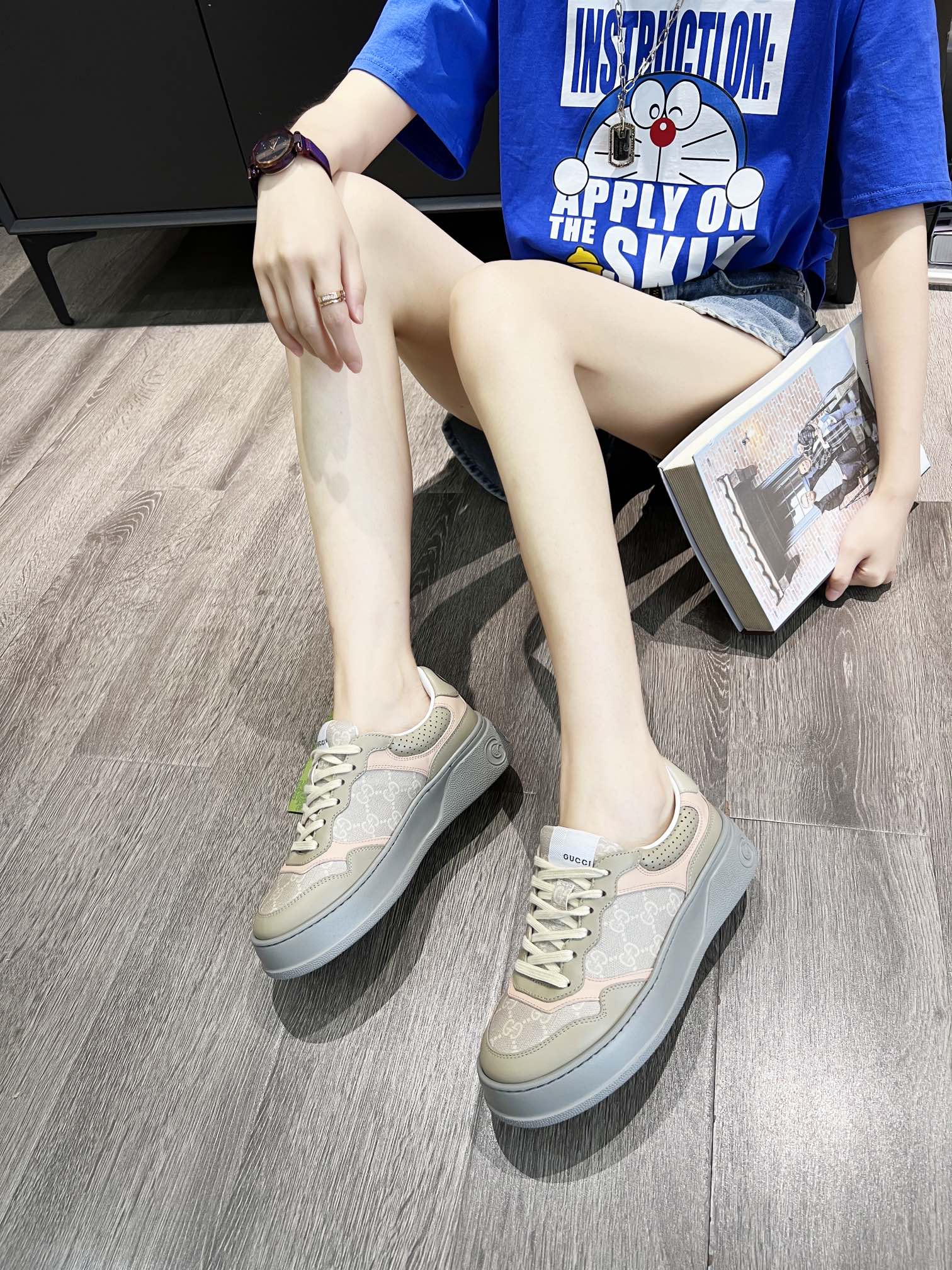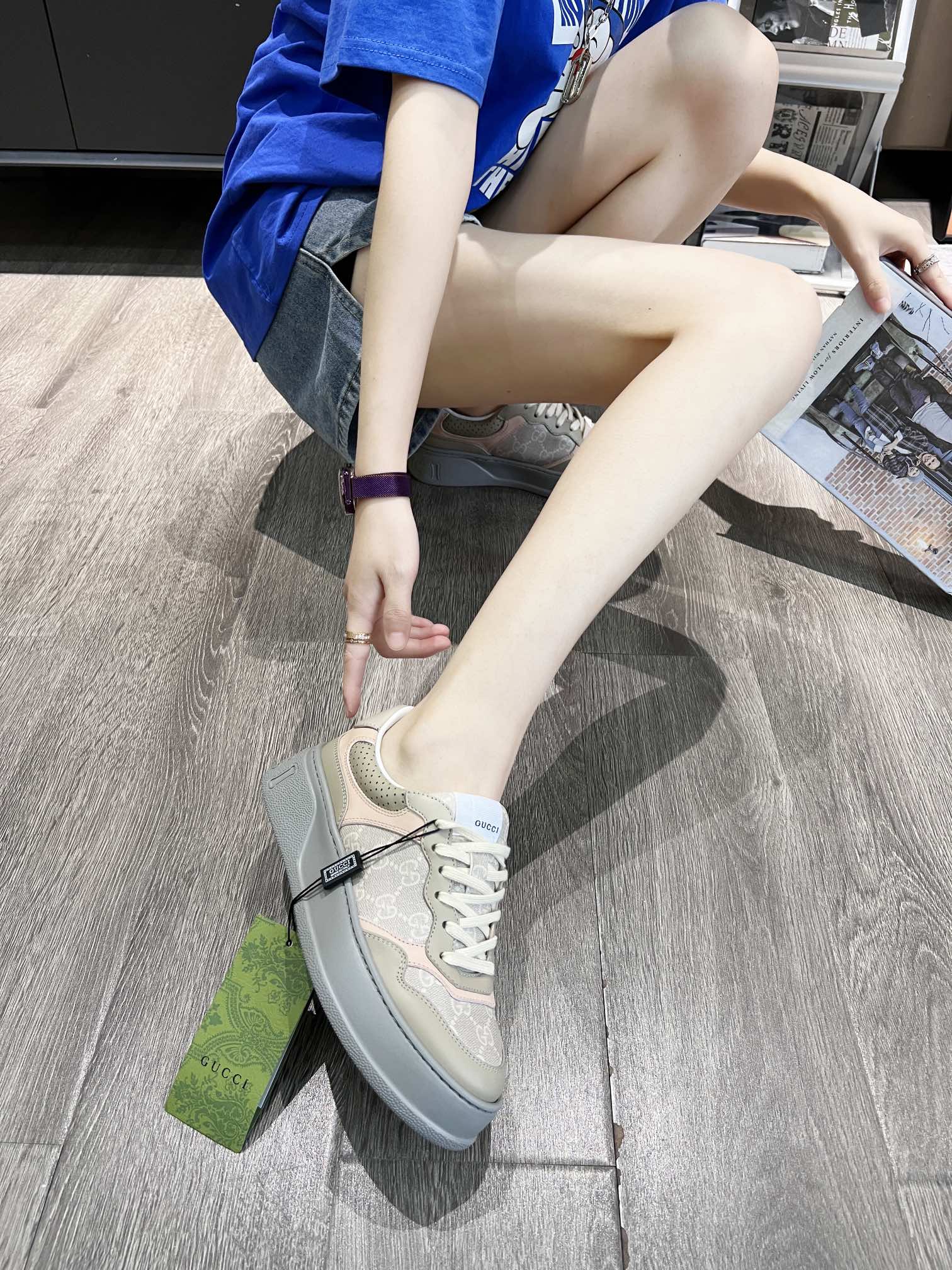 这款鞋子是AAAAA 1:1 质量 (非常棒). 使用了和原版一模一样的材料. 商标部分也保持了和古奇/Gucci一样. 图片拍摄是实物鞋子拍摄, 您所收到的实物保证和我们图片一模一样.
