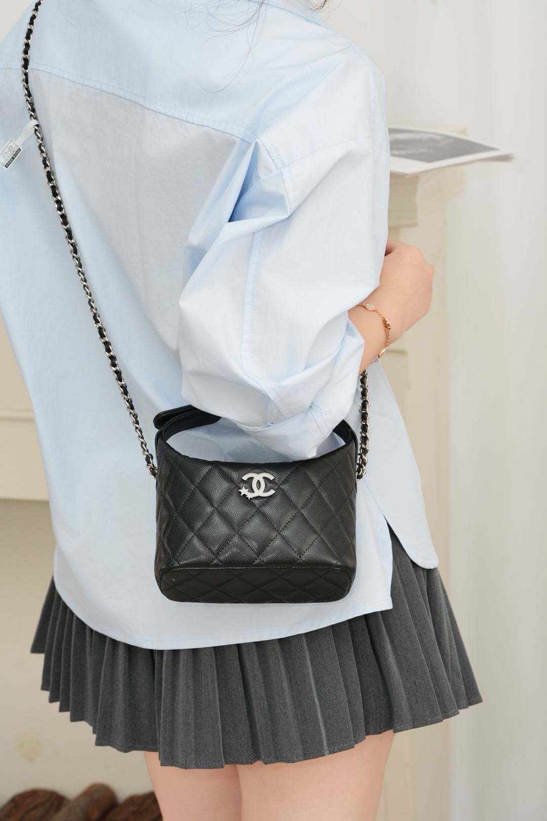 这款包包是AAAAA 1:1 质量 (非常棒). 使用了和原版一模一样的材料. 商标部分也保持了和香奈儿/Chanel一样. 图片拍摄是实物包包拍摄, 您所收到的实物保证和我们图片一模一样.