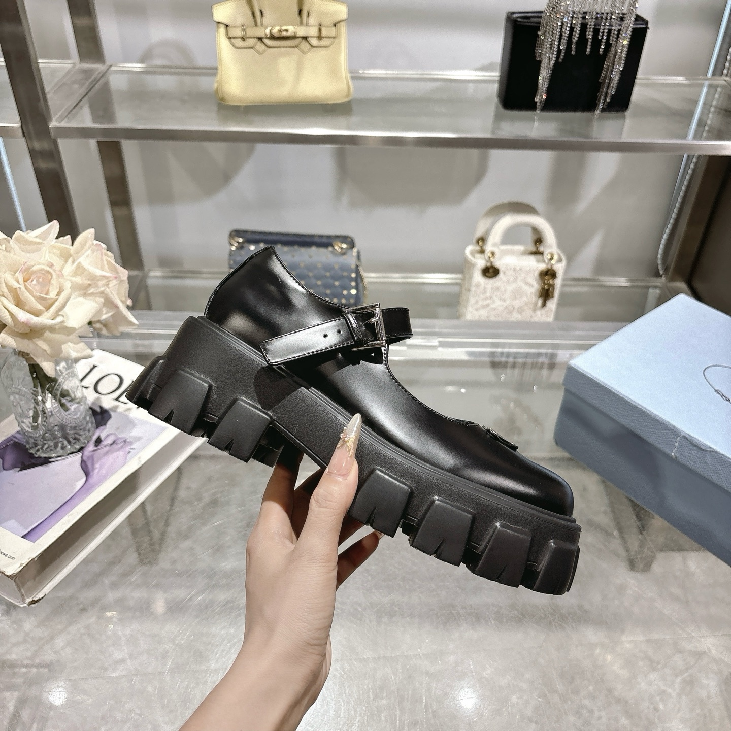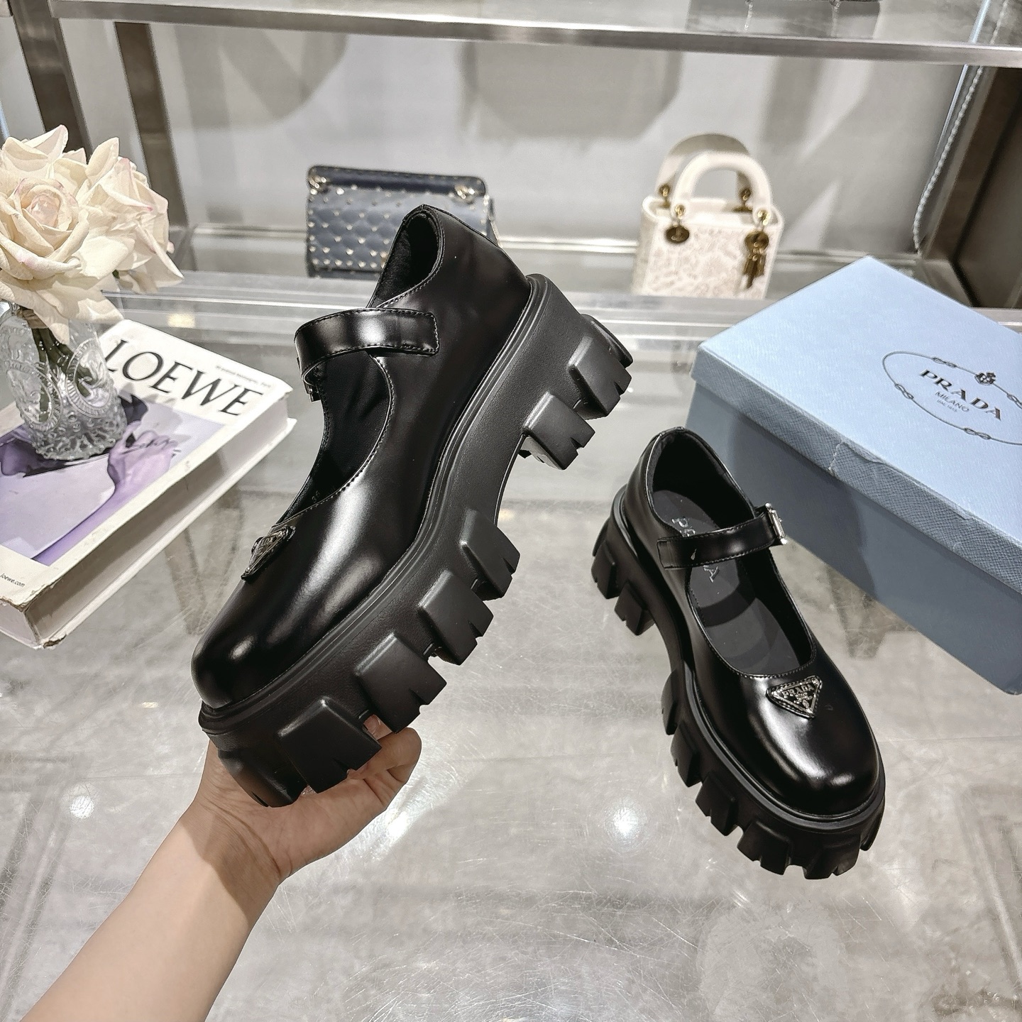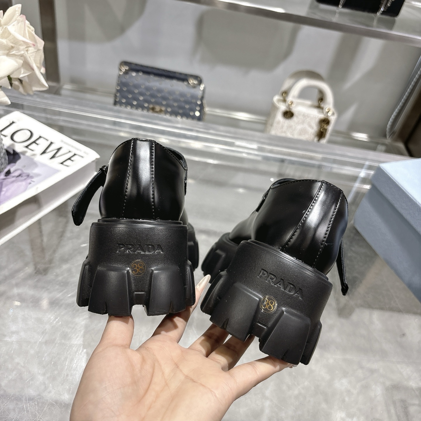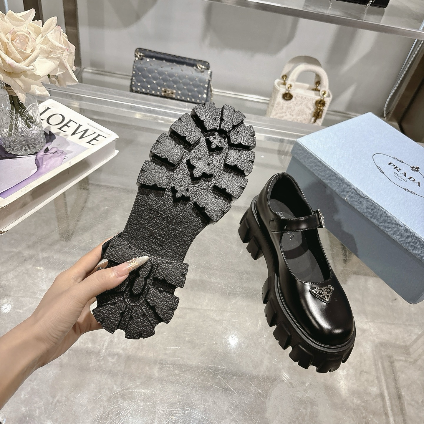 这款鞋子是AAAAA 1:1 质量 (非常棒). 使用了和原版一模一样的材料. 商标部分也保持了和普拉达/Prada一样. 图片拍摄是实物鞋子拍摄, 您所收到的实物保证和我们图片一模一样.