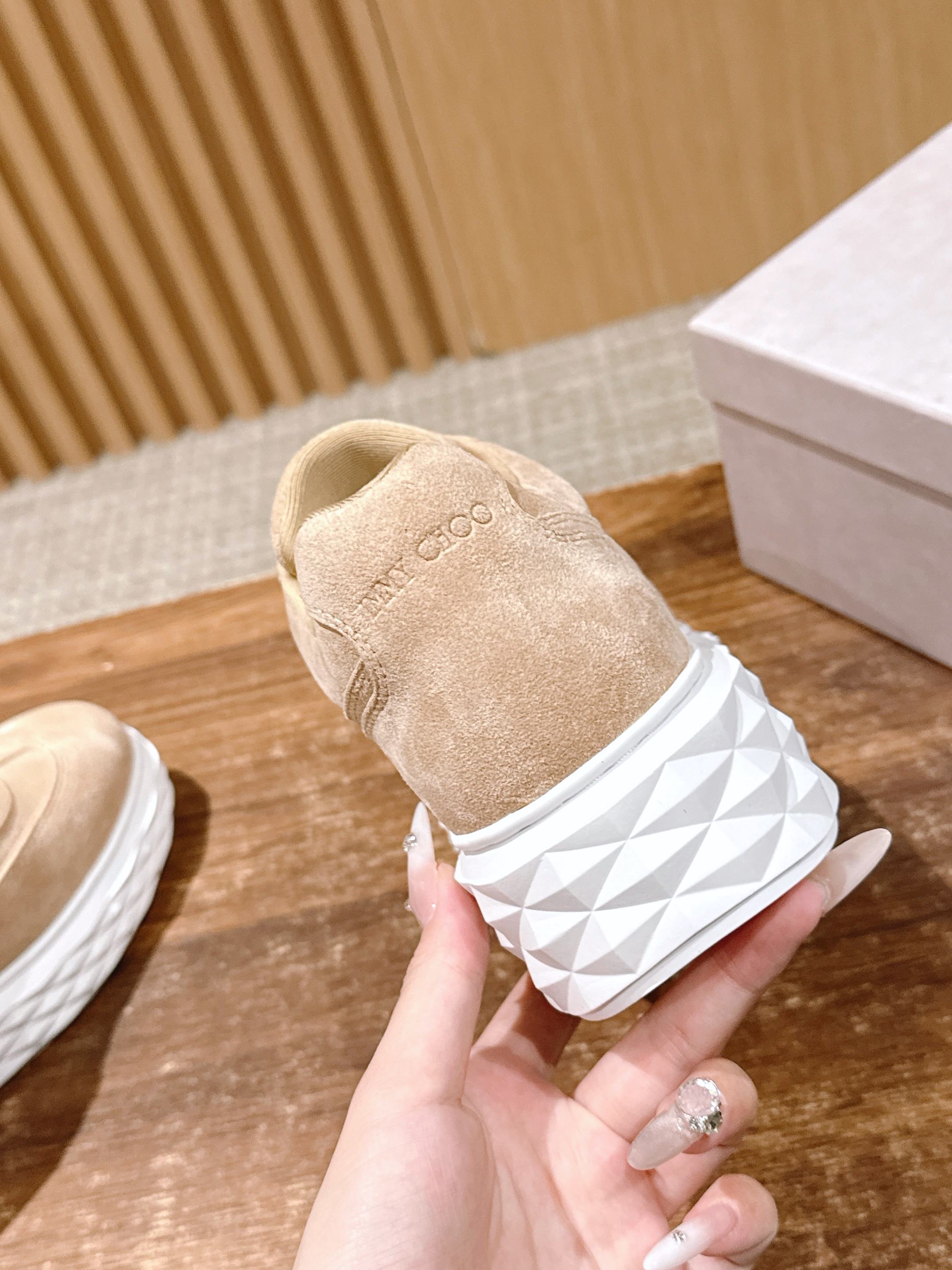 这款鞋子是AAAAA 1:1 质量 (非常棒). 使用了和原版一模一样的材料. 商标部分也保持了和吉米乔/JIMMY CHOO一样. 图片拍摄是实物鞋子拍摄, 您所收到的实物保证和我们图片一模一样.