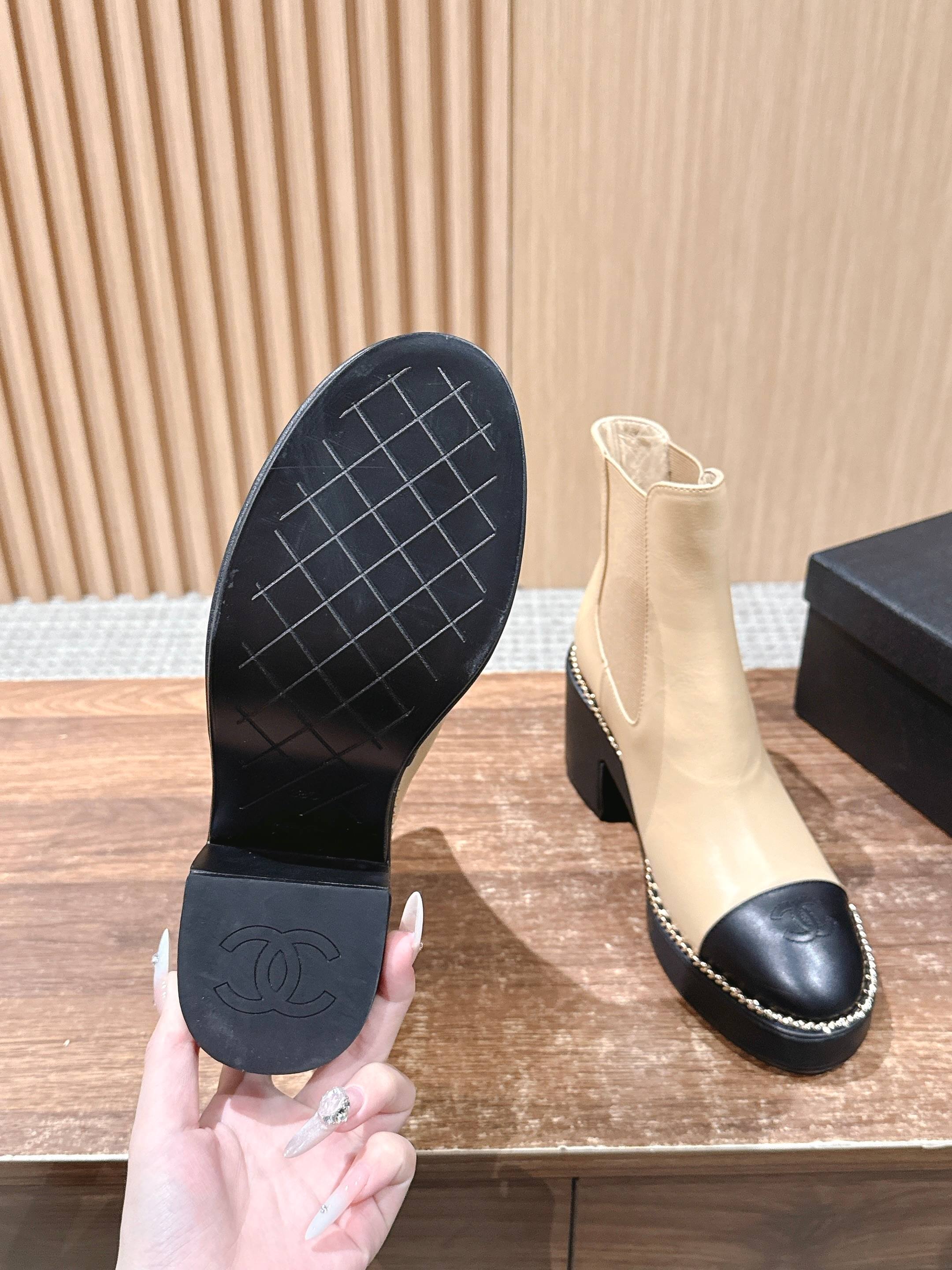 这款鞋子是AAAAA 1:1 质量 (非常棒). 使用了和原版一模一样的材料. 商标部分也保持了和香奈儿/Chanel一样. 图片拍摄是实物鞋子拍摄, 您所收到的实物保证和我们图片一模一样.