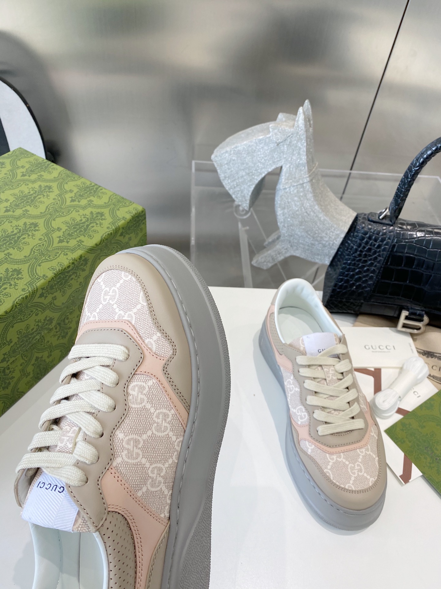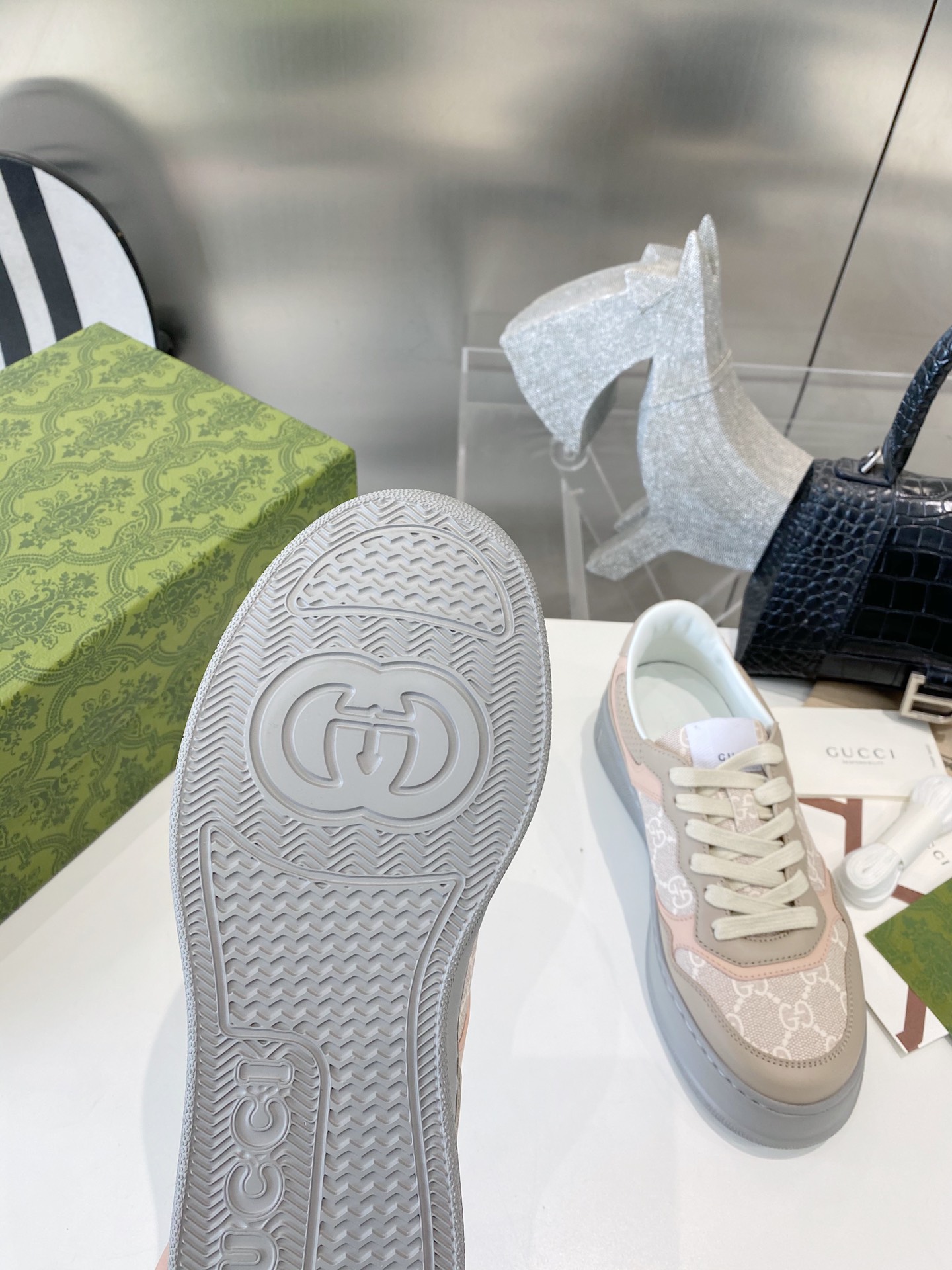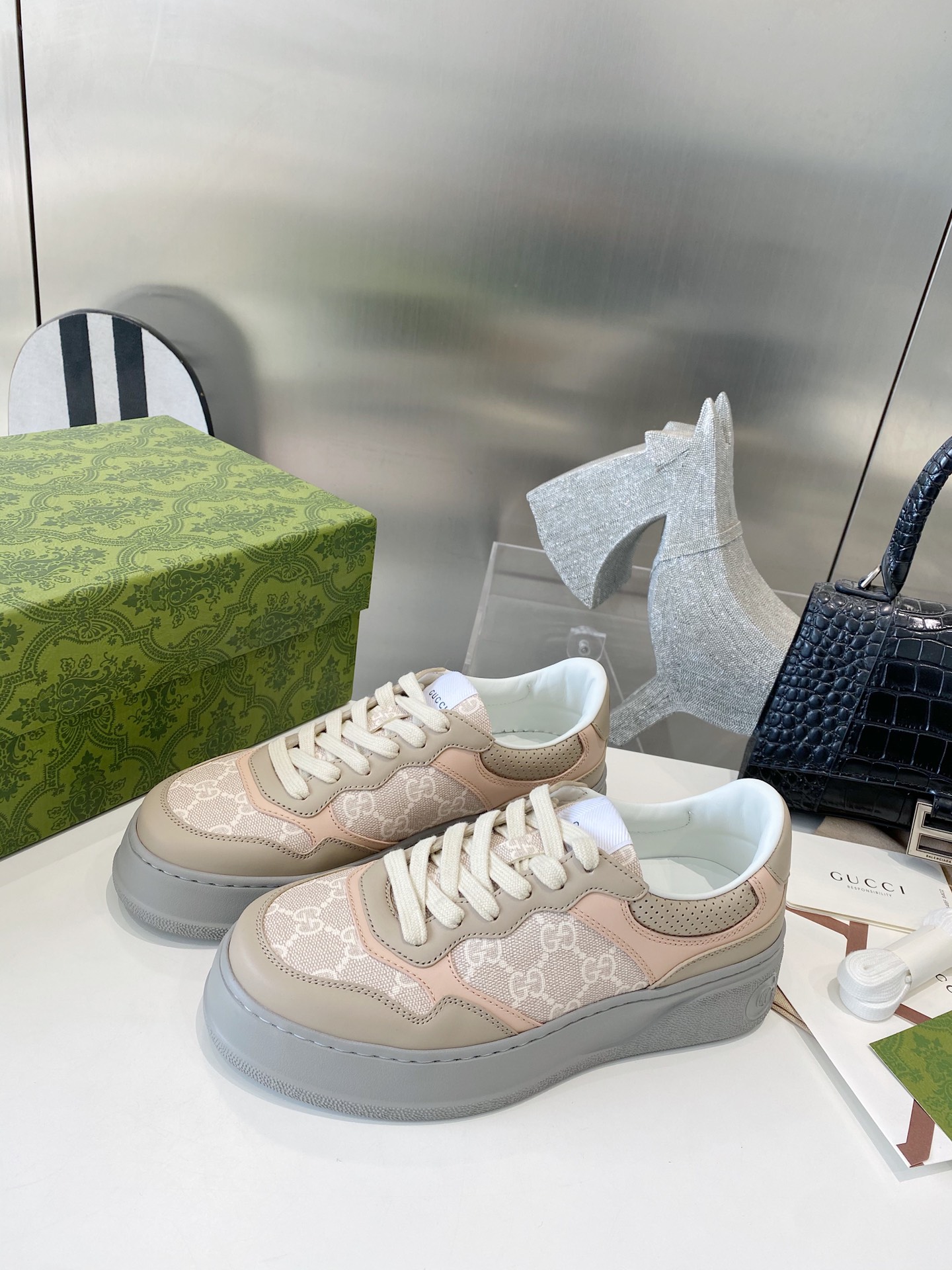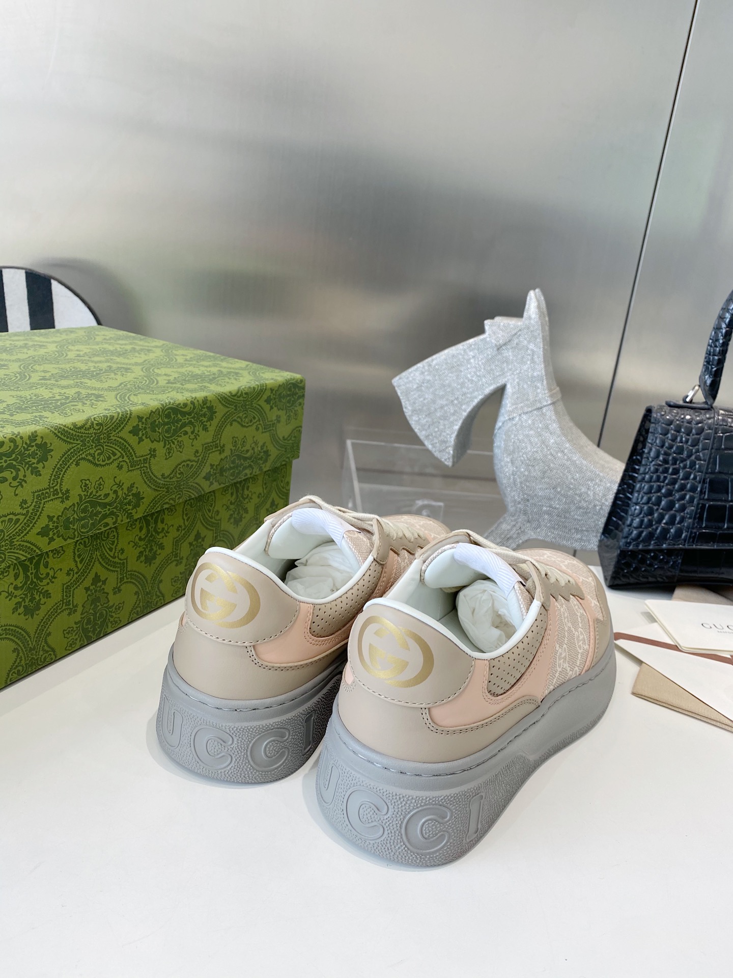这款鞋子是AAAAA 1:1 质量 (非常棒). 使用了和原版一模一样的材料. 商标部分也保持了和古奇/Gucci一样. 图片拍摄是实物鞋子拍摄, 您所收到的实物保证和我们图片一模一样.