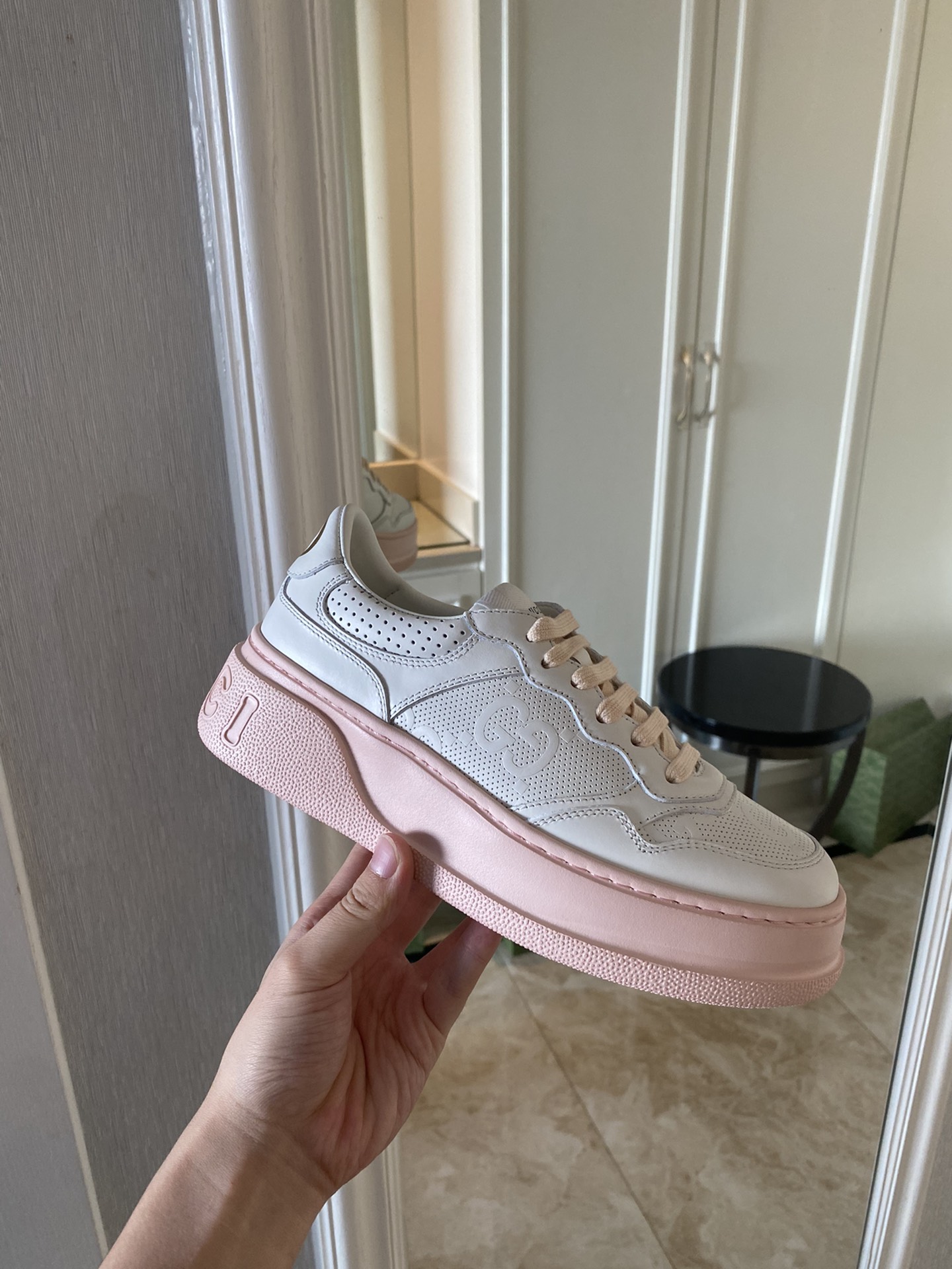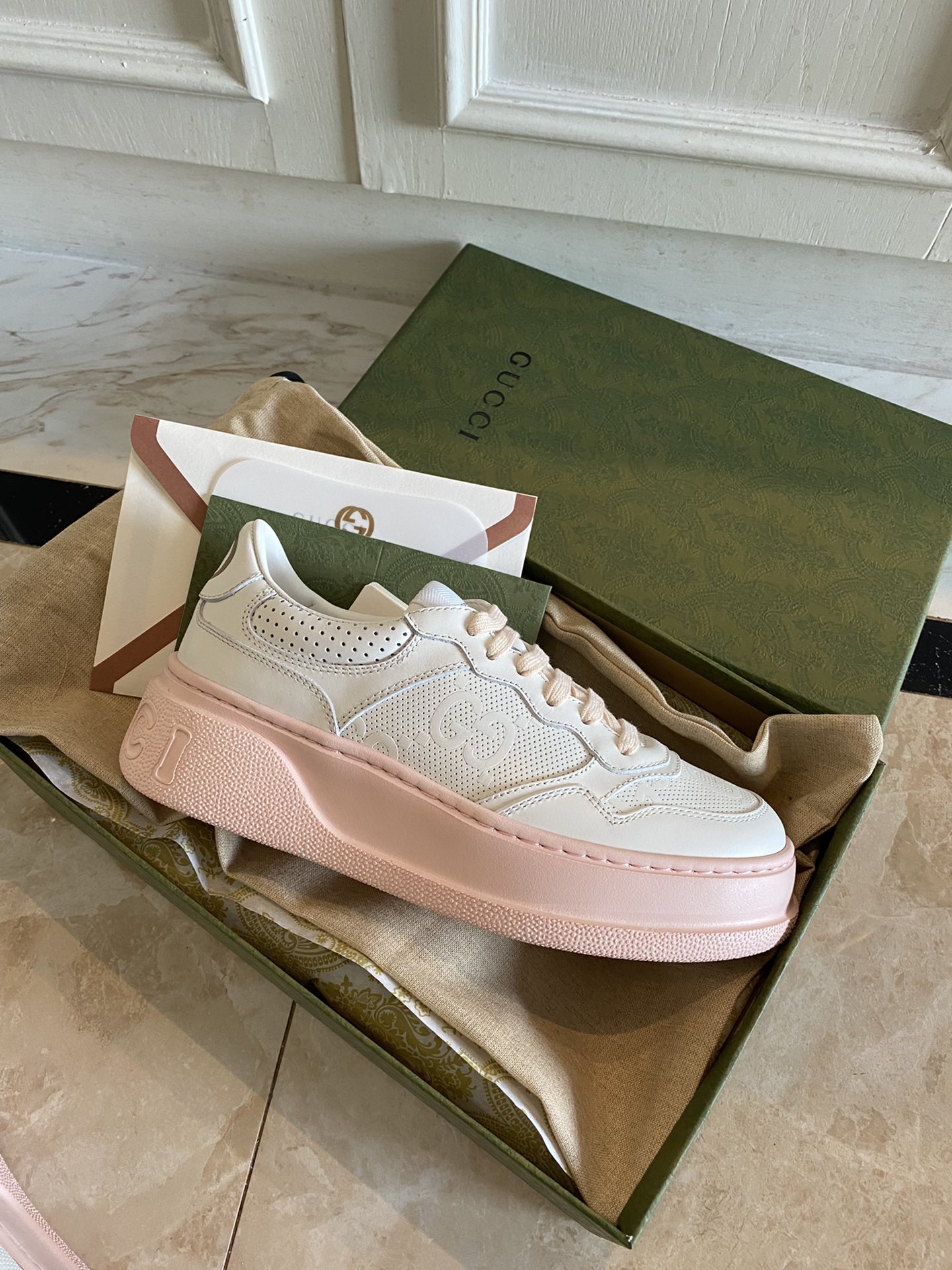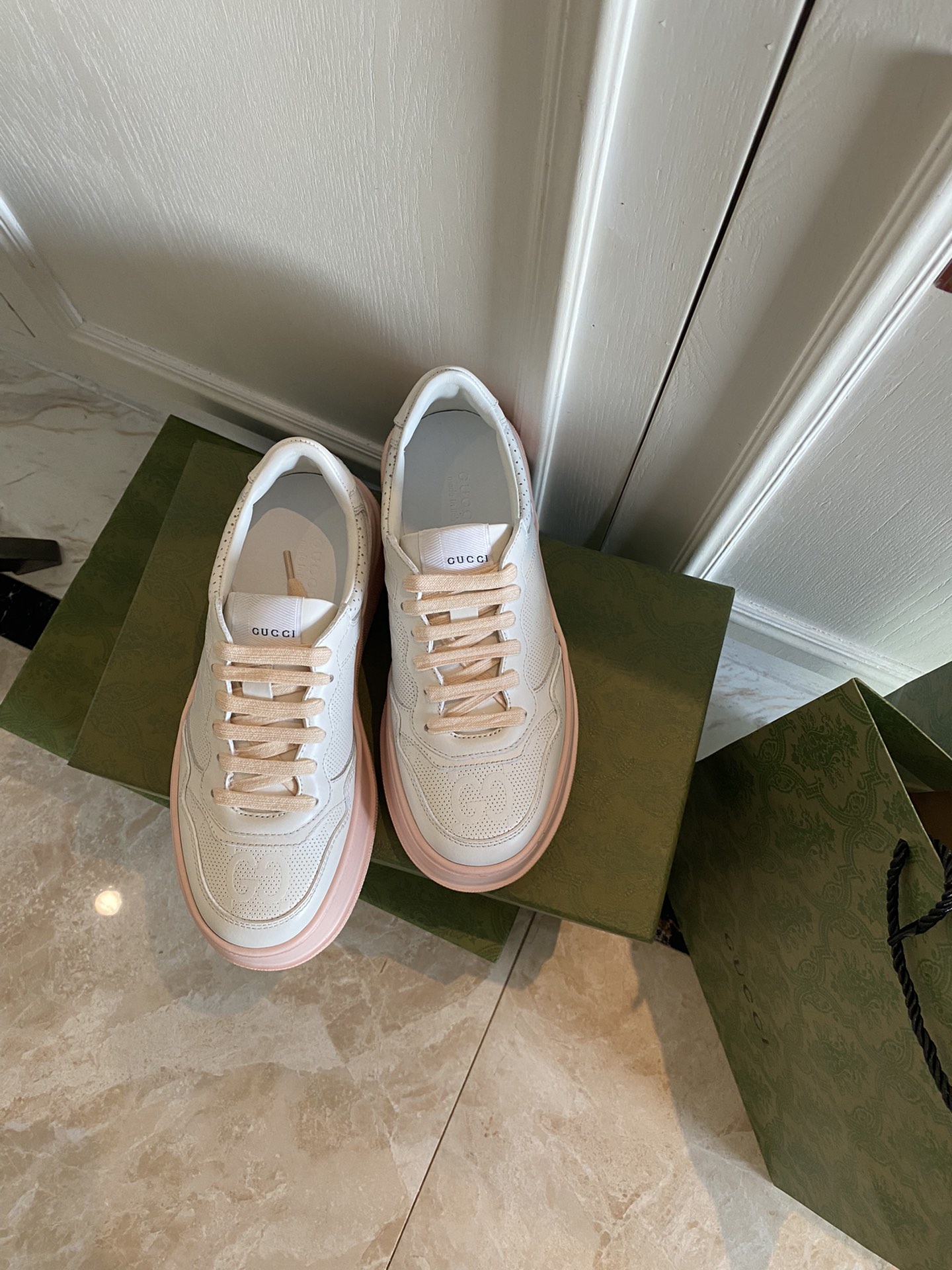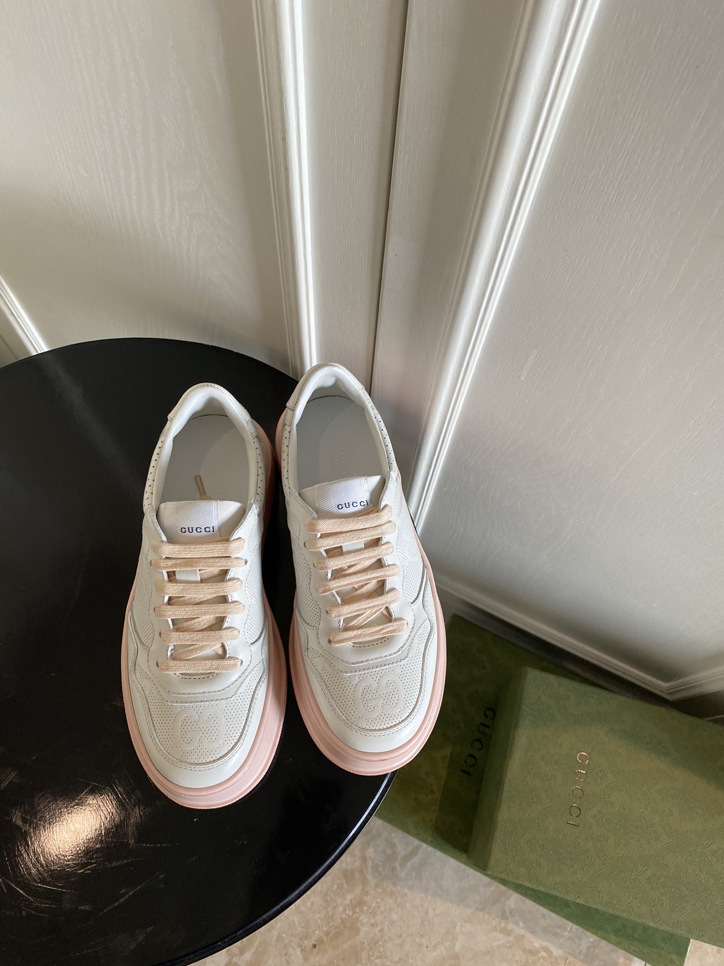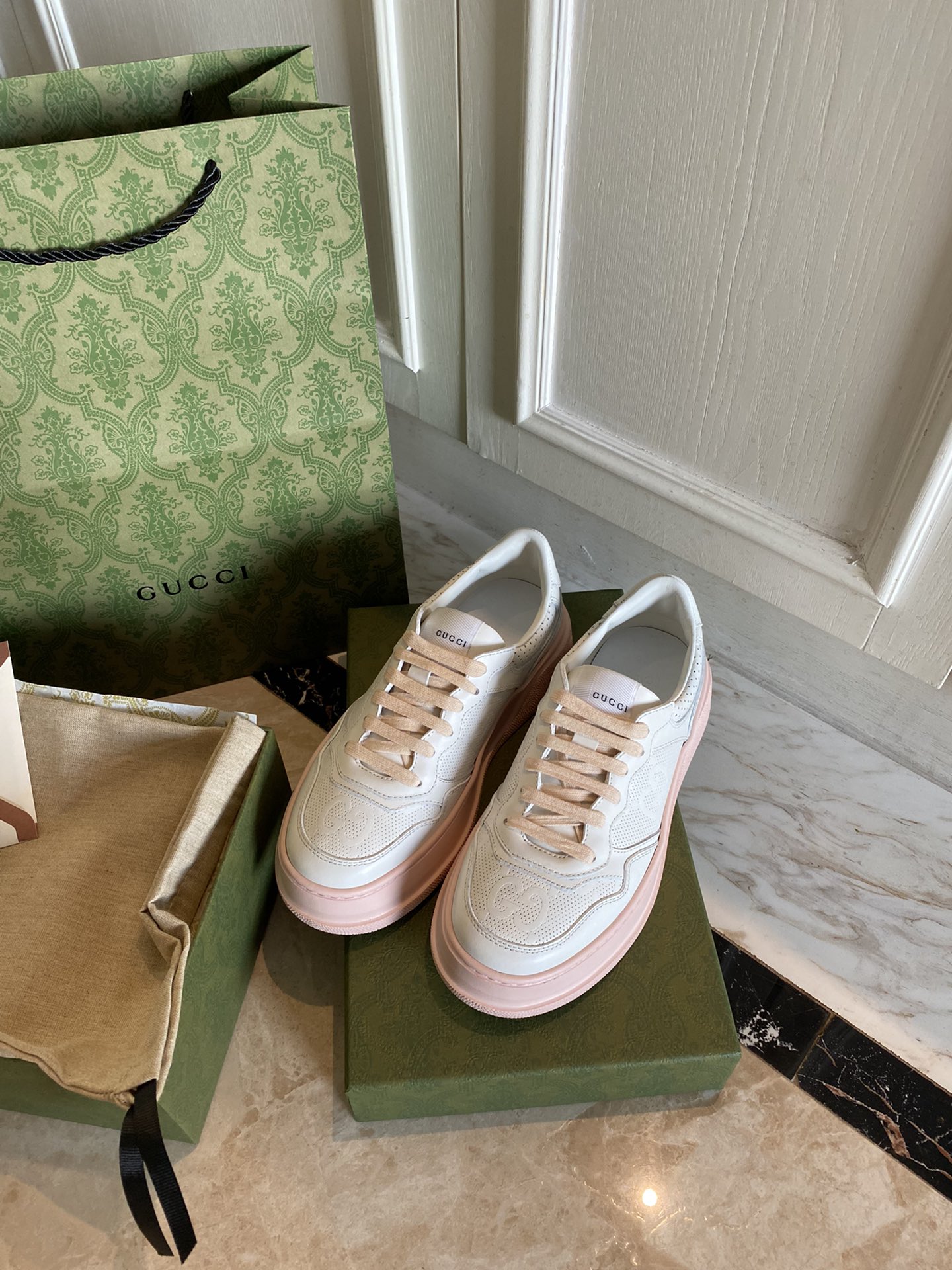 这款鞋子是AAAAA 1:1 质量 (非常棒). 使用了和原版一模一样的材料. 商标部分也保持了和古奇/Gucci一样. 图片拍摄是实物鞋子拍摄, 您所收到的实物保证和我们图片一模一样.