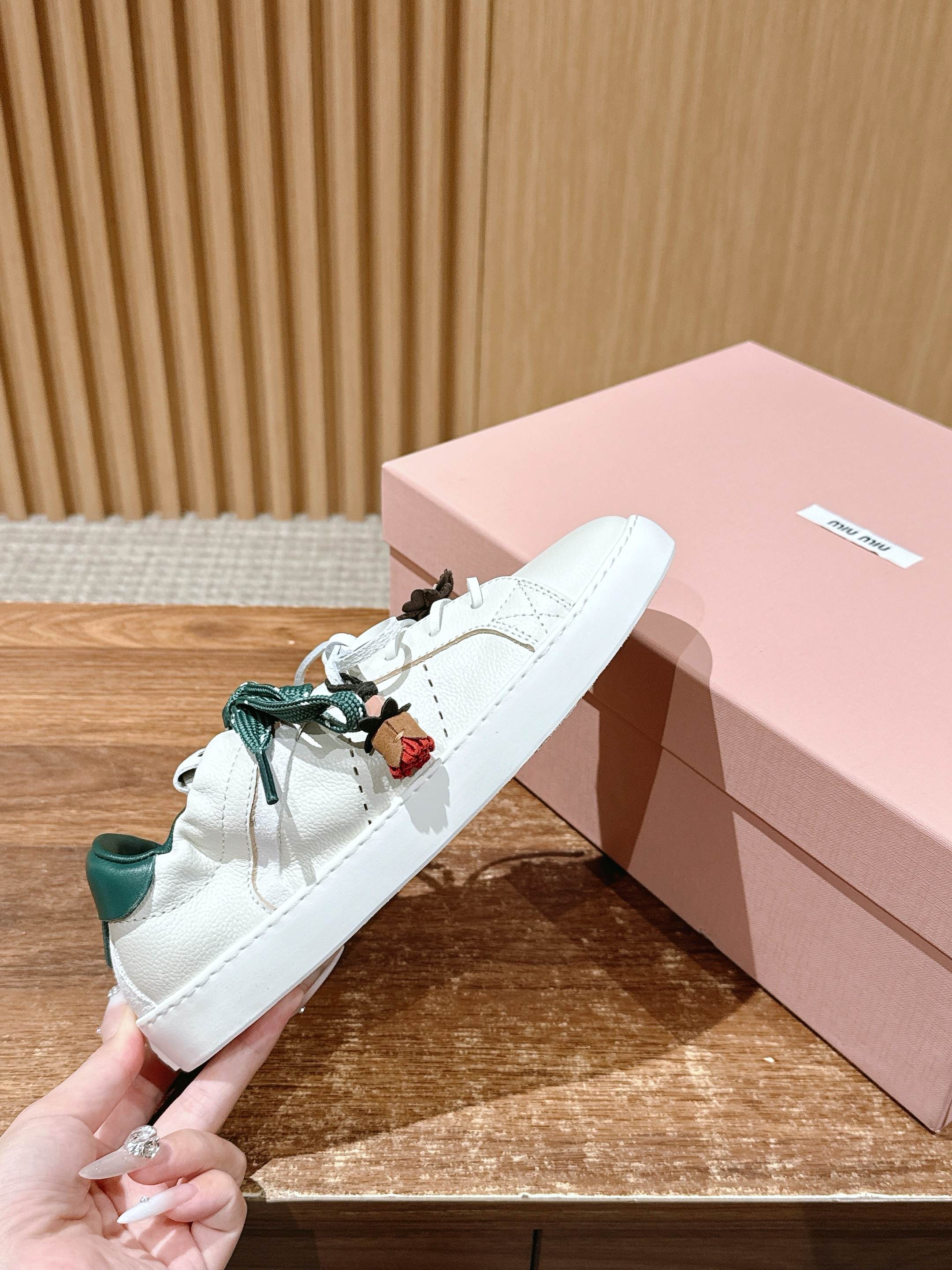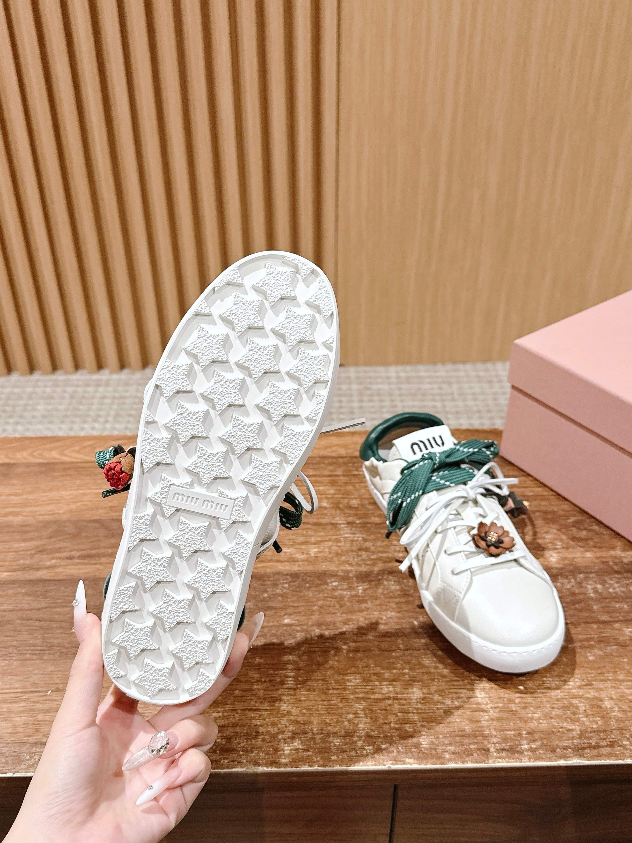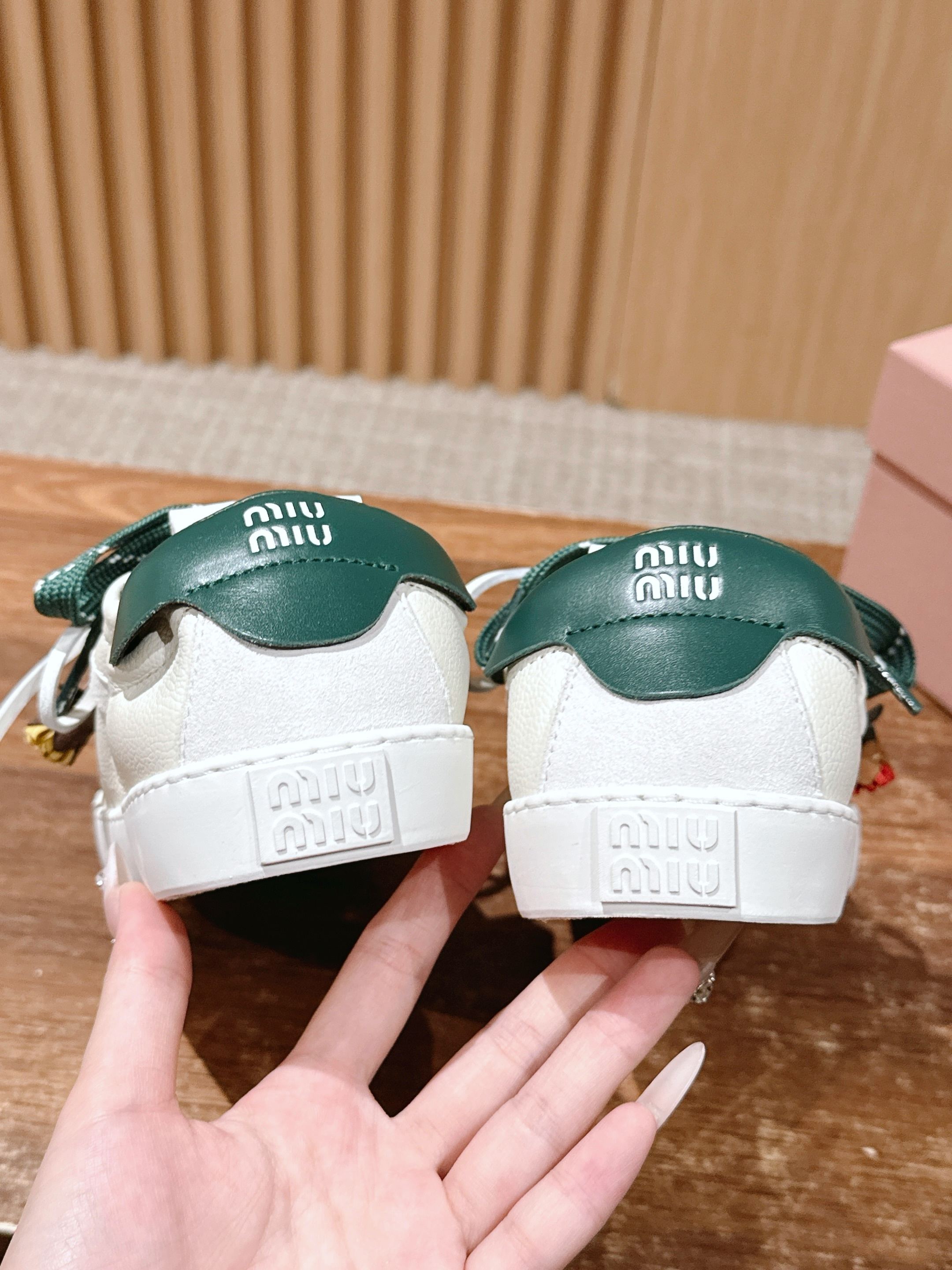 这款鞋子是AAAAA 1:1 质量 (非常棒). 使用了和原版一模一样的材料. 商标部分也保持了和缪缪/Miu Miu一样. 图片拍摄是实物鞋子拍摄, 您所收到的实物保证和我们图片一模一样.