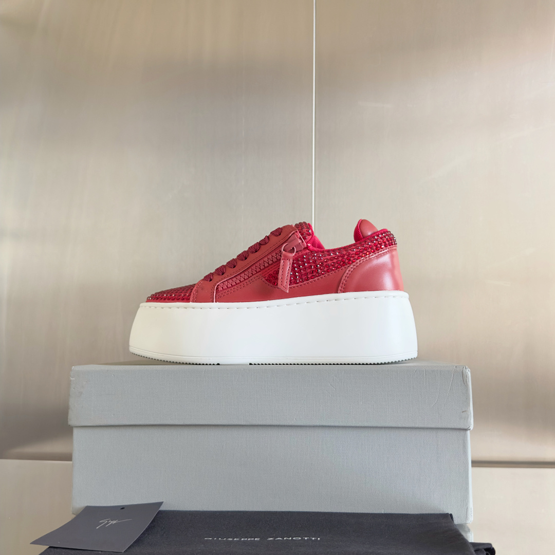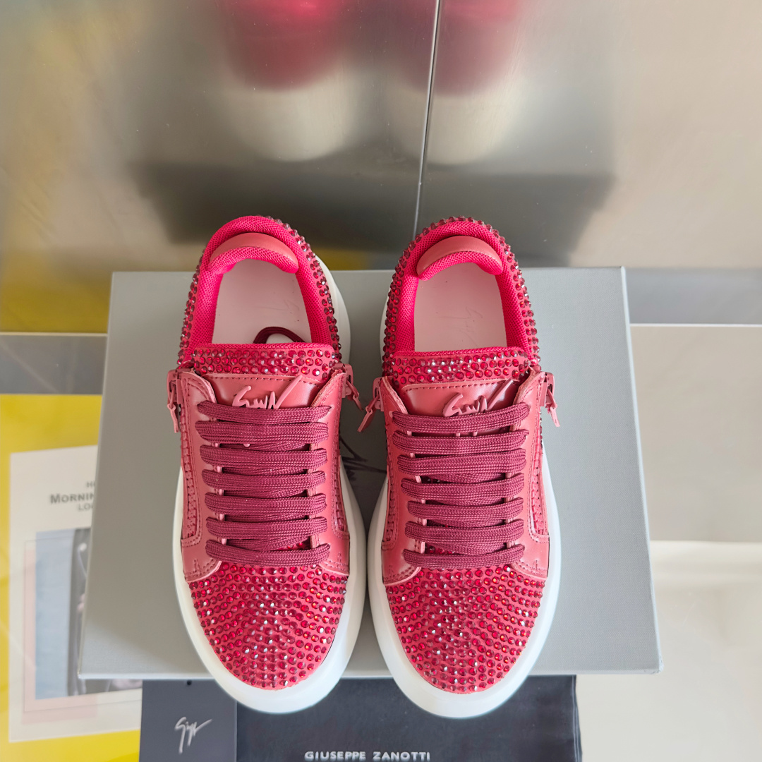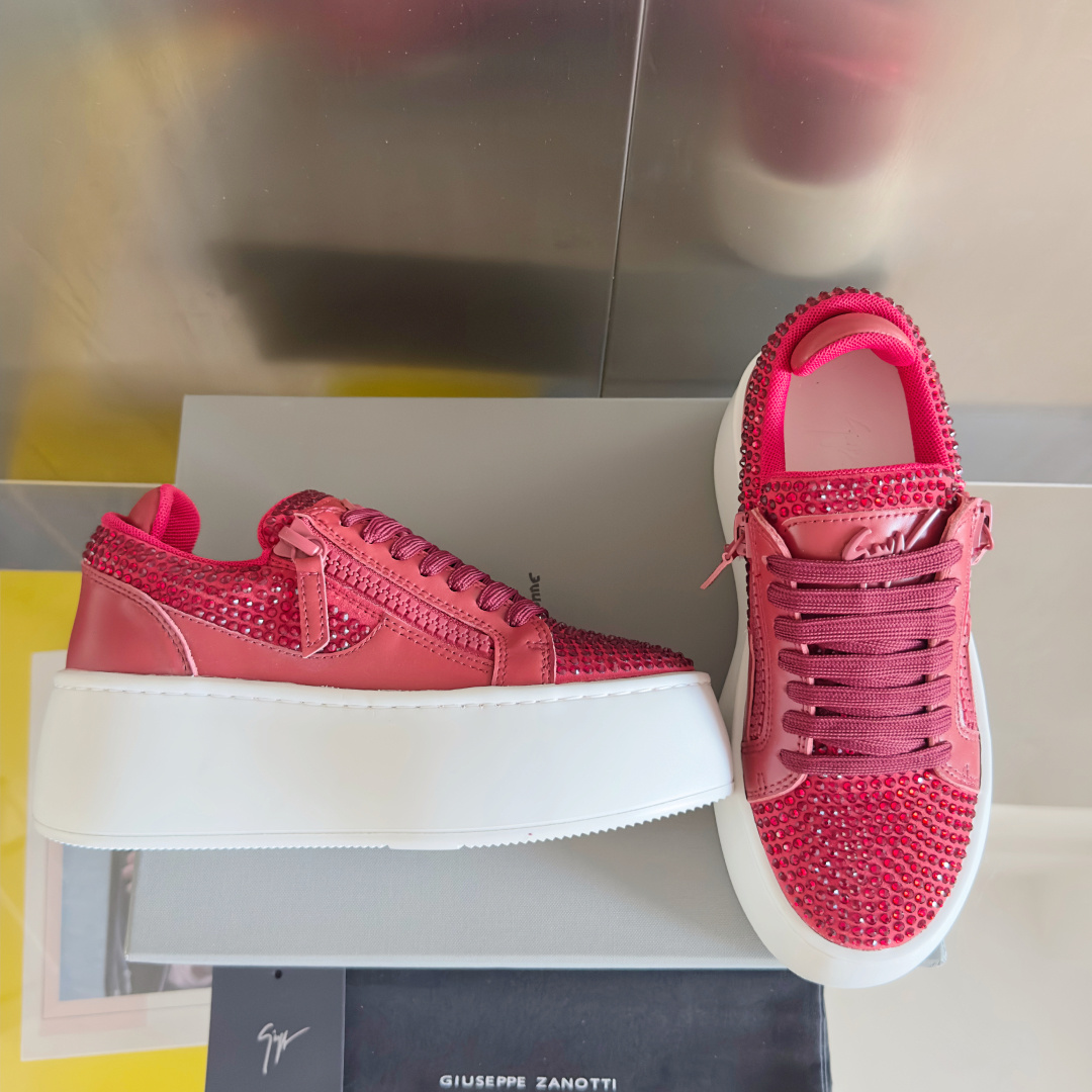 这款鞋子是AAAAA 1:1 质量 (非常棒). 使用了和原版一模一样的材料. 商标部分也保持了和朱塞佩·扎诺蒂(Giuseppe Zanotti)/Giuseppe Zanotti一样. 图片拍摄是实物鞋子拍摄, 您所收到的实物保证和我们图片一模一样.