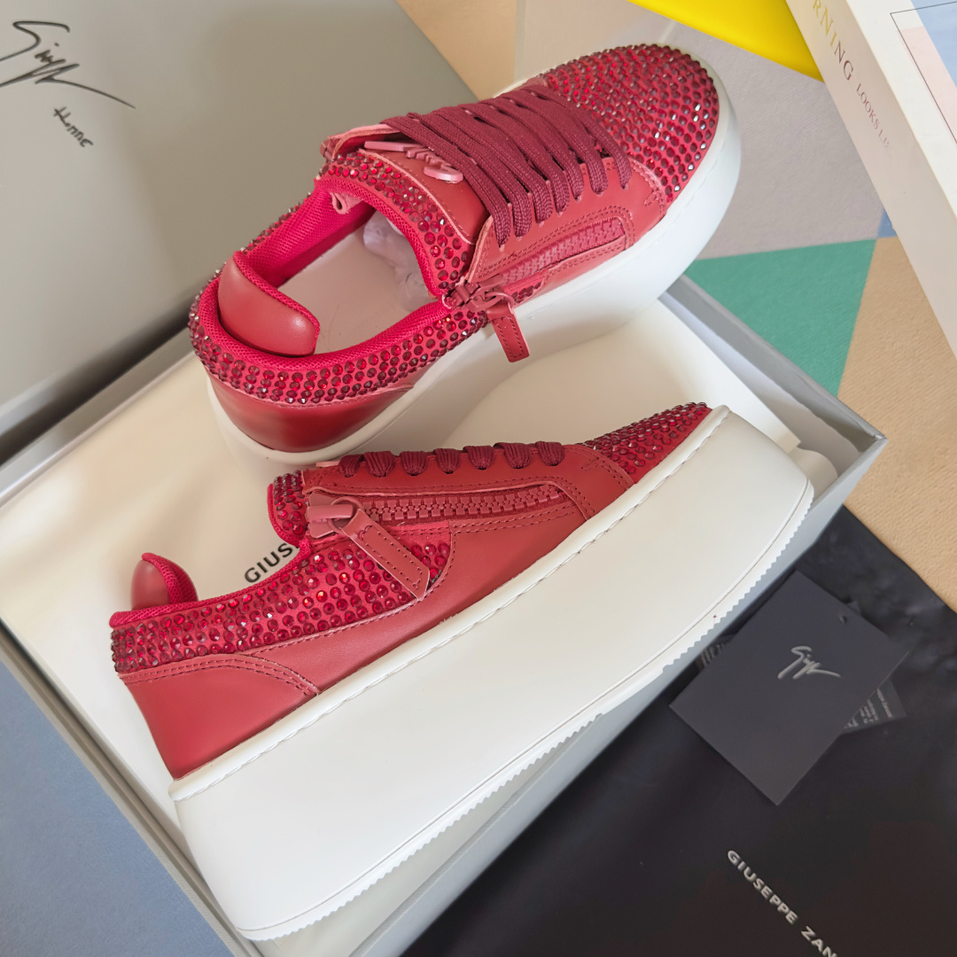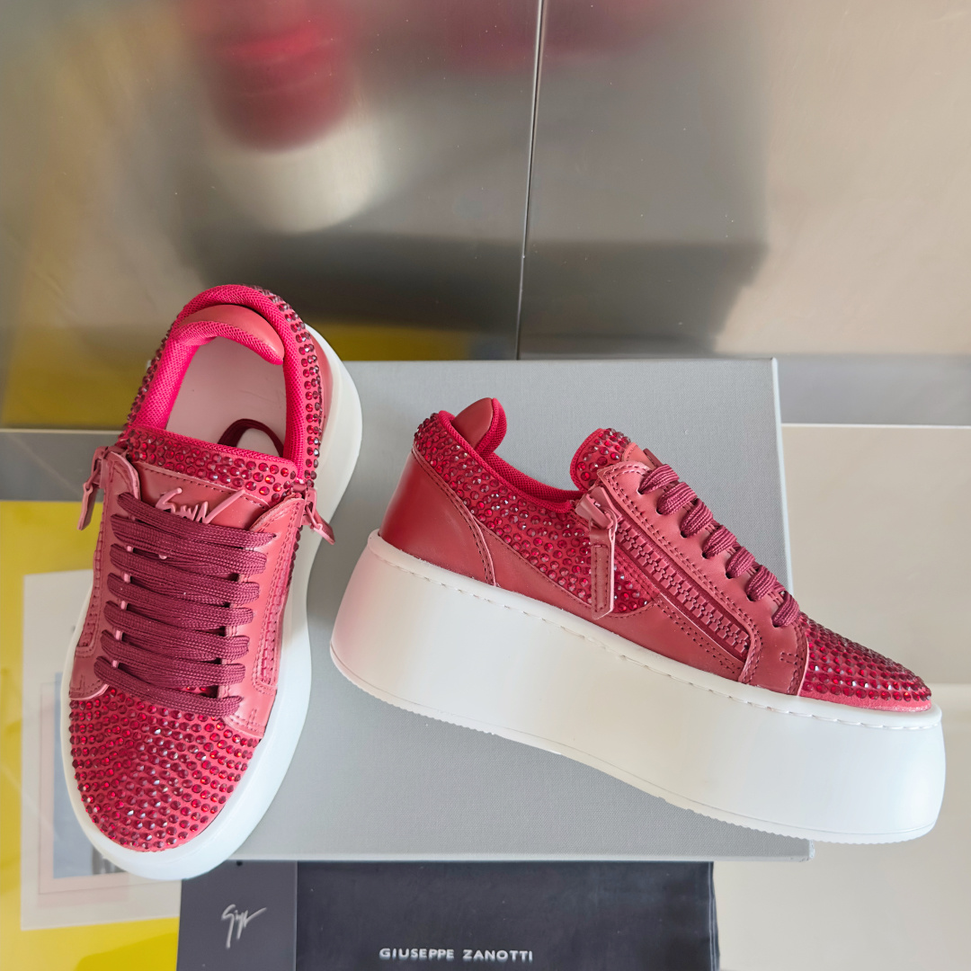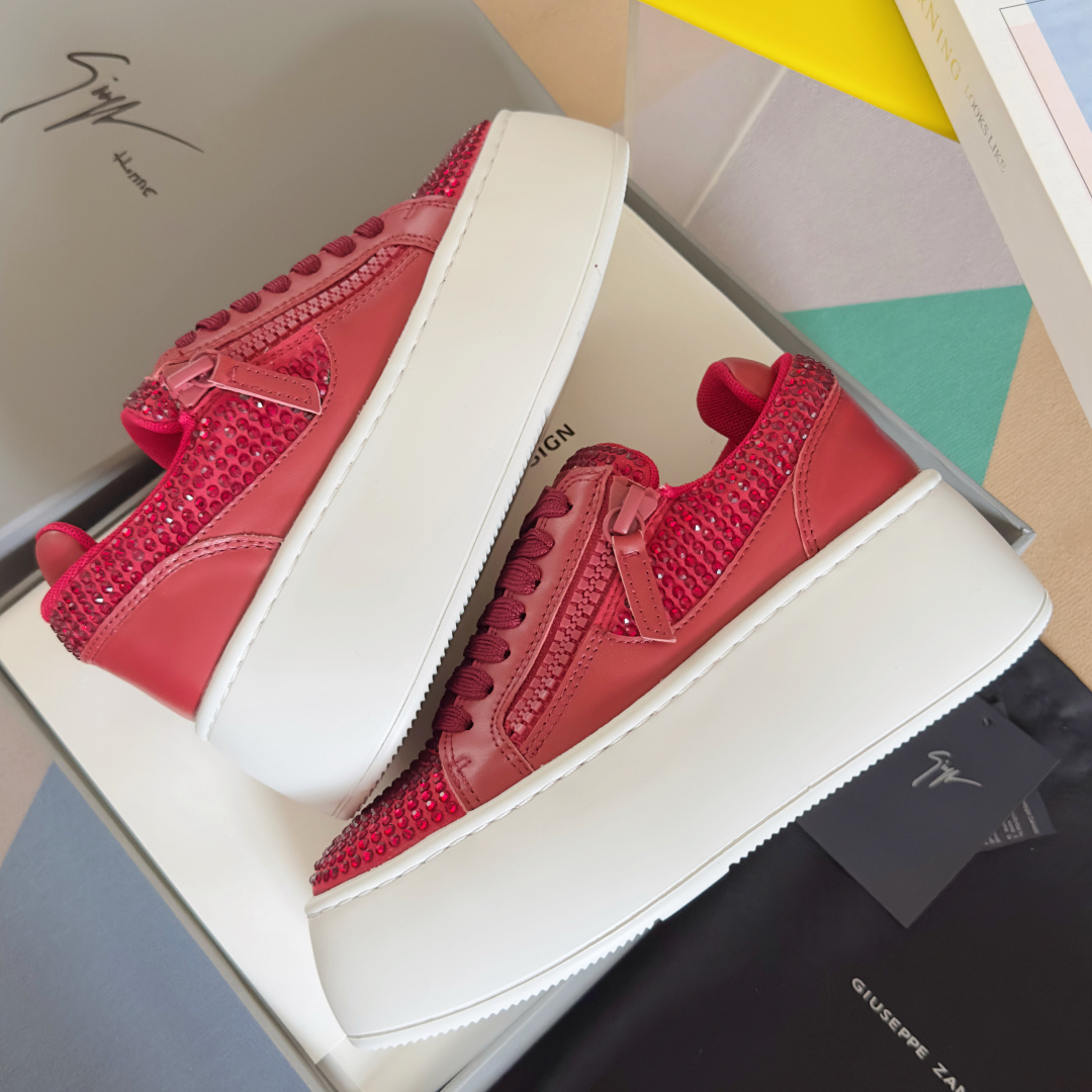 这款鞋子是AAAAA 1:1 质量 (非常棒). 使用了和原版一模一样的材料. 商标部分也保持了和朱塞佩·扎诺蒂(Giuseppe Zanotti)/Giuseppe Zanotti一样. 图片拍摄是实物鞋子拍摄, 您所收到的实物保证和我们图片一模一样.