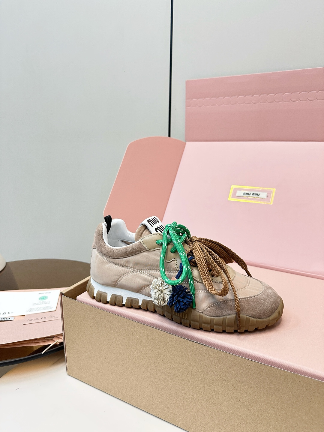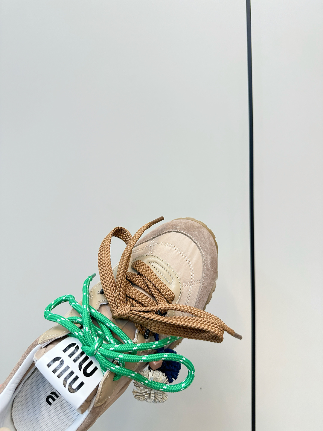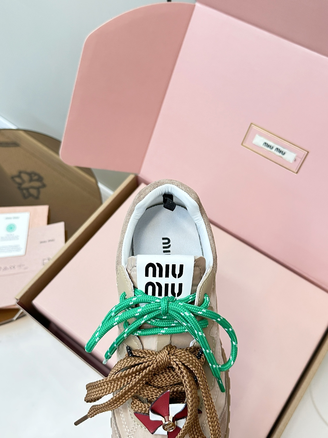 这款鞋子是AAAAA 1:1 质量 (非常棒). 使用了和原版一模一样的材料. 商标部分也保持了和缪缪/Miu Miu一样. 图片拍摄是实物鞋子拍摄, 您所收到的实物保证和我们图片一模一样.