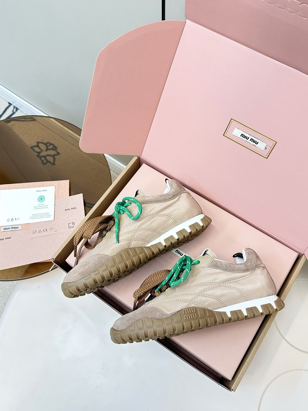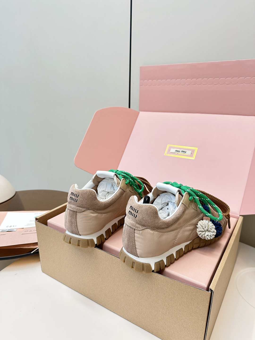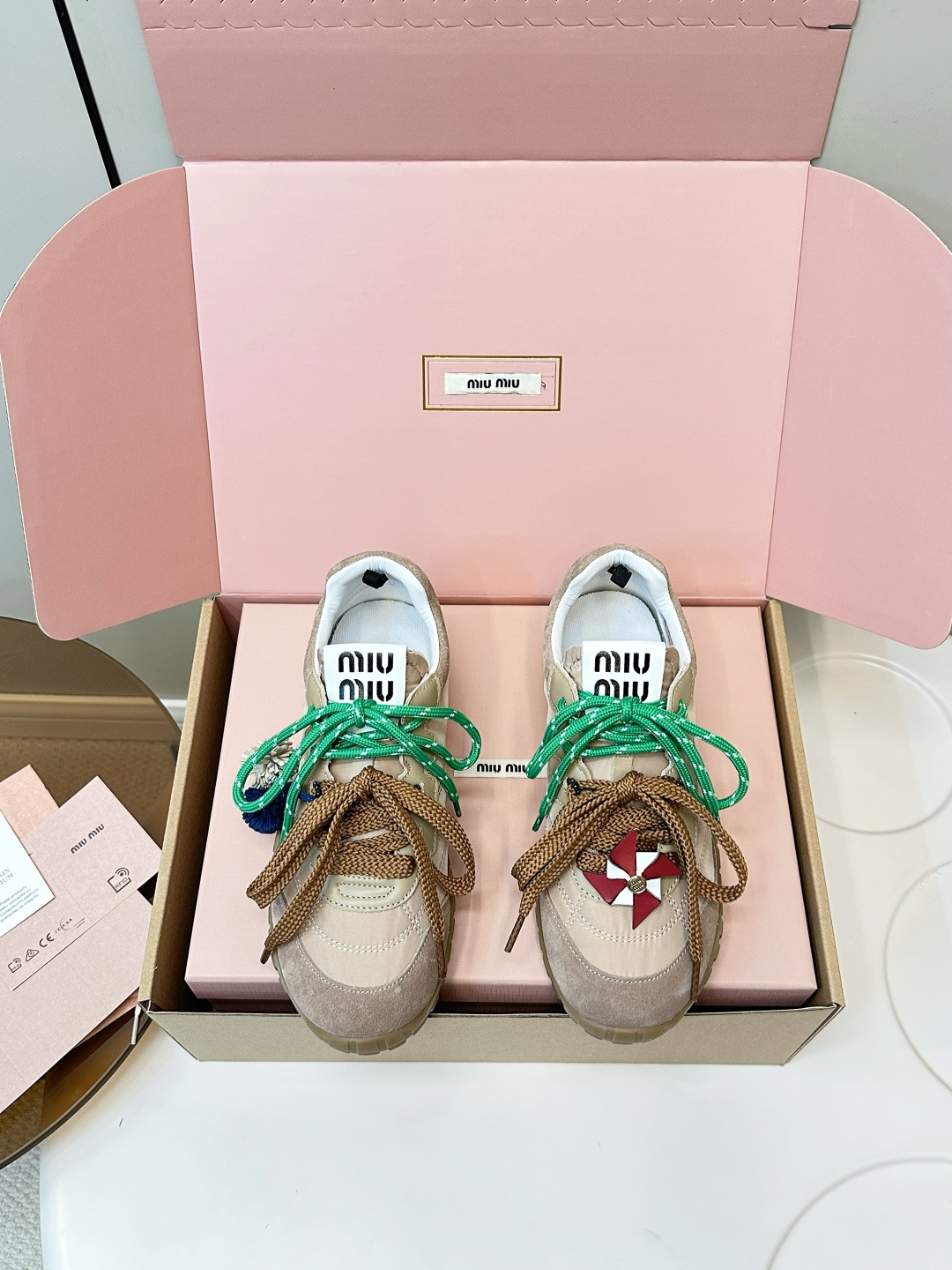 这款鞋子是AAAAA 1:1 质量 (非常棒). 使用了和原版一模一样的材料. 商标部分也保持了和缪缪/Miu Miu一样. 图片拍摄是实物鞋子拍摄, 您所收到的实物保证和我们图片一模一样.