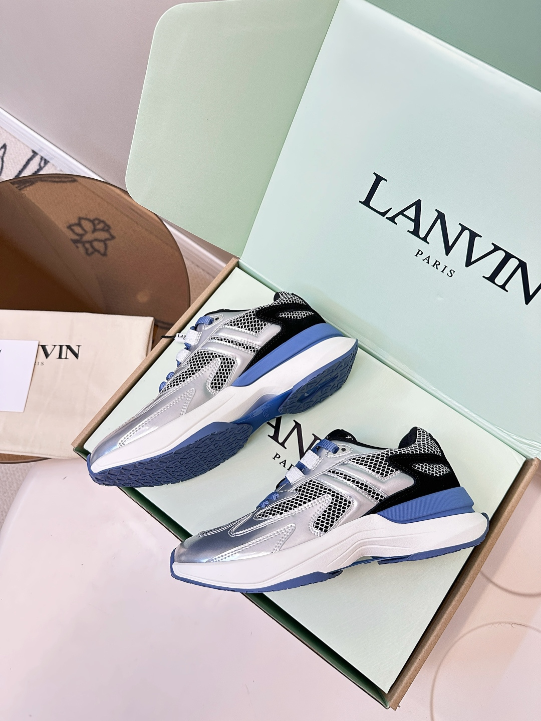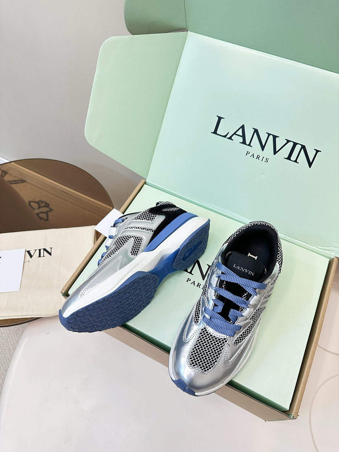 这款鞋子是AAAAA 1:1 质量 (非常棒). 使用了和原版一模一样的材料. 商标部分也保持了和Lanvin一样. 图片拍摄是实物鞋子拍摄, 您所收到的实物保证和我们图片一模一样.