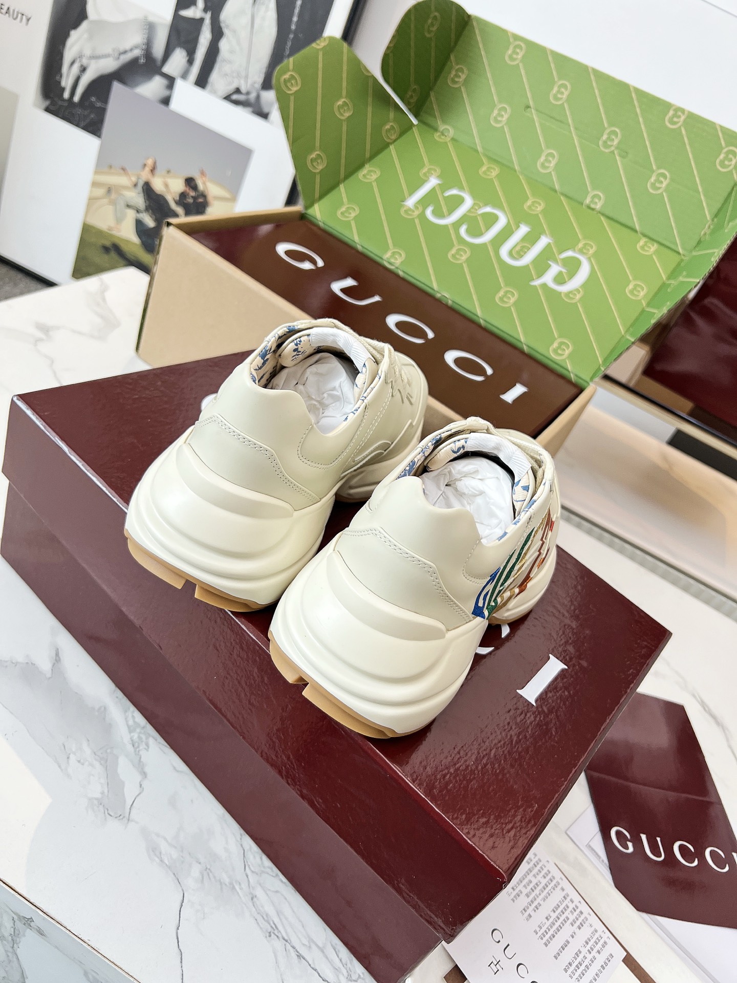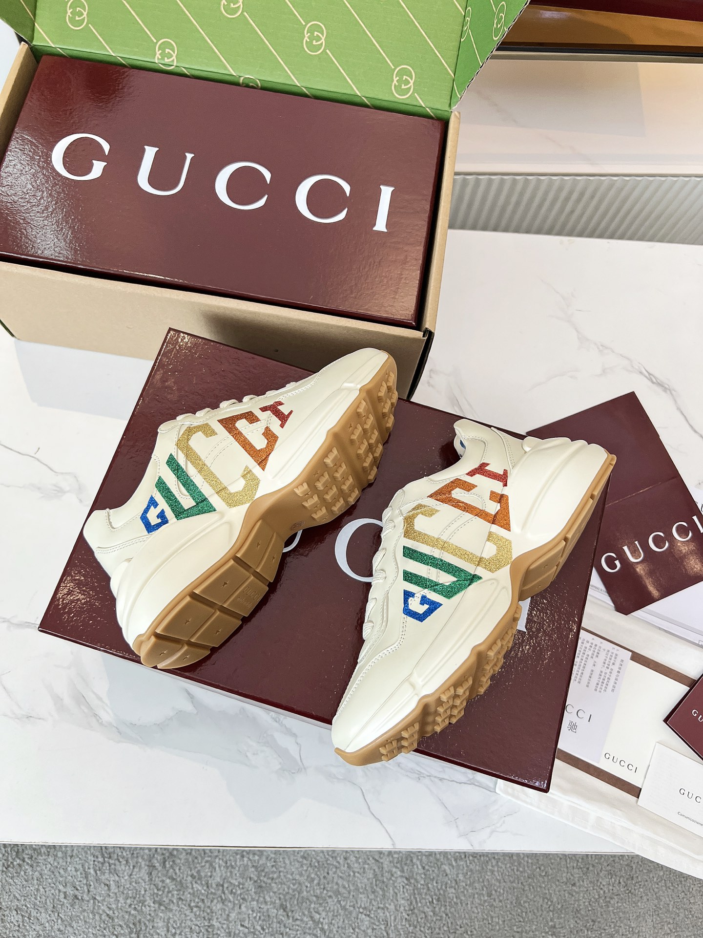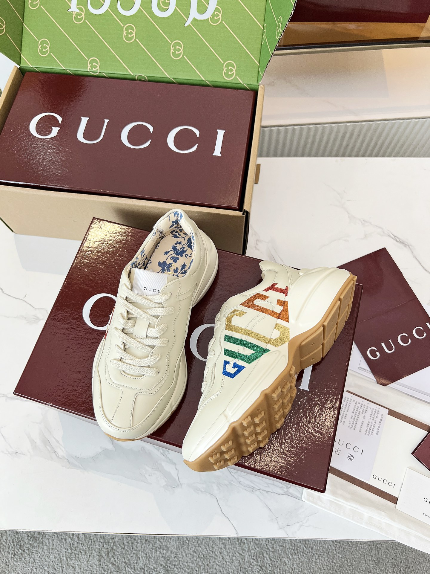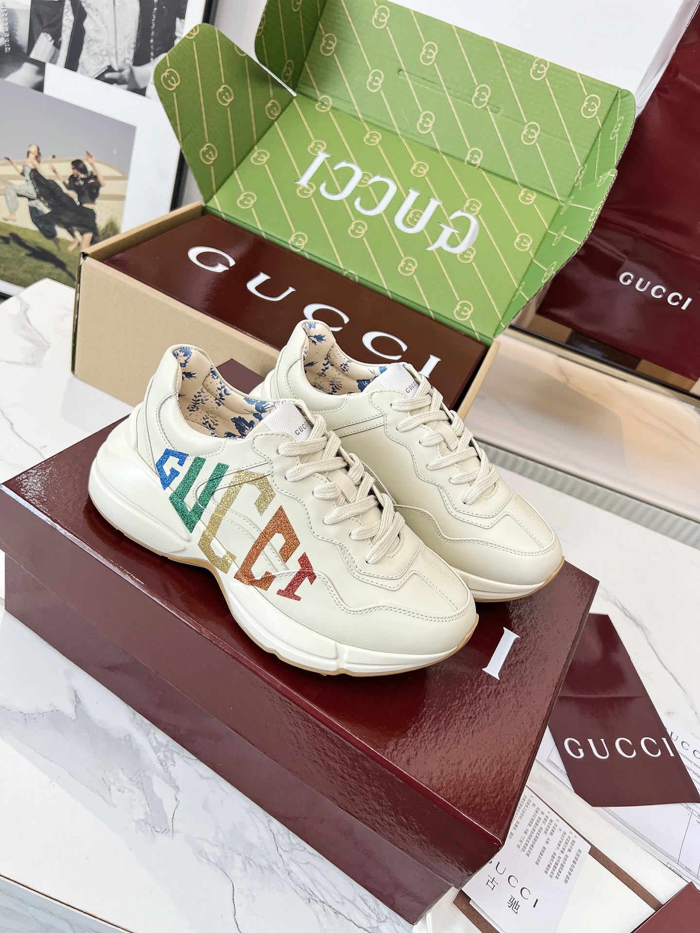 这款鞋子是AAAAA 1:1 质量 (非常棒). 使用了和原版一模一样的材料. 商标部分也保持了和古奇/Gucci一样. 图片拍摄是实物鞋子拍摄, 您所收到的实物保证和我们图片一模一样.