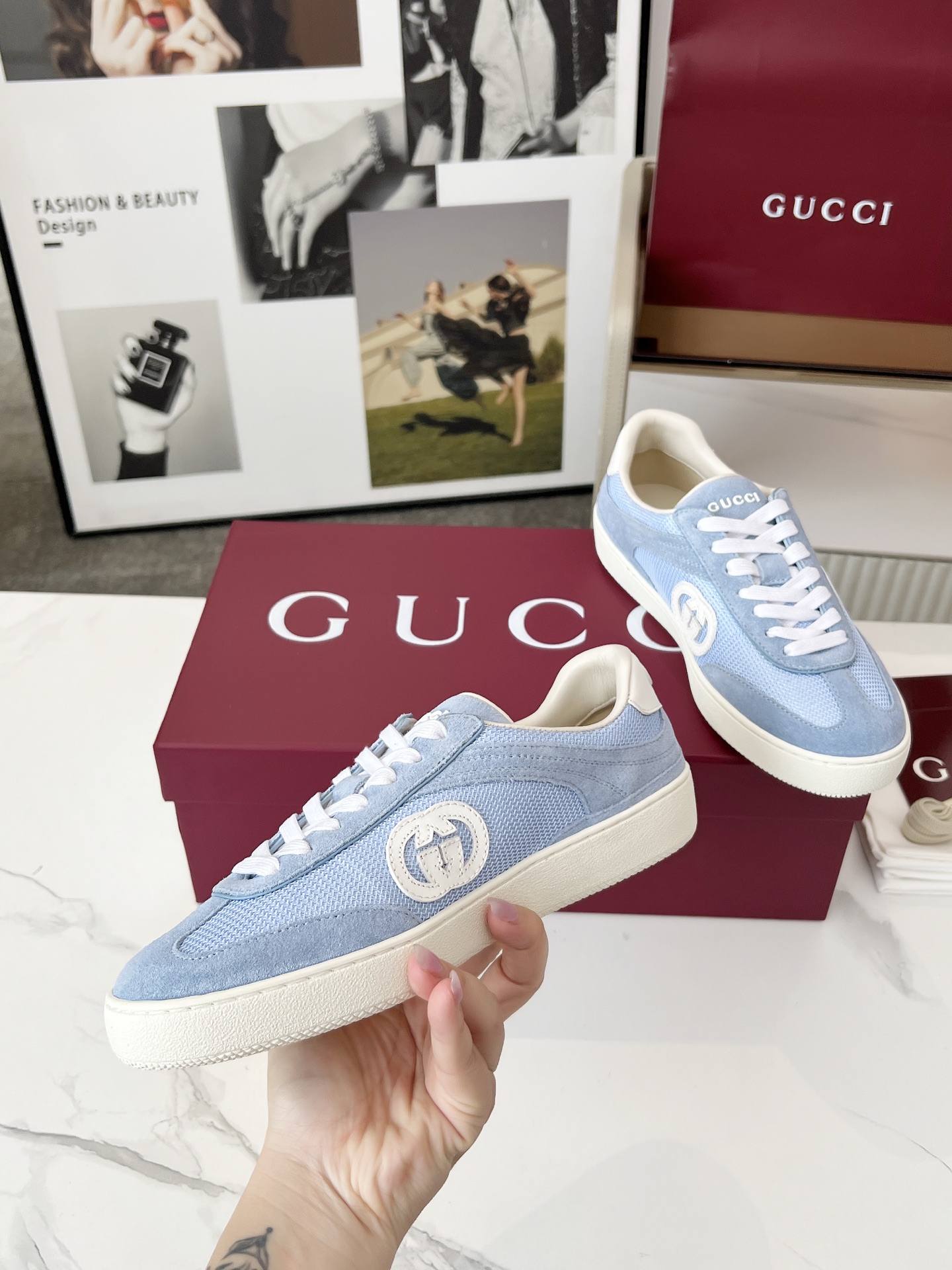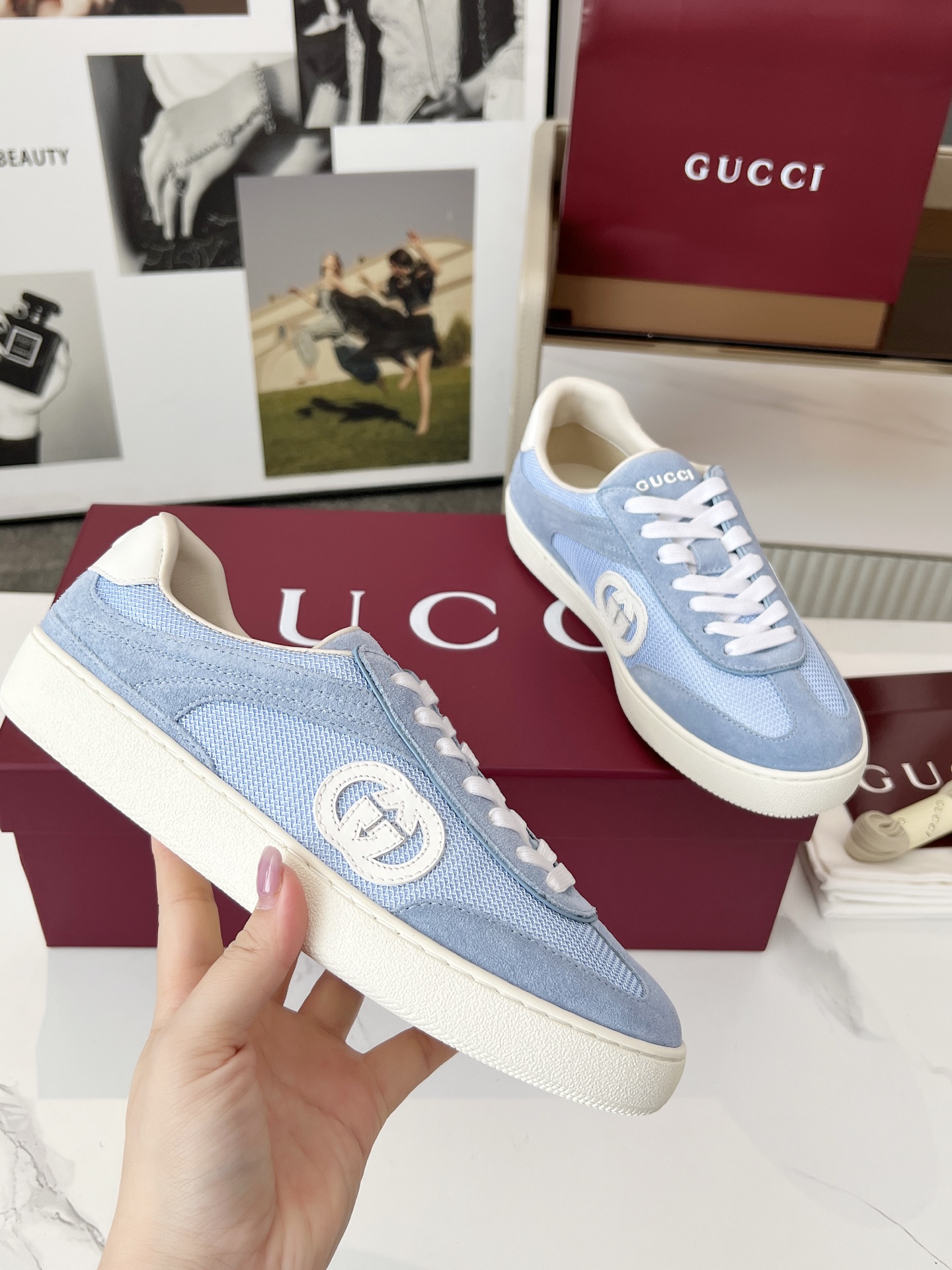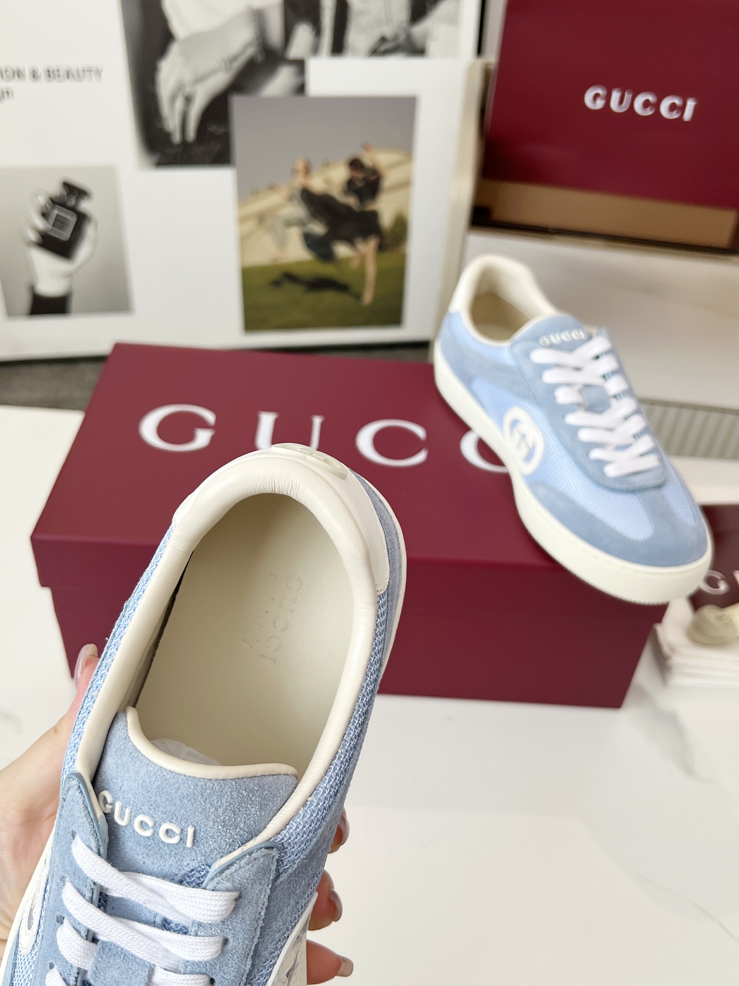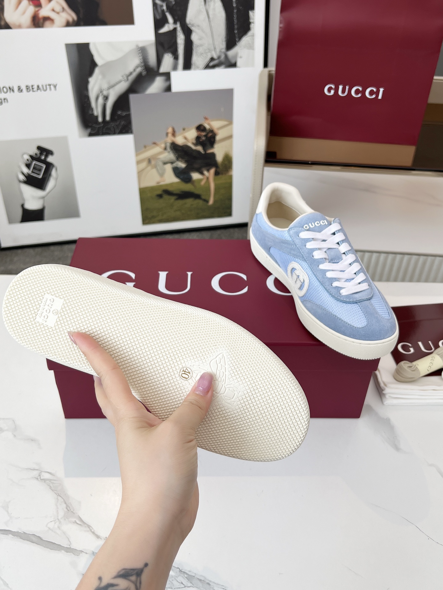 这款鞋子是AAAAA 1:1 质量 (非常棒). 使用了和原版一模一样的材料. 商标部分也保持了和古奇/Gucci一样. 图片拍摄是实物鞋子拍摄, 您所收到的实物保证和我们图片一模一样.