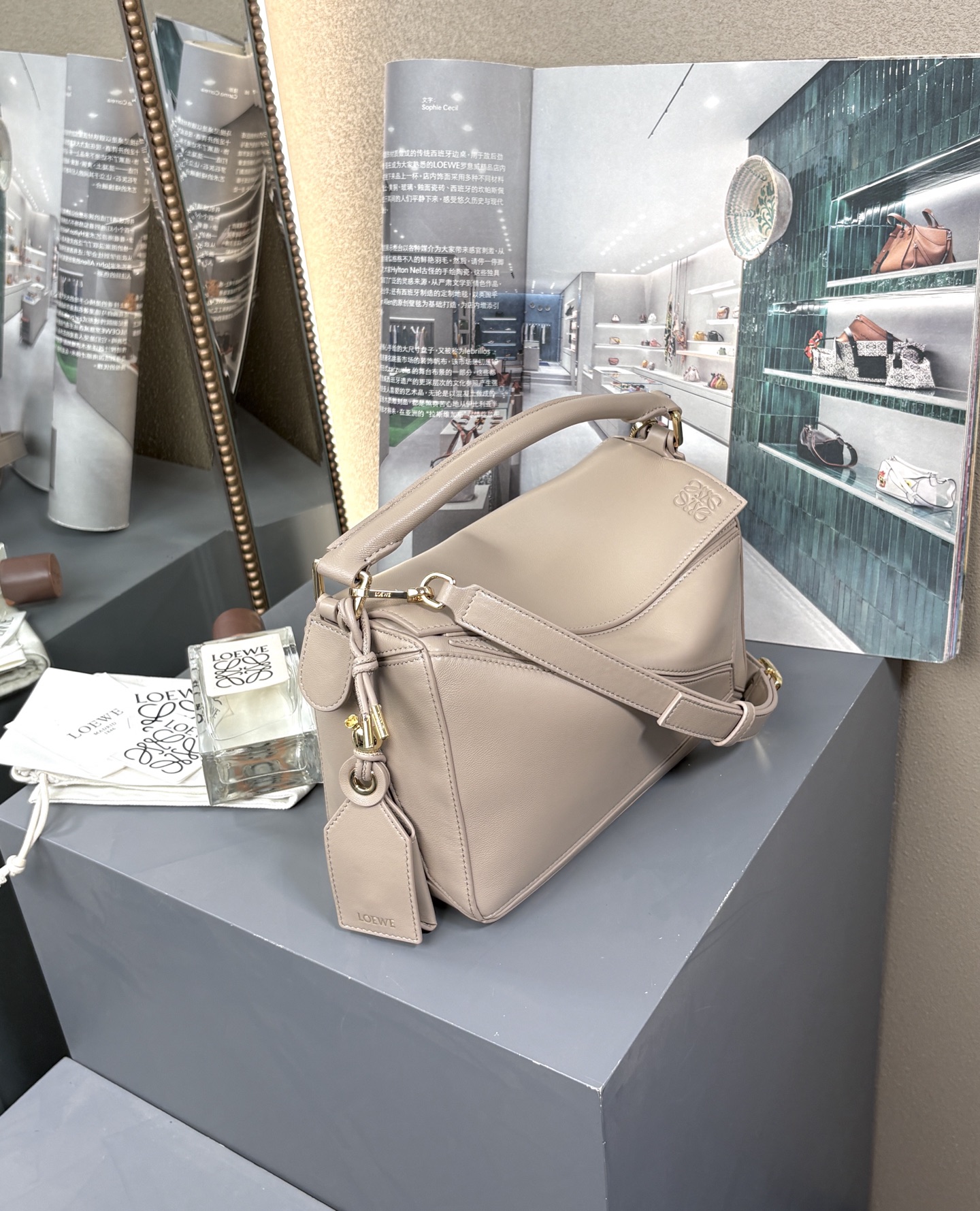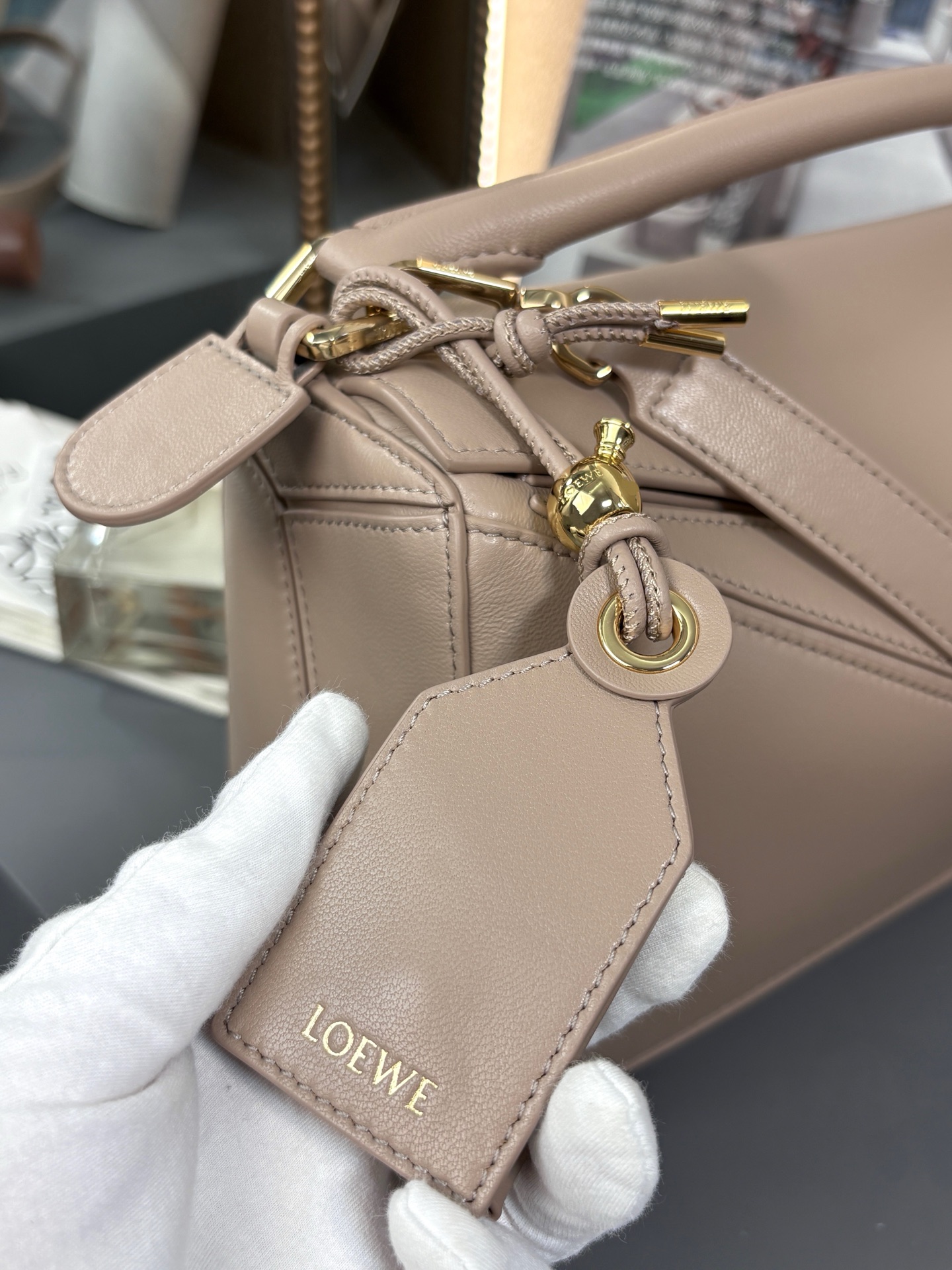 这款包包是AAAAA 1:1 质量 (非常棒). 使用了和原版一模一样的材料. 商标部分也保持了和罗意威/Loewe一样. 图片拍摄是实物包包拍摄, 您所收到的实物保证和我们图片一模一样.