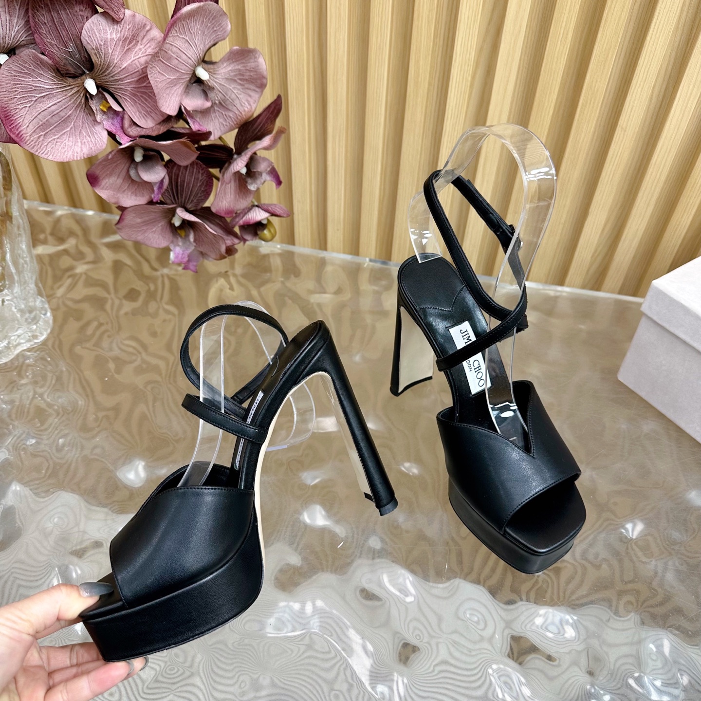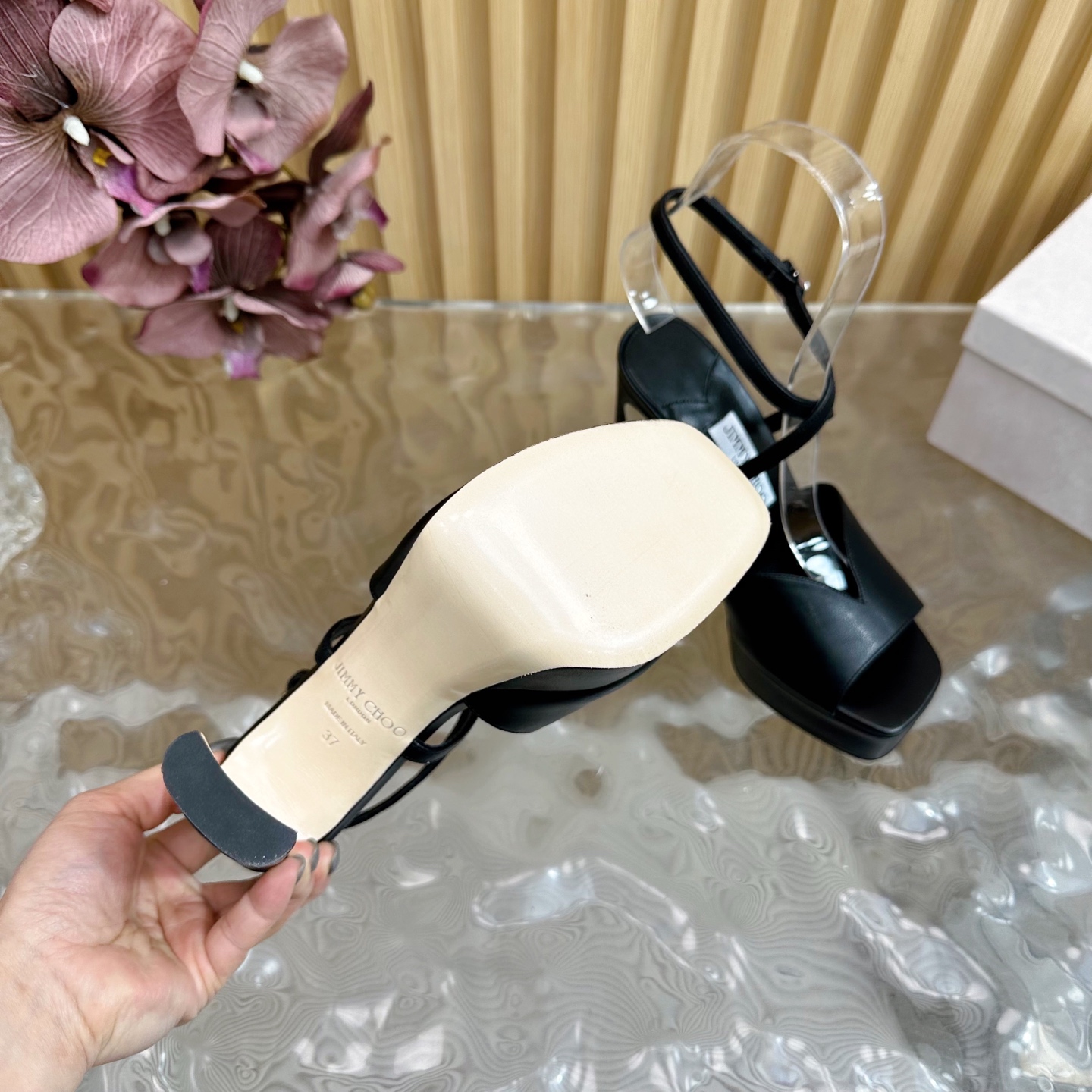 这款鞋子是AAAAA 1:1 质量 (非常棒). 使用了和原版一模一样的材料. 商标部分也保持了和吉米乔/JIMMY CHOO一样. 图片拍摄是实物鞋子拍摄, 您所收到的实物保证和我们图片一模一样.