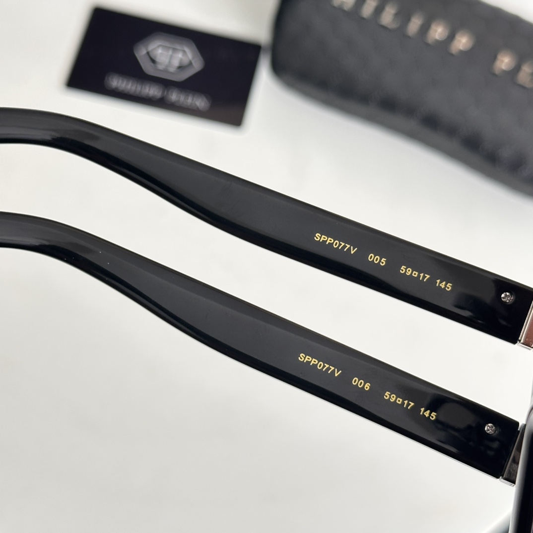 这款太阳眼镜是AAAAA 1:1 质量 (非常棒). 使用了和原版一模一样的材料. 商标部分也保持了和菲利普·普林/Philipp Plein一样. 图片拍摄是实物太阳眼镜拍摄, 您所收到的实物保证和我们图片一模一样.