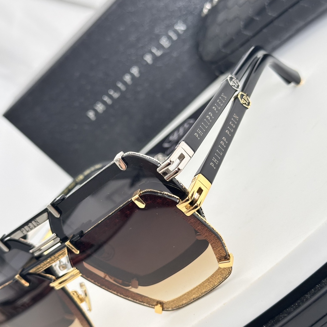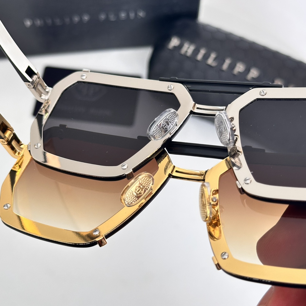 这款太阳眼镜是AAAAA 1:1 质量 (非常棒). 使用了和原版一模一样的材料. 商标部分也保持了和菲利普·普林/Philipp Plein一样. 图片拍摄是实物太阳眼镜拍摄, 您所收到的实物保证和我们图片一模一样.