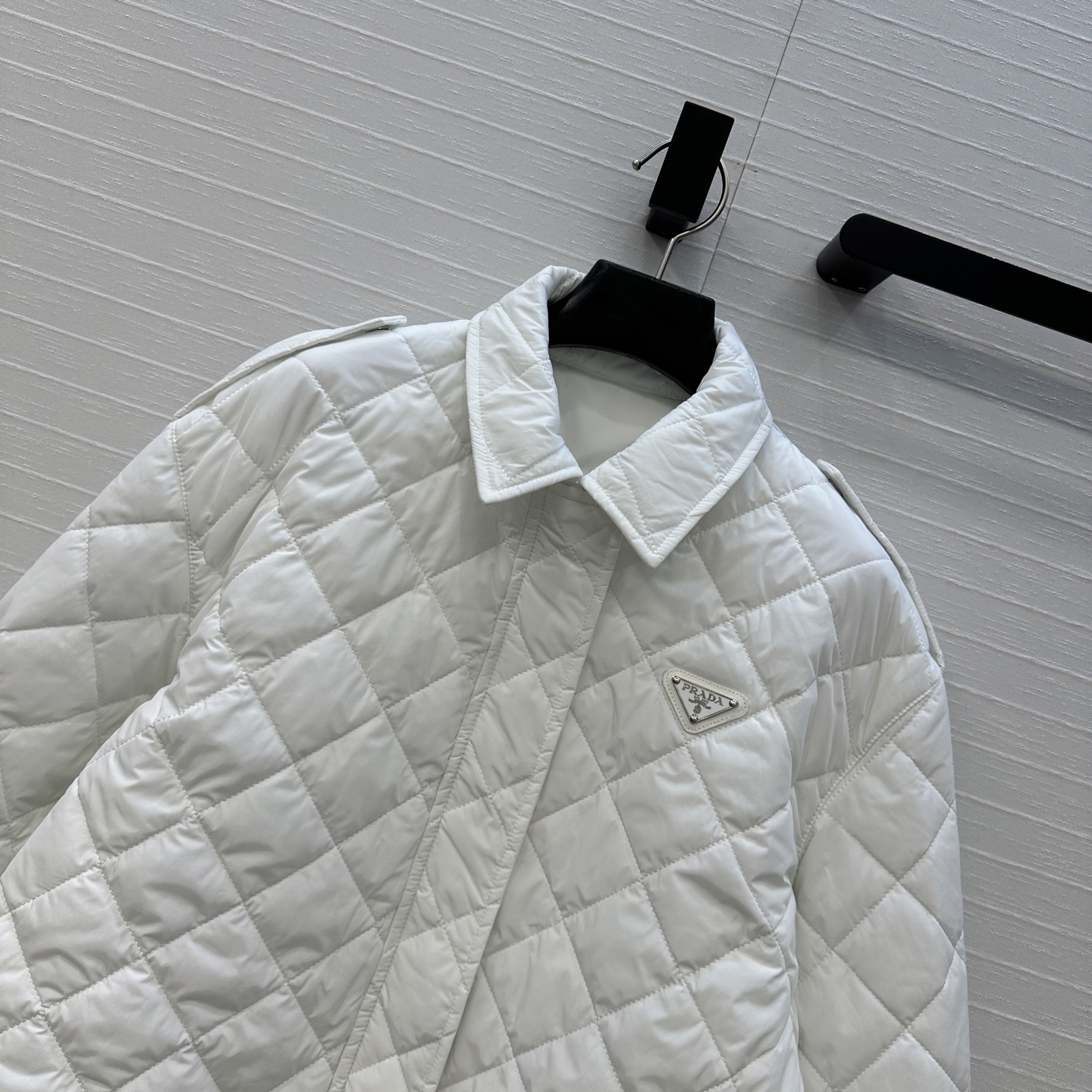 这款衣服是AAAAA 1:1 质量 (非常棒). 使用了和原版一模一样的材料. 商标部分也保持了和普拉达/Prada一样. 图片拍摄是实物衣服拍摄, 您所收到的实物保证和我们图片一模一样.