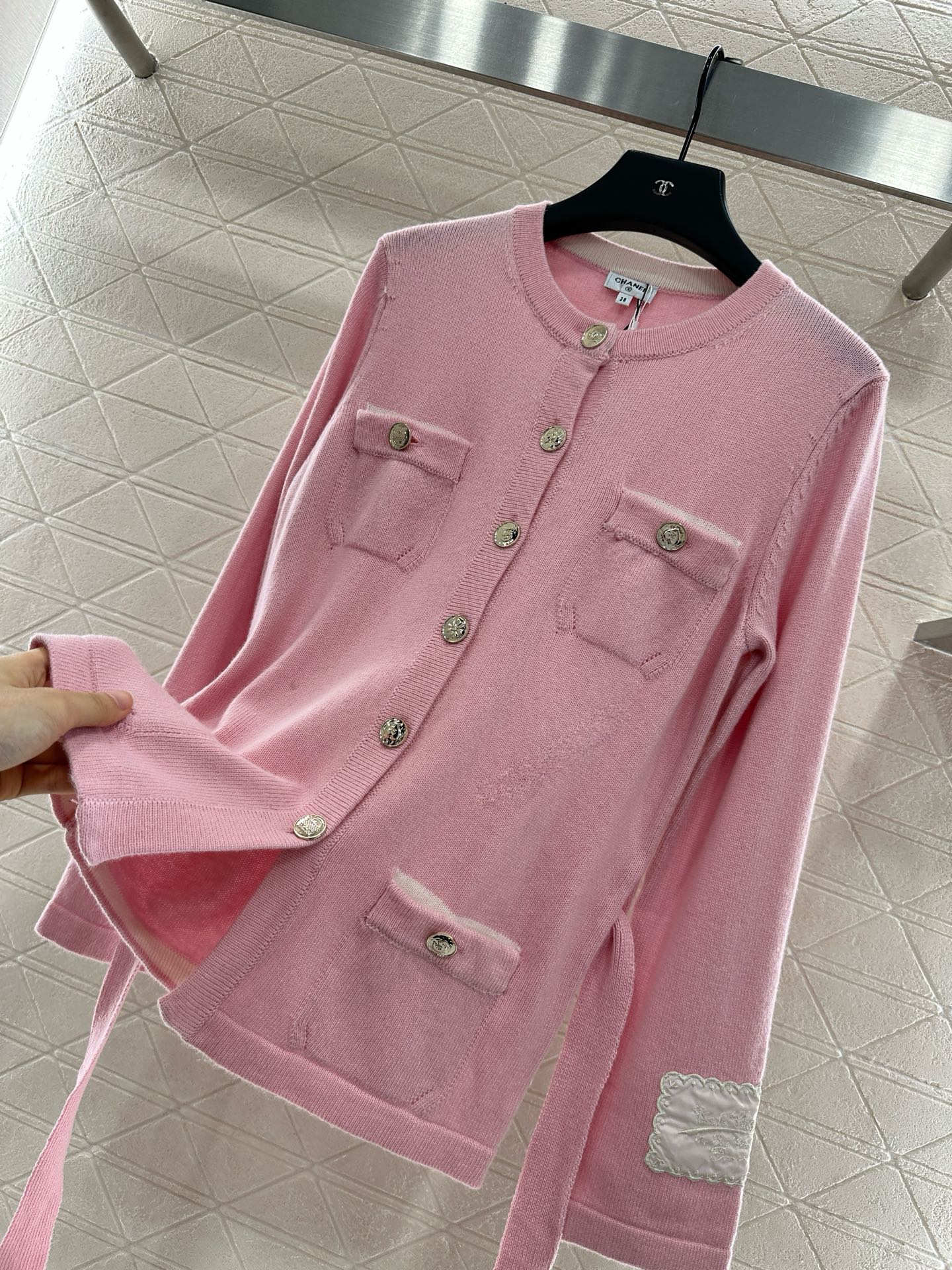 这款衣服是AAAAA 1:1 质量 (非常棒). 使用了和原版一模一样的材料. 商标部分也保持了和香奈儿/Chanel一样. 图片拍摄是实物衣服拍摄, 您所收到的实物保证和我们图片一模一样.