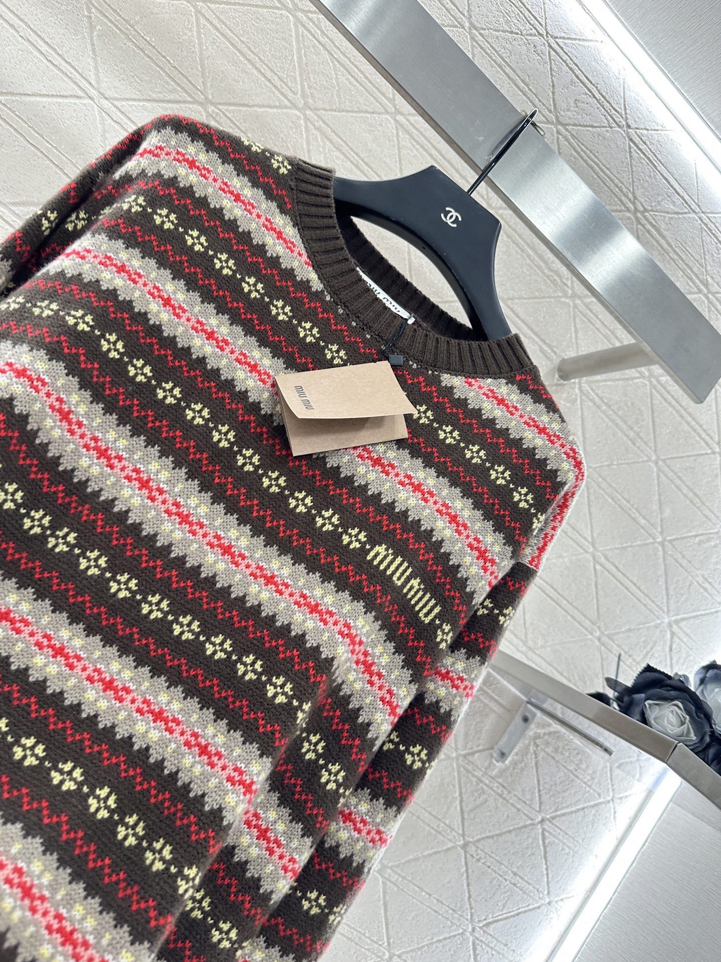 这款衣服是AAAAA 1:1 质量 (非常棒). 使用了和原版一模一样的材料. 商标部分也保持了和缪缪/Miu Miu一样. 图片拍摄是实物衣服拍摄, 您所收到的实物保证和我们图片一模一样.