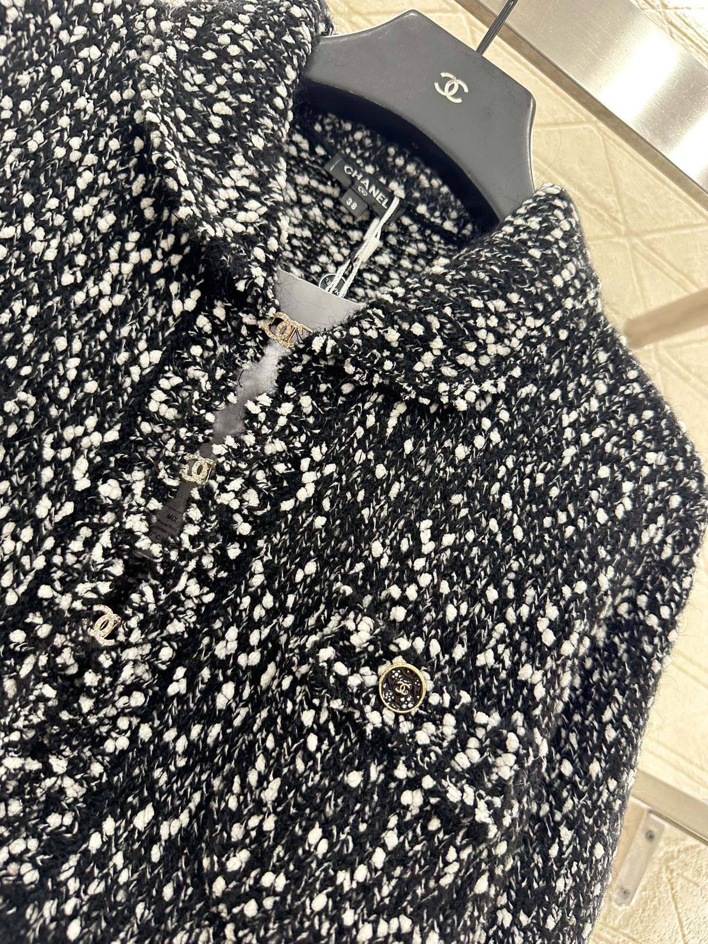 这款衣服是AAAAA 1:1 质量 (非常棒). 使用了和原版一模一样的材料. 商标部分也保持了和香奈儿/Chanel一样. 图片拍摄是实物衣服拍摄, 您所收到的实物保证和我们图片一模一样.