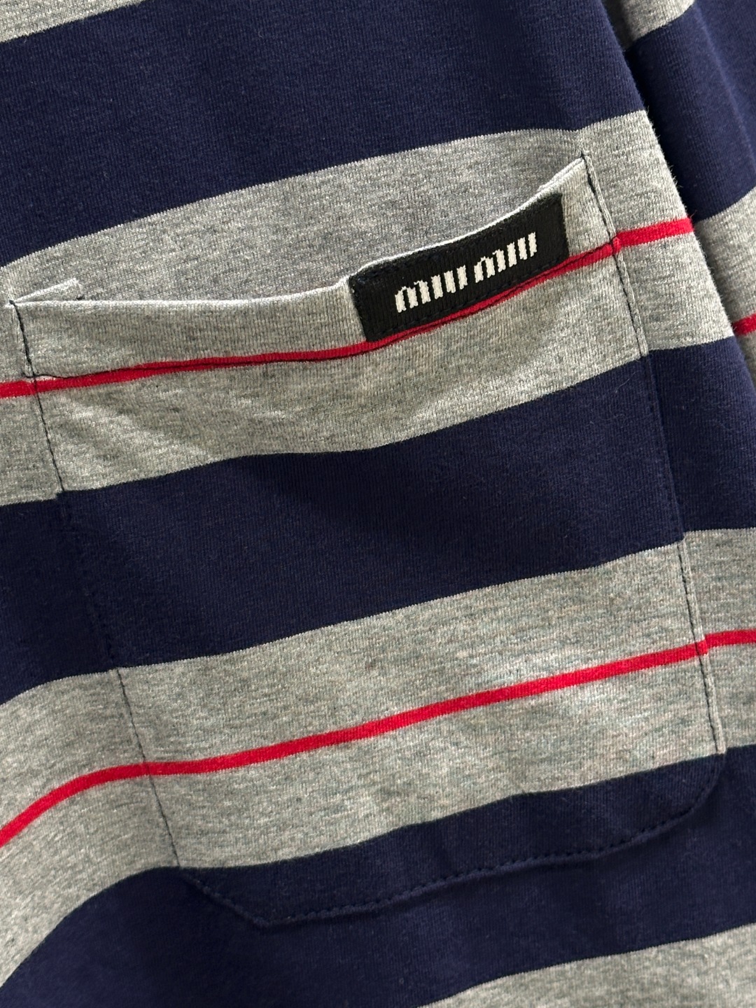 这款衣服是AAAAA 1:1 质量 (非常棒). 使用了和原版一模一样的材料. 商标部分也保持了和缪缪/Miu Miu一样. 图片拍摄是实物衣服拍摄, 您所收到的实物保证和我们图片一模一样.
