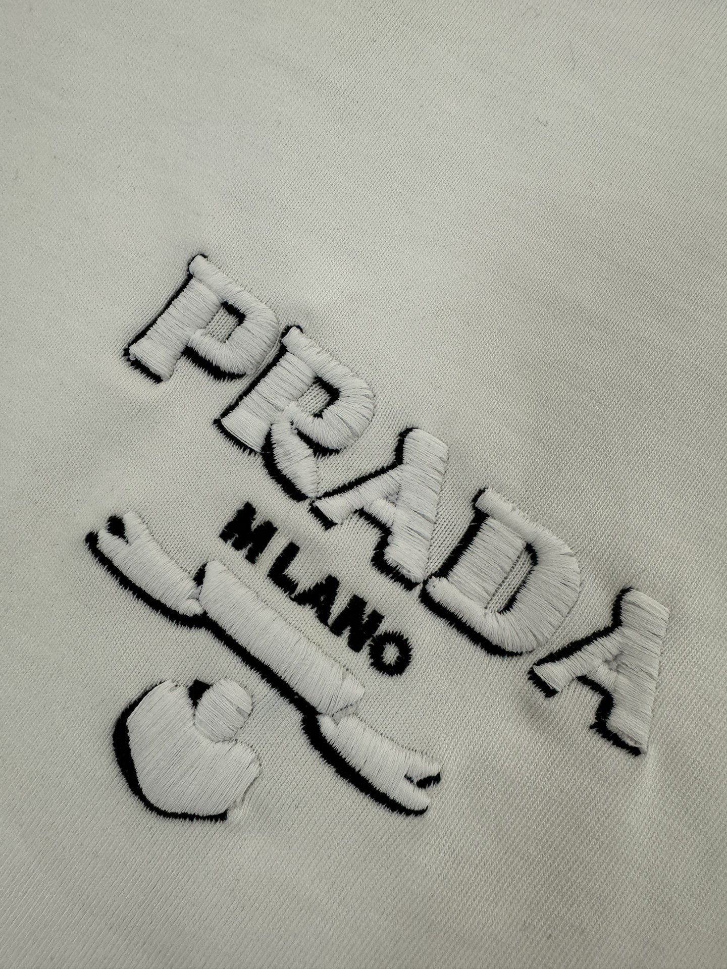 这款衣服是AAAAA 1:1 质量 (非常棒). 使用了和原版一模一样的材料. 商标部分也保持了和普拉达/Prada一样. 图片拍摄是实物衣服拍摄, 您所收到的实物保证和我们图片一模一样.