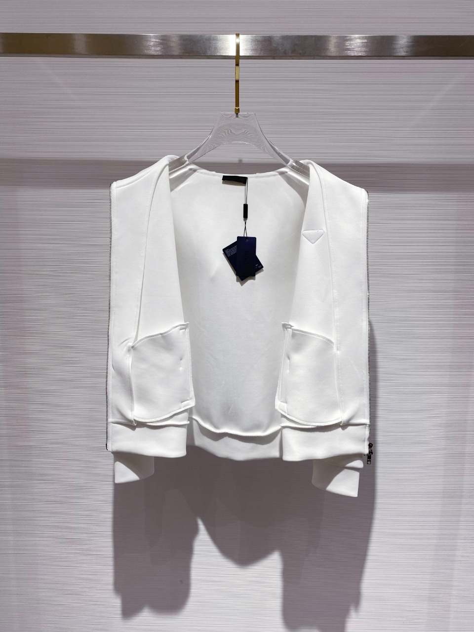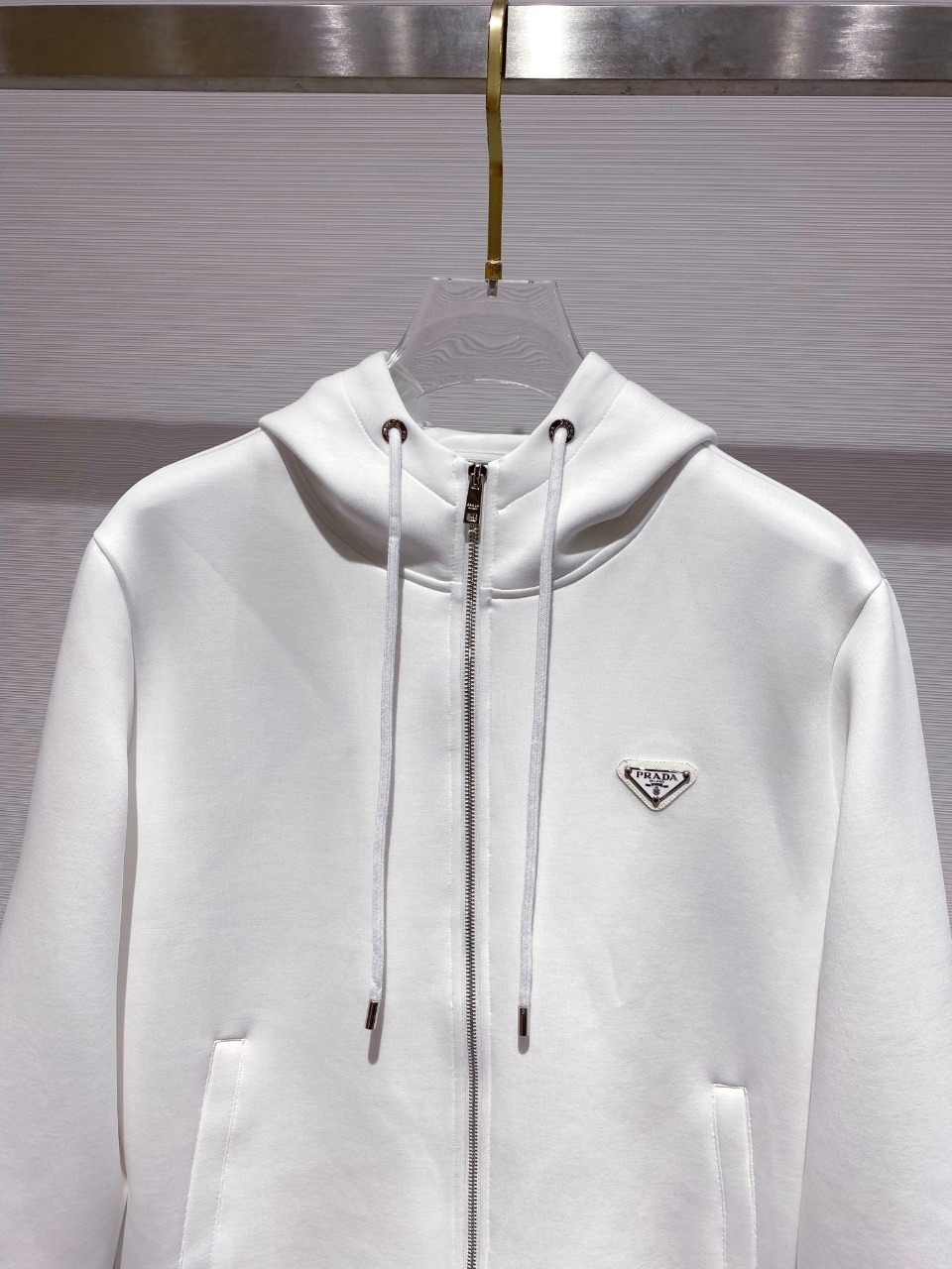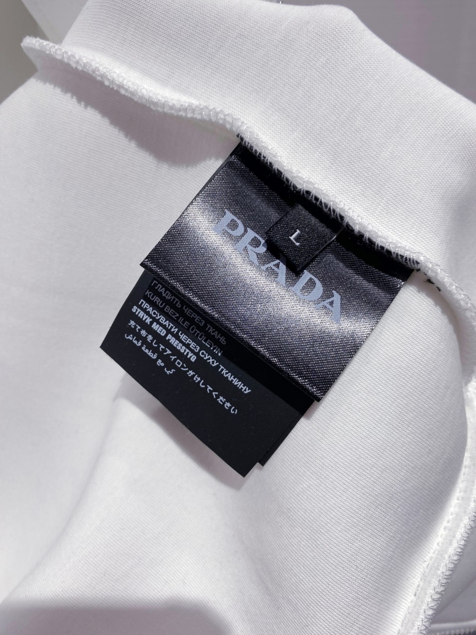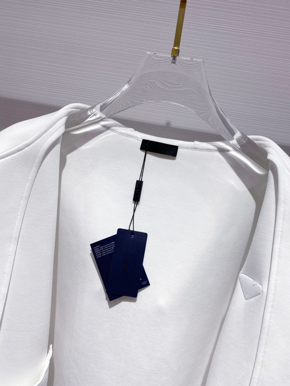 这款衣服是AAAAA 1:1 质量 (非常棒). 使用了和原版一模一样的材料. 商标部分也保持了和普拉达/Prada一样. 图片拍摄是实物衣服拍摄, 您所收到的实物保证和我们图片一模一样.